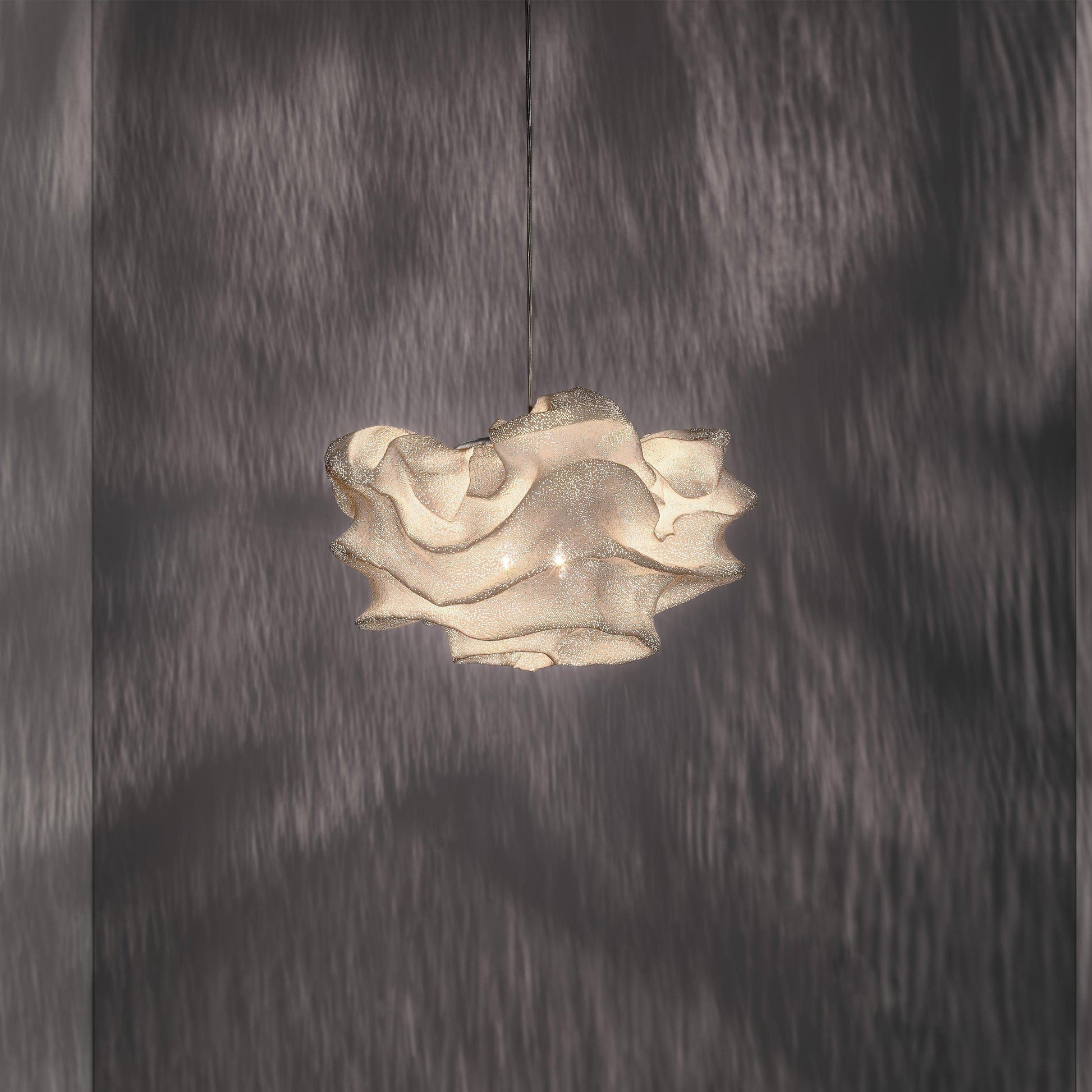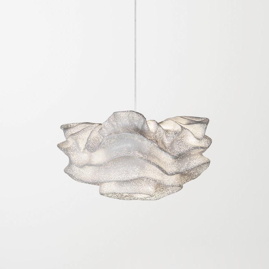 La suspension Nevo de a-emotional light fait partie d'une collection qui met en valeur l'extrême malléabilité de la maille d'acier inoxydable peint mieux que toute autre. Les formes organiques et inédites de la Nevo, avec ses courbes modelées à la main, font de chaque lampe une pièce unique. Son volume semble vivant, en perpétuelle évolution et mouvement, grâce aux jeux de lumière qu'elle crée.