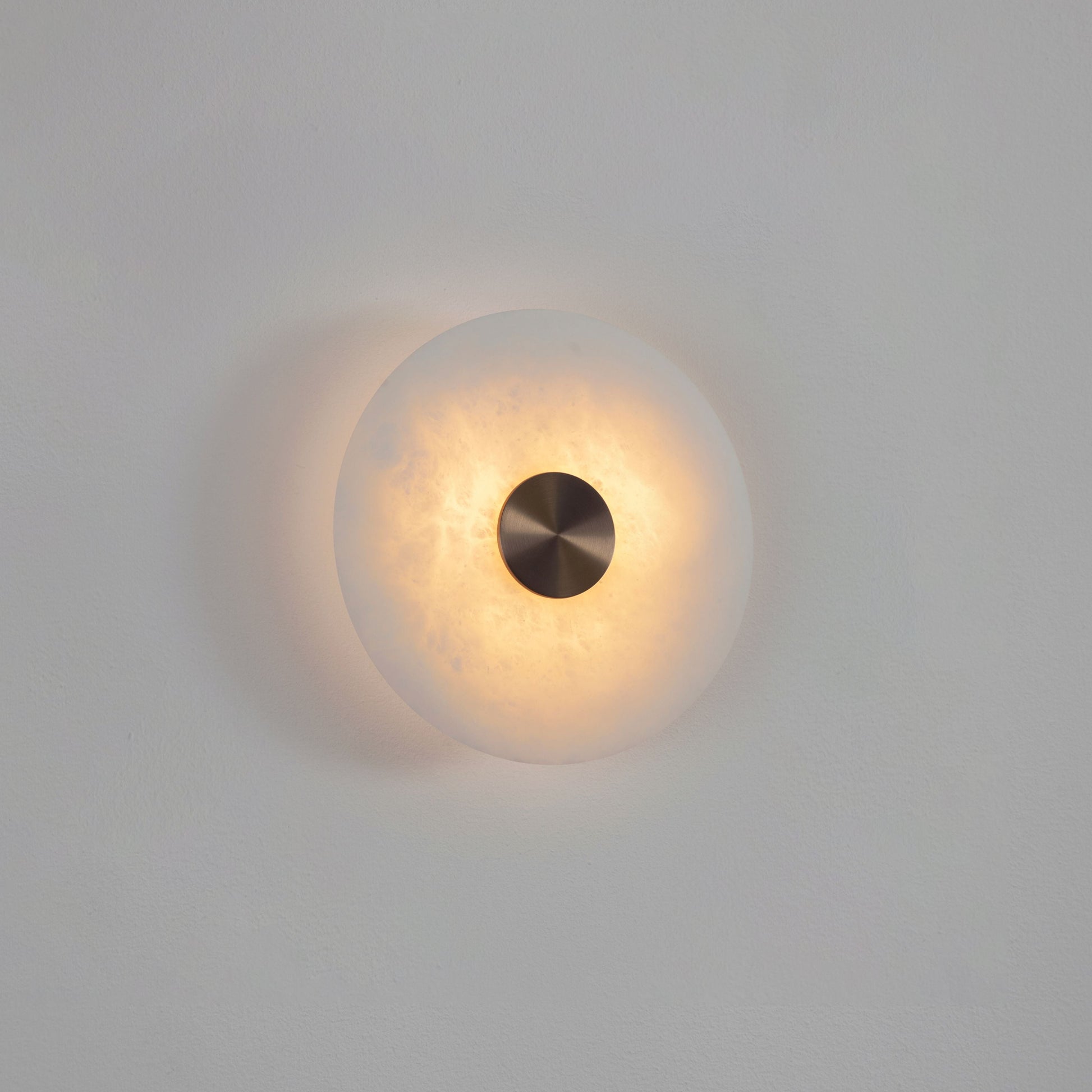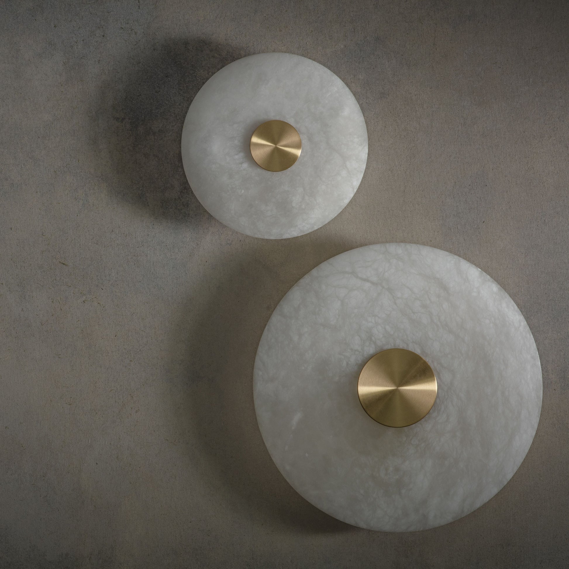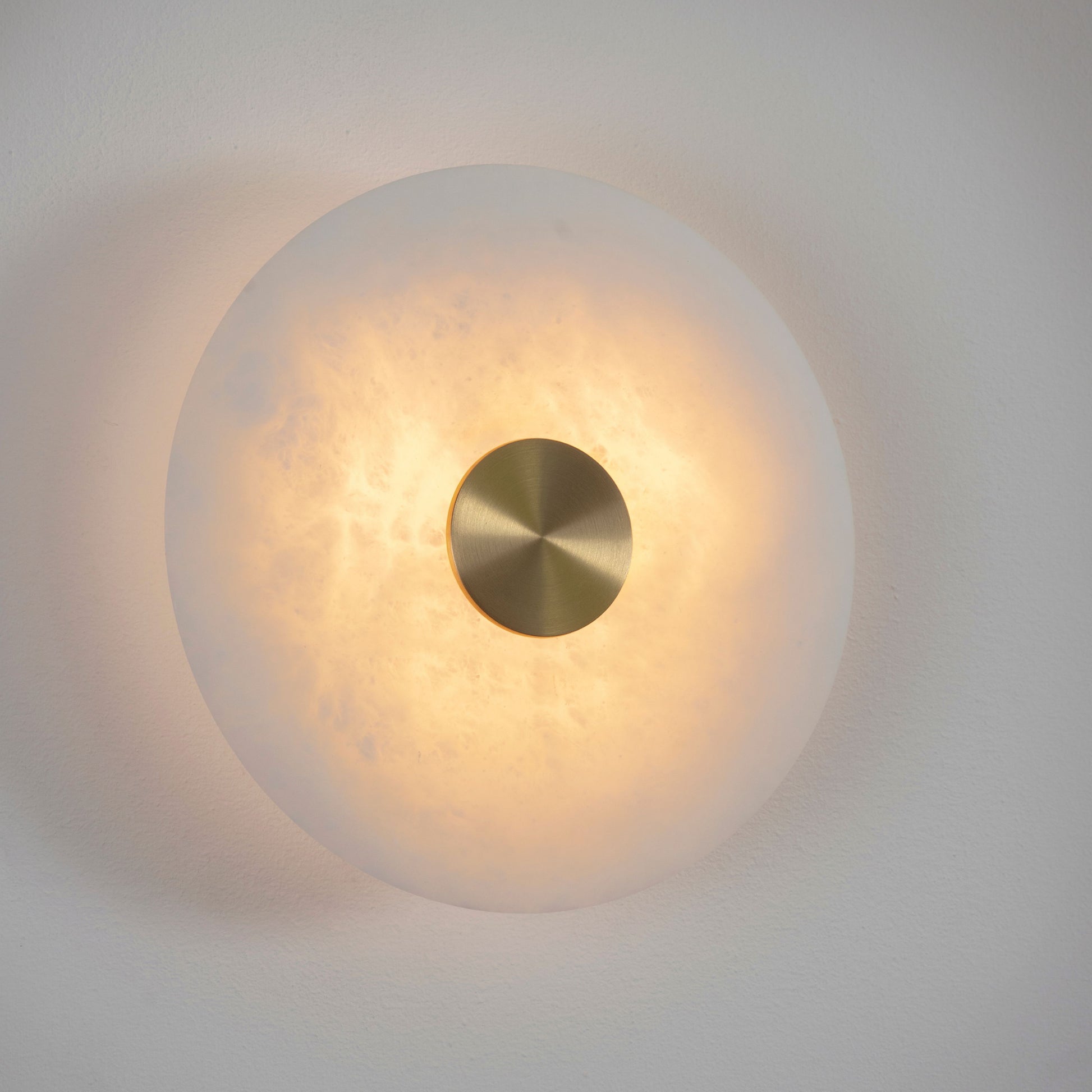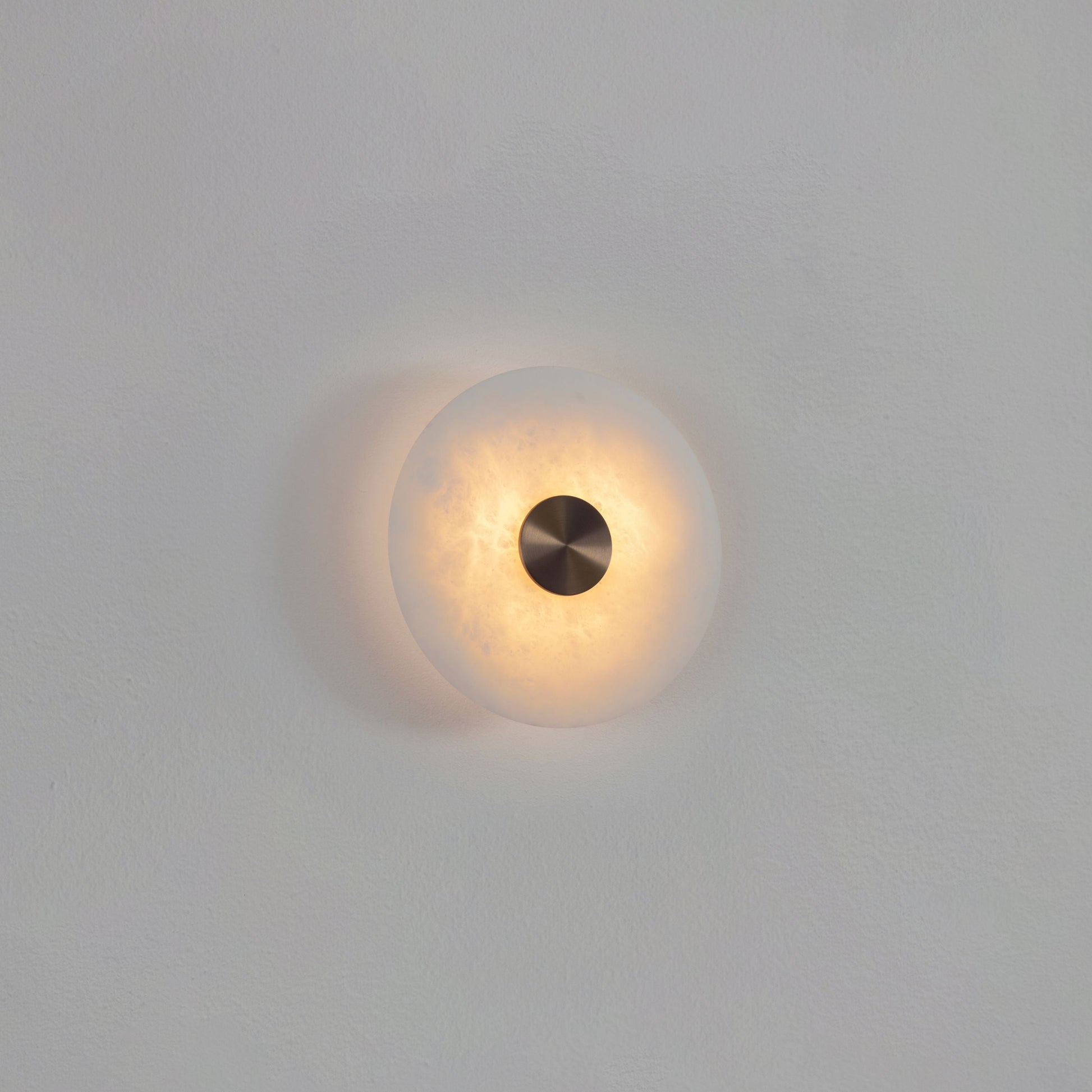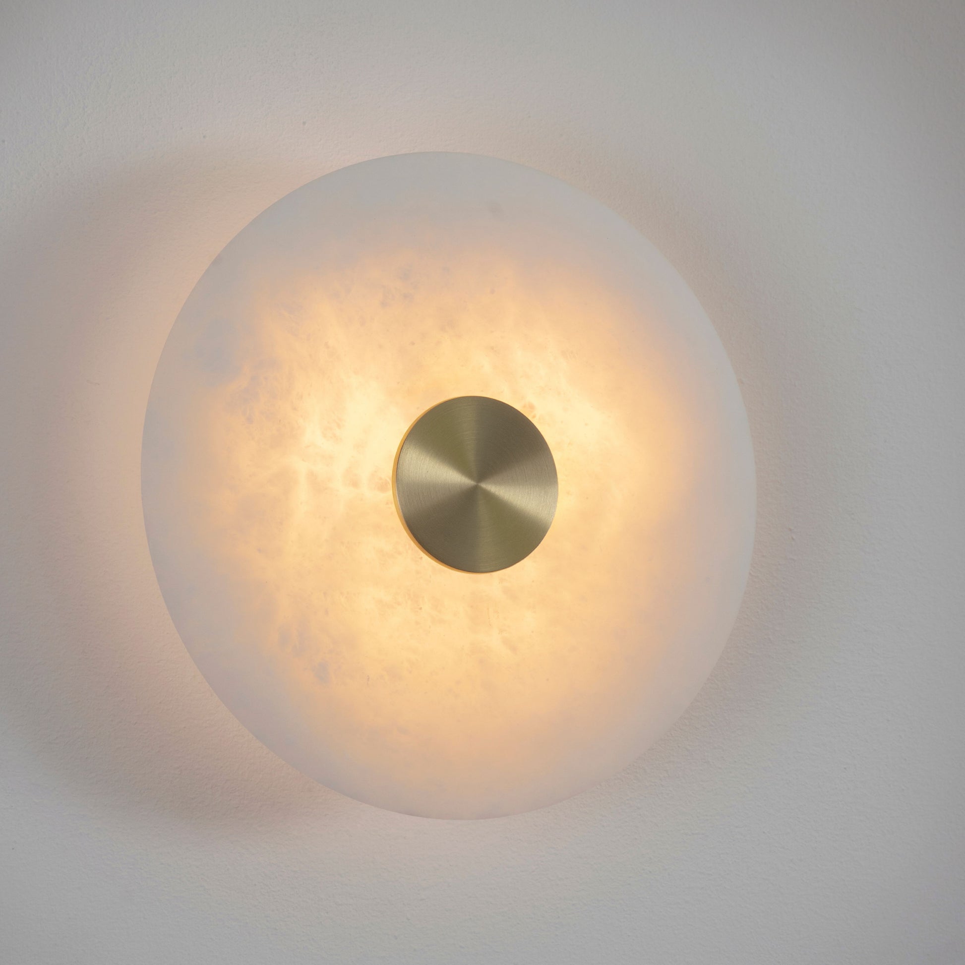 L'applique murale Bide de Bert Frank allie des matériaux bruts traditionnels comme le laiton et l'albâtre à des techniques d'ingénierie modernes, créant ainsi un mariage harmonieux d'élégance et de robustesse. L'albâtre étant une pierre naturelle, chaque pièce présente des veinures et des détails uniques. Indice de protection IP65 : convient aux pièces humides.