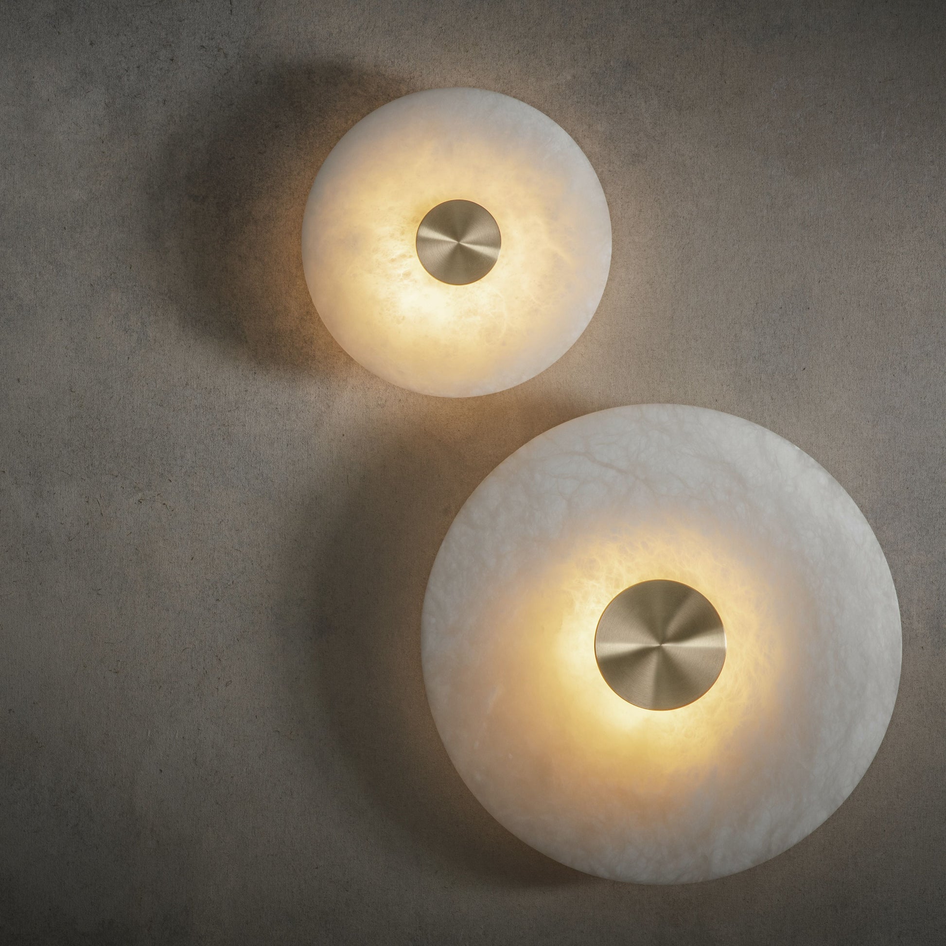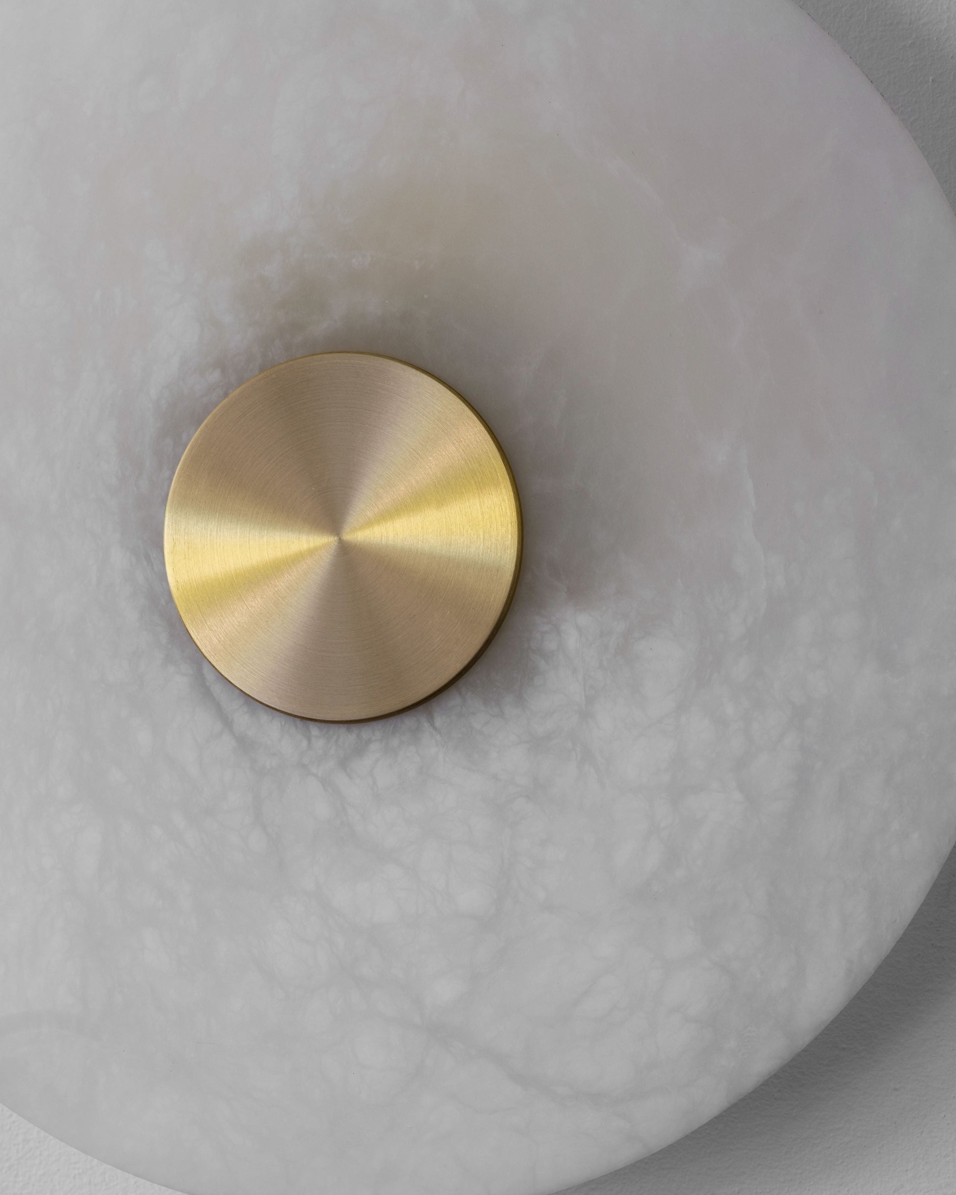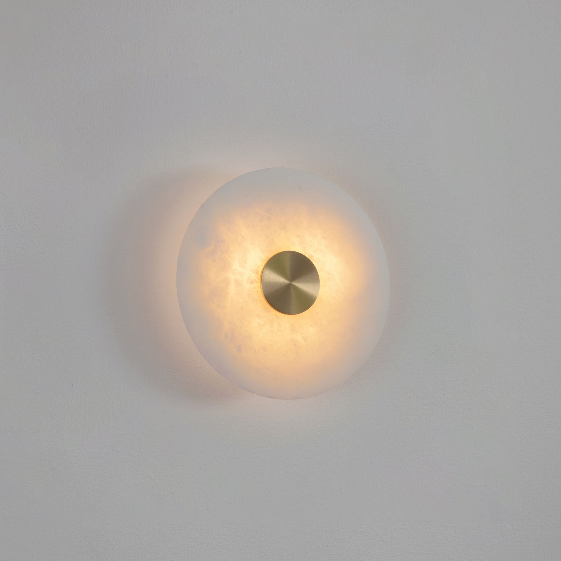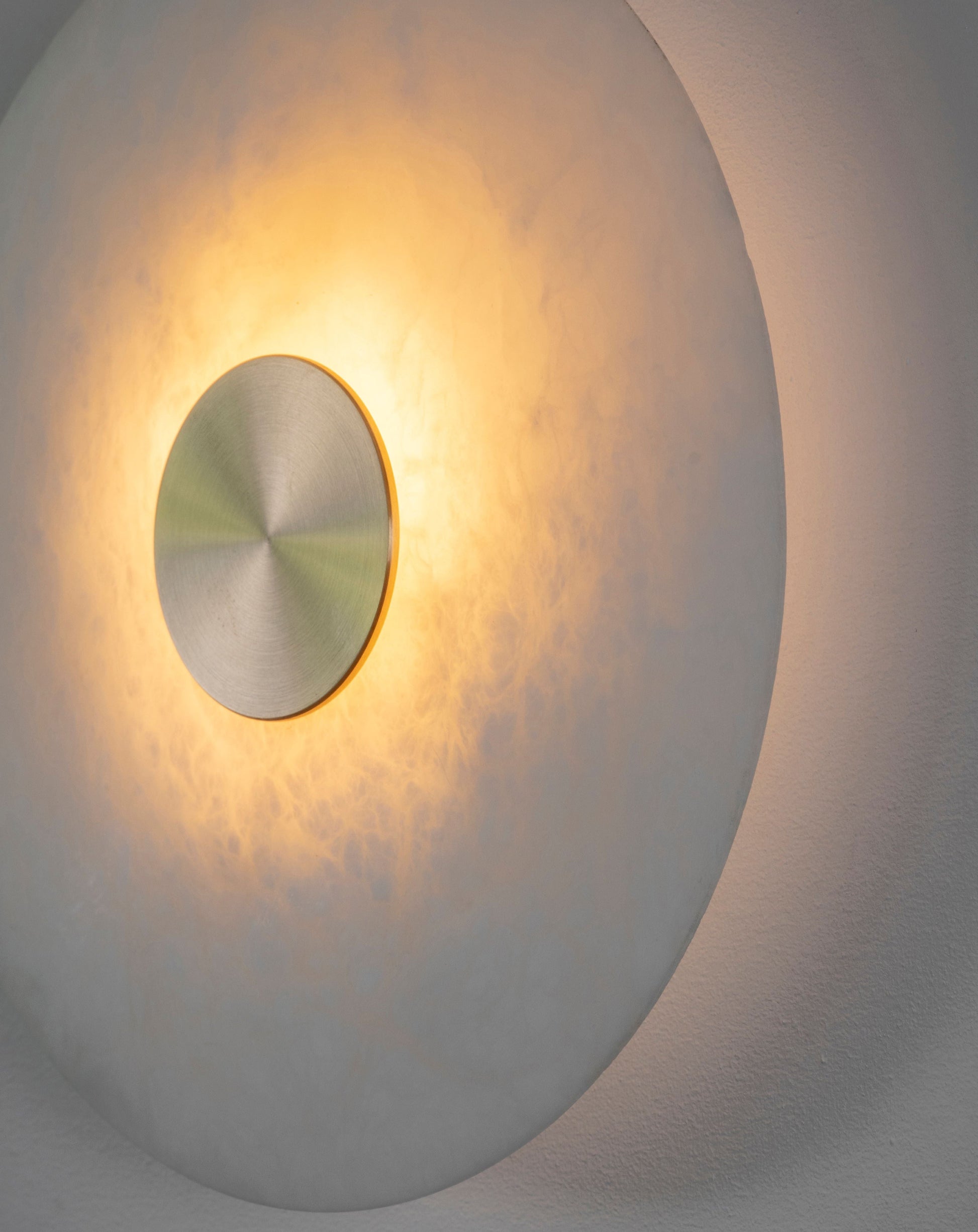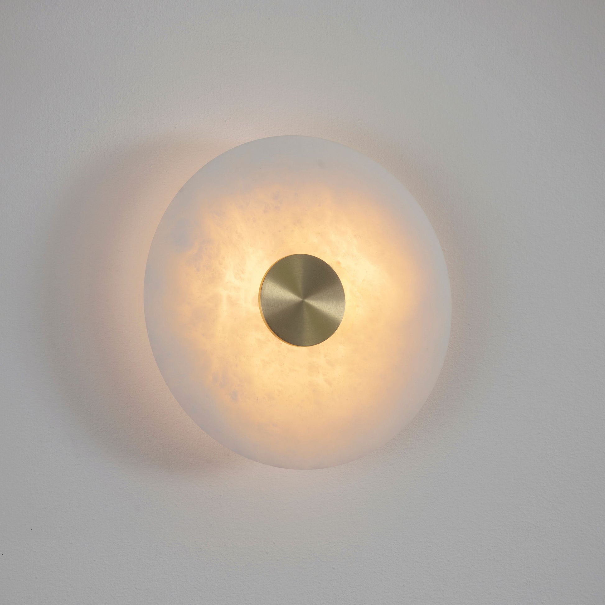 L'applique murale Bide de Bert Frank allie des matériaux bruts traditionnels comme le laiton et l'albâtre à des techniques d'ingénierie modernes, créant ainsi un mariage harmonieux d'élégance et de robustesse. L'albâtre étant une pierre naturelle, chaque pièce présente des veinures et des détails uniques. Indice de protection IP65 : convient aux pièces humides.