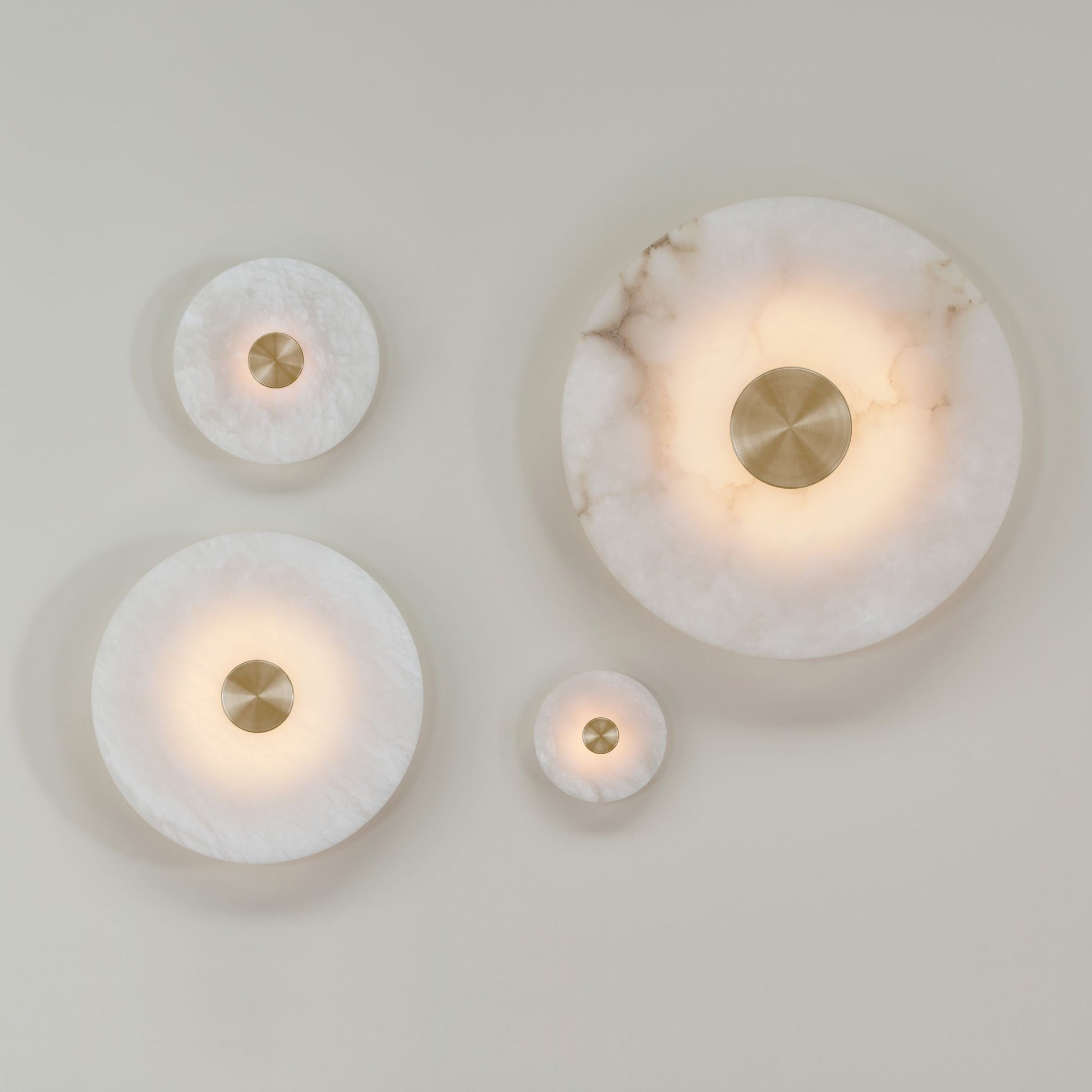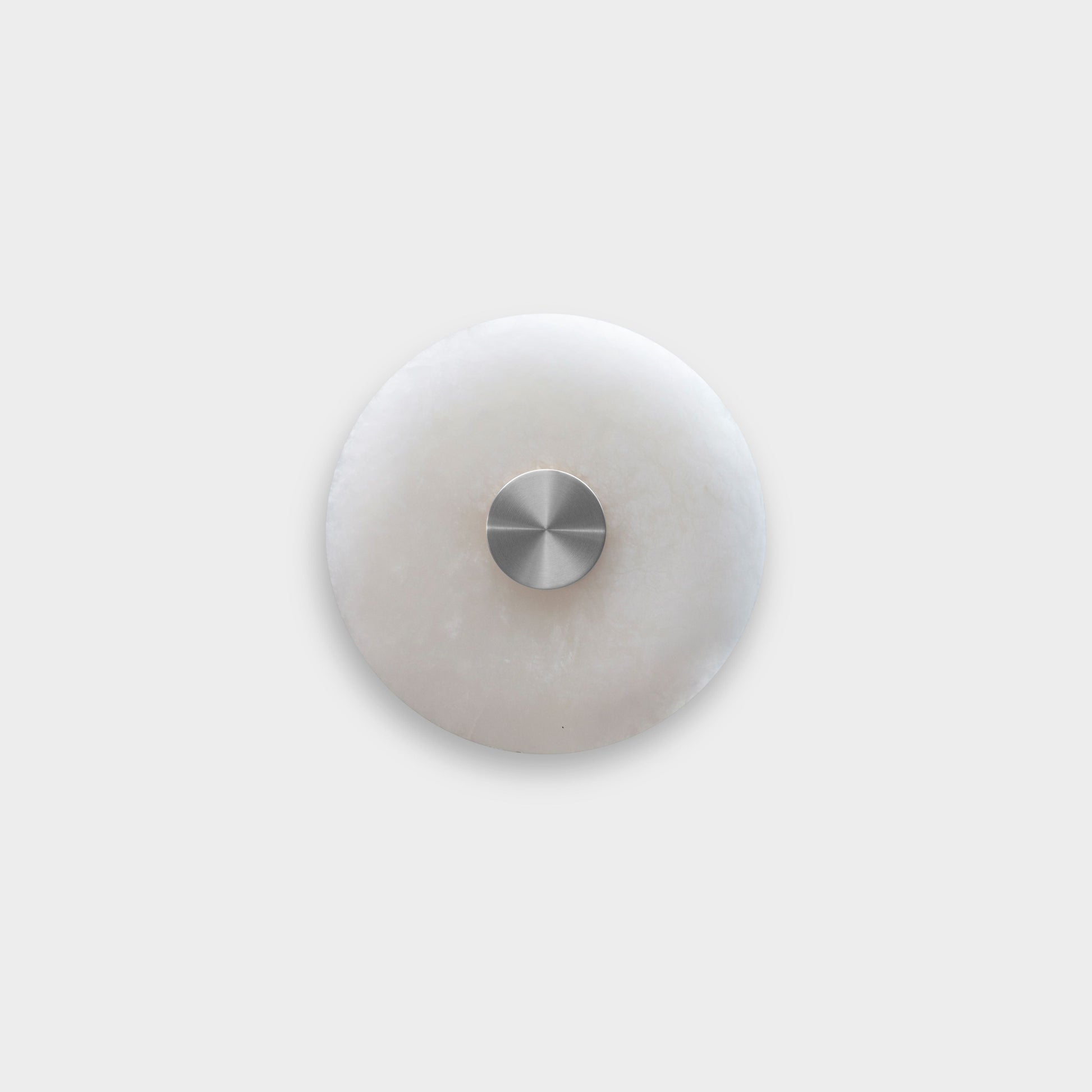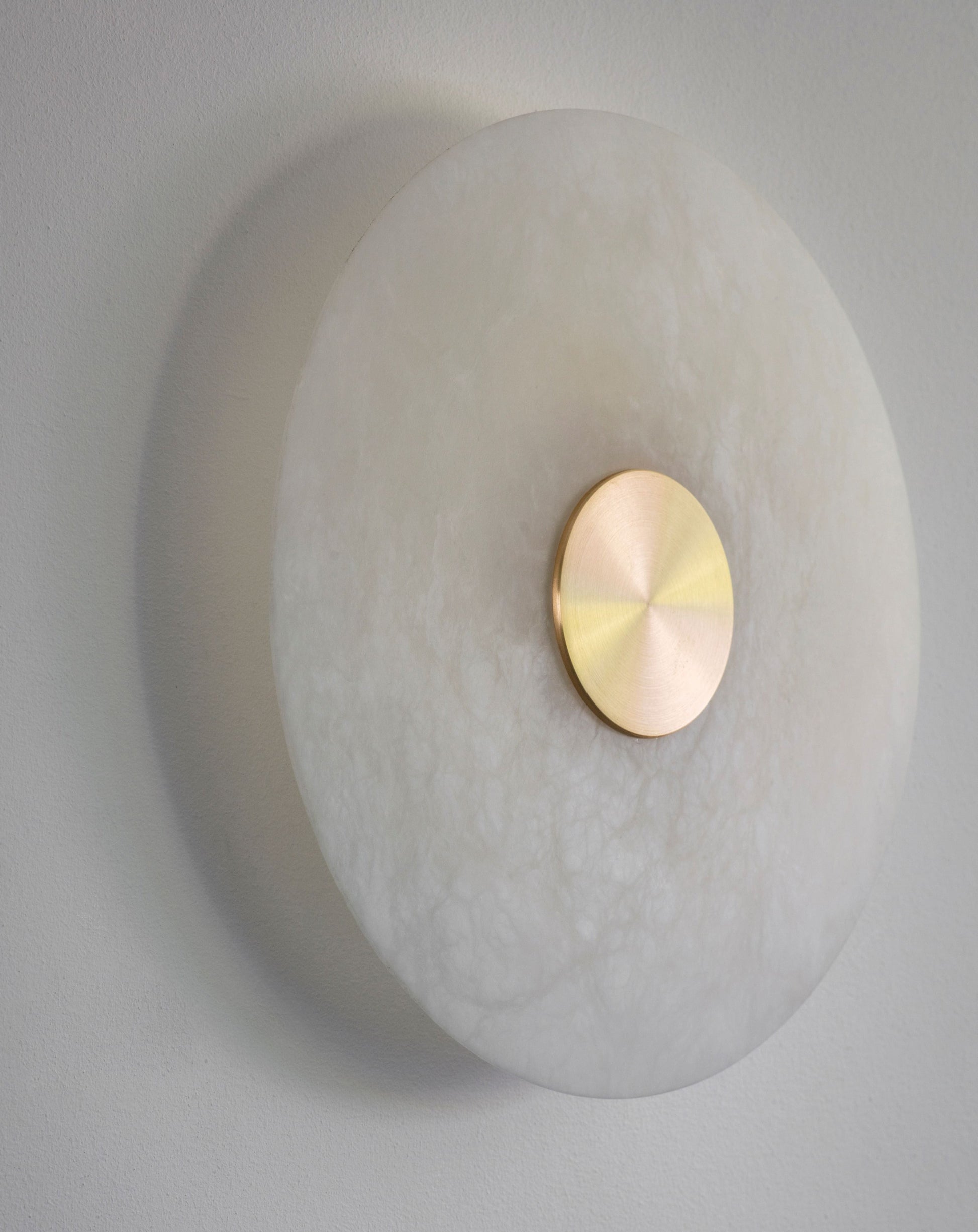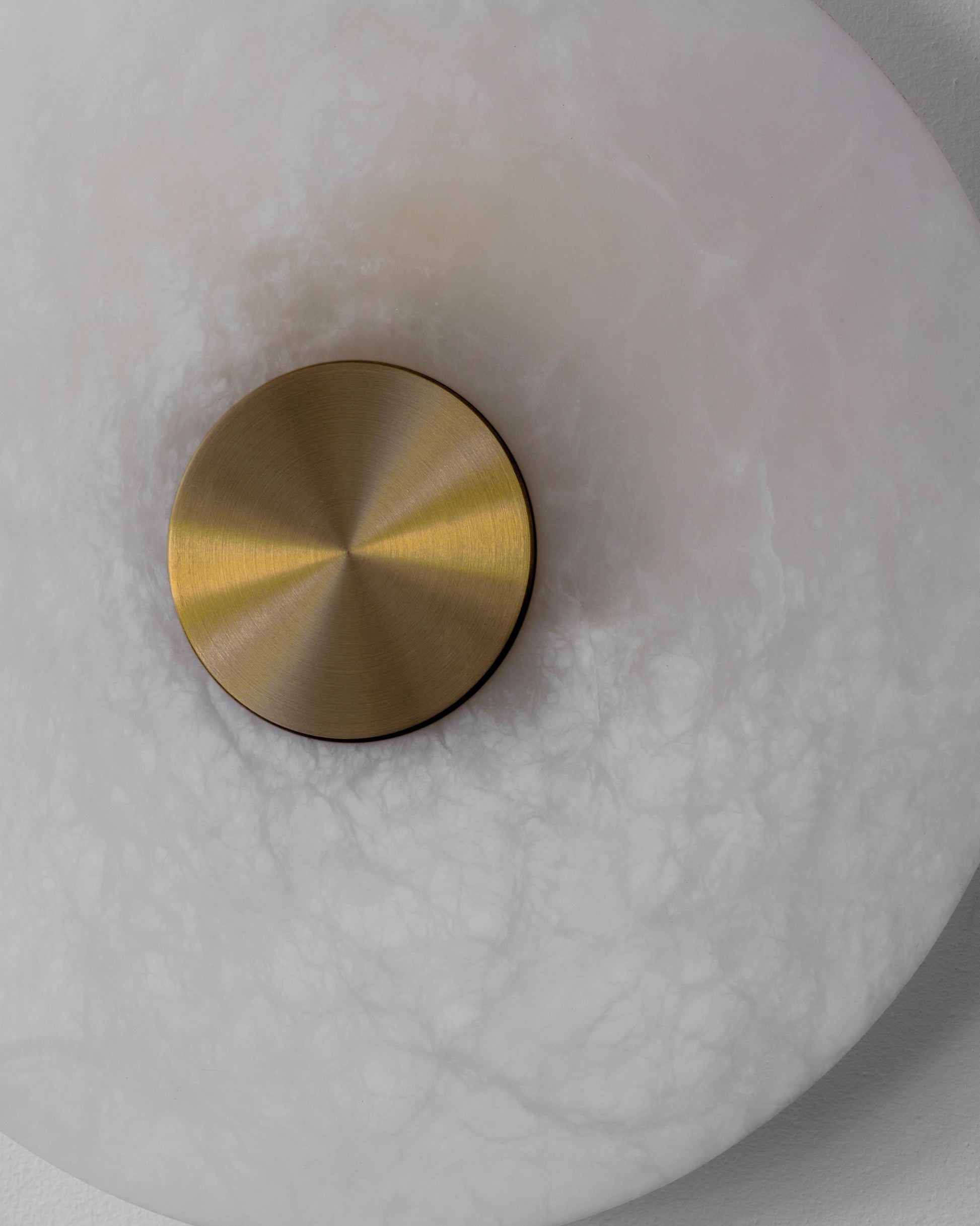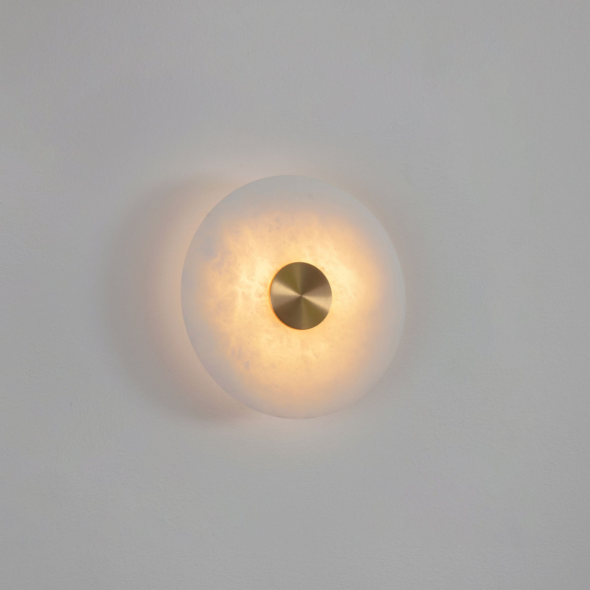 L'applique murale Bide de Bert Frank allie des matériaux bruts traditionnels comme le laiton et l'albâtre à des techniques d'ingénierie modernes, créant ainsi un mariage harmonieux d'élégance et de robustesse. L'albâtre étant une pierre naturelle, chaque pièce présente des veinures et des détails uniques. Indice de protection IP65 : convient aux pièces humides.