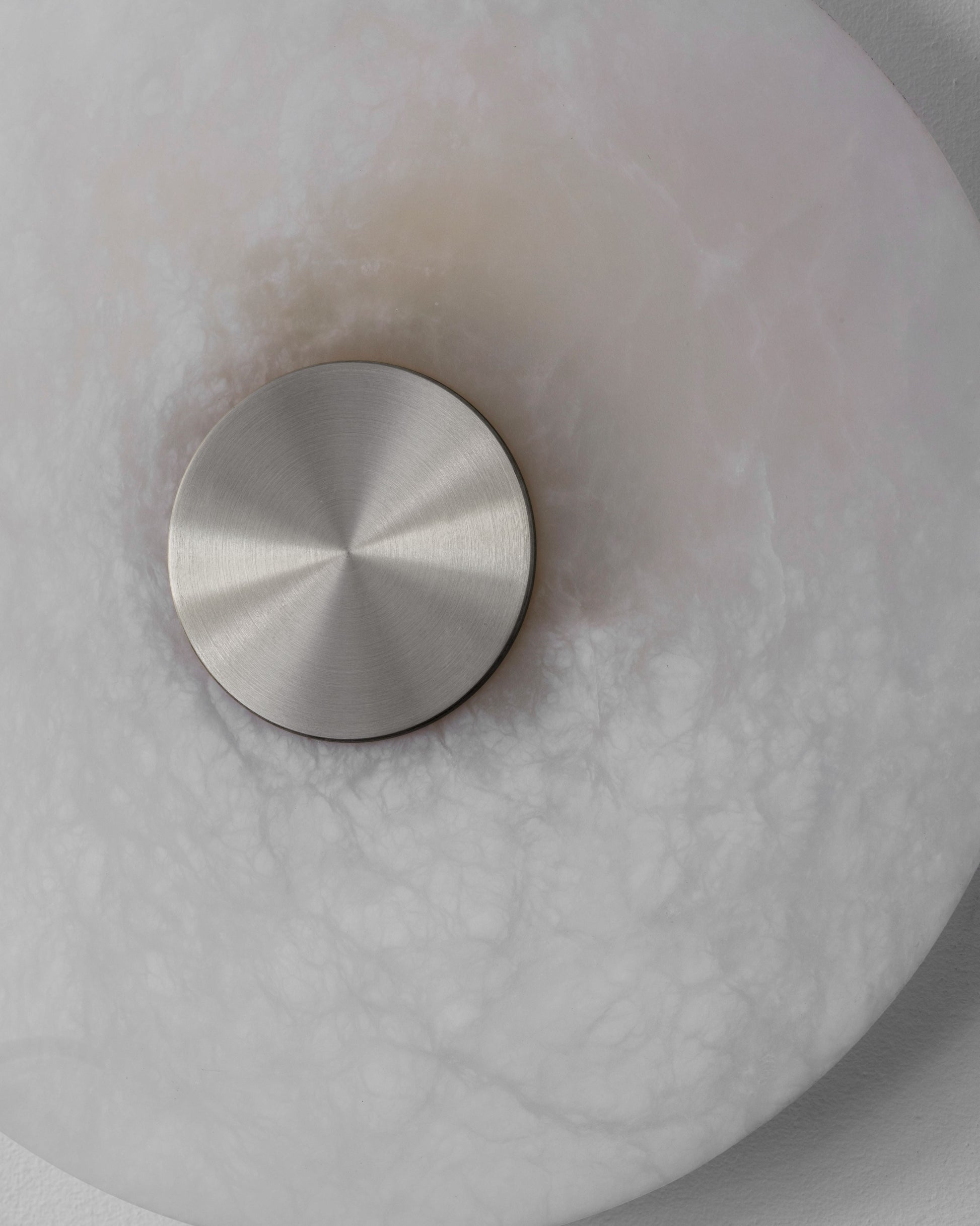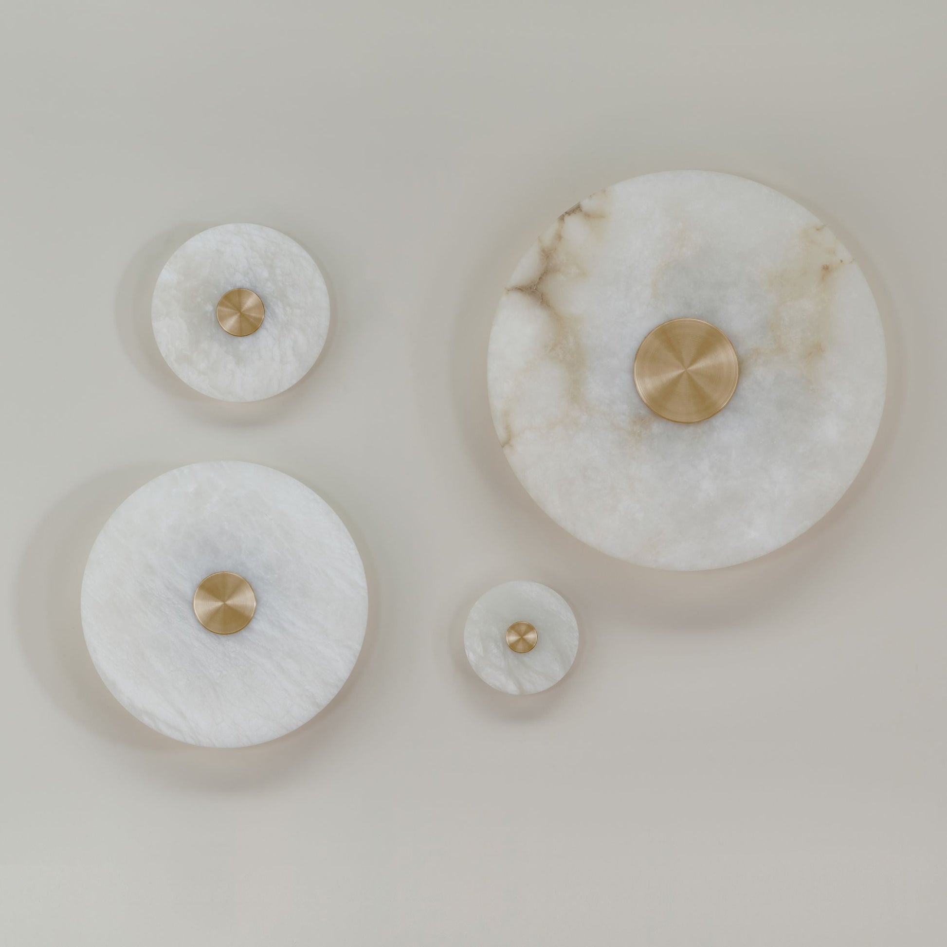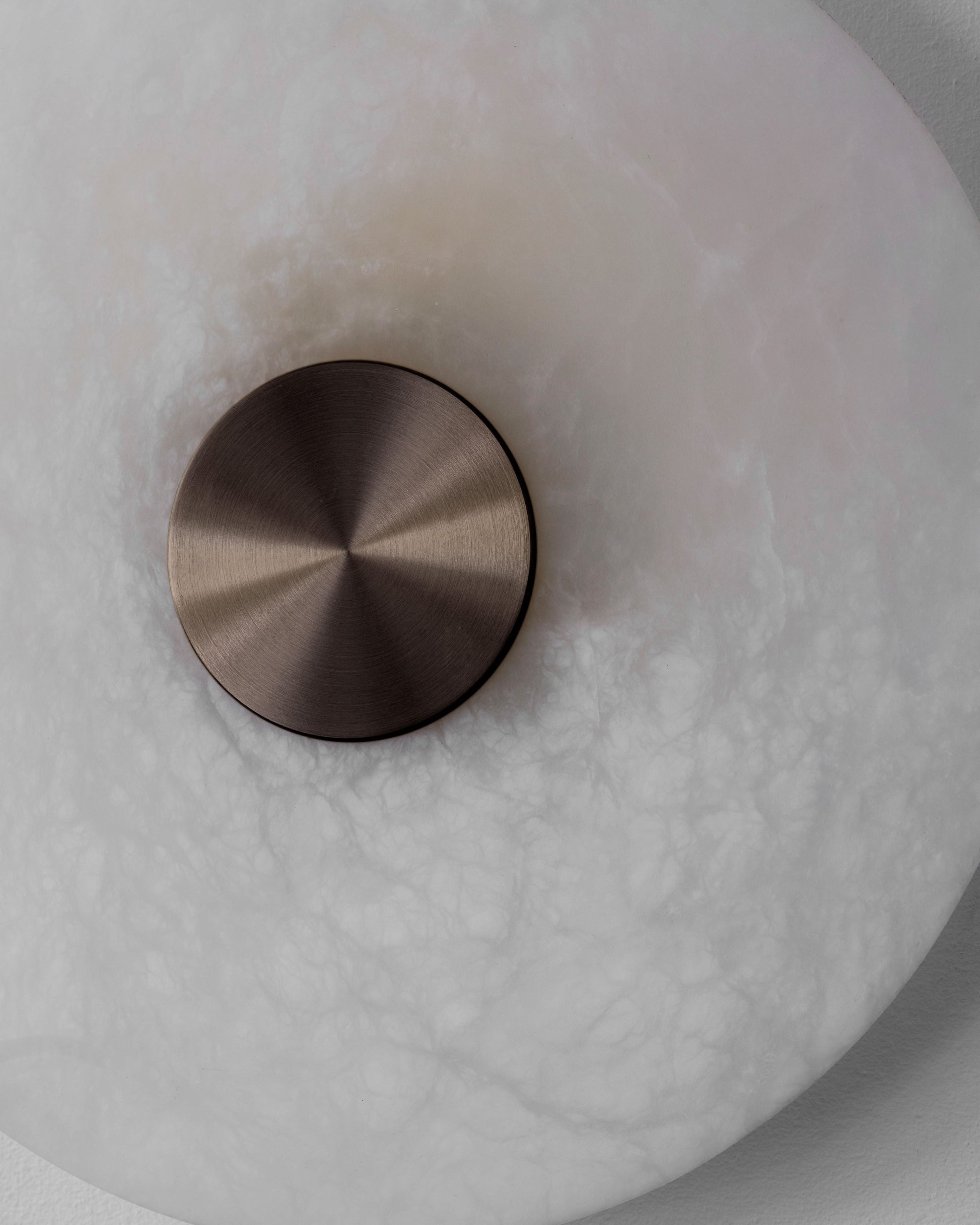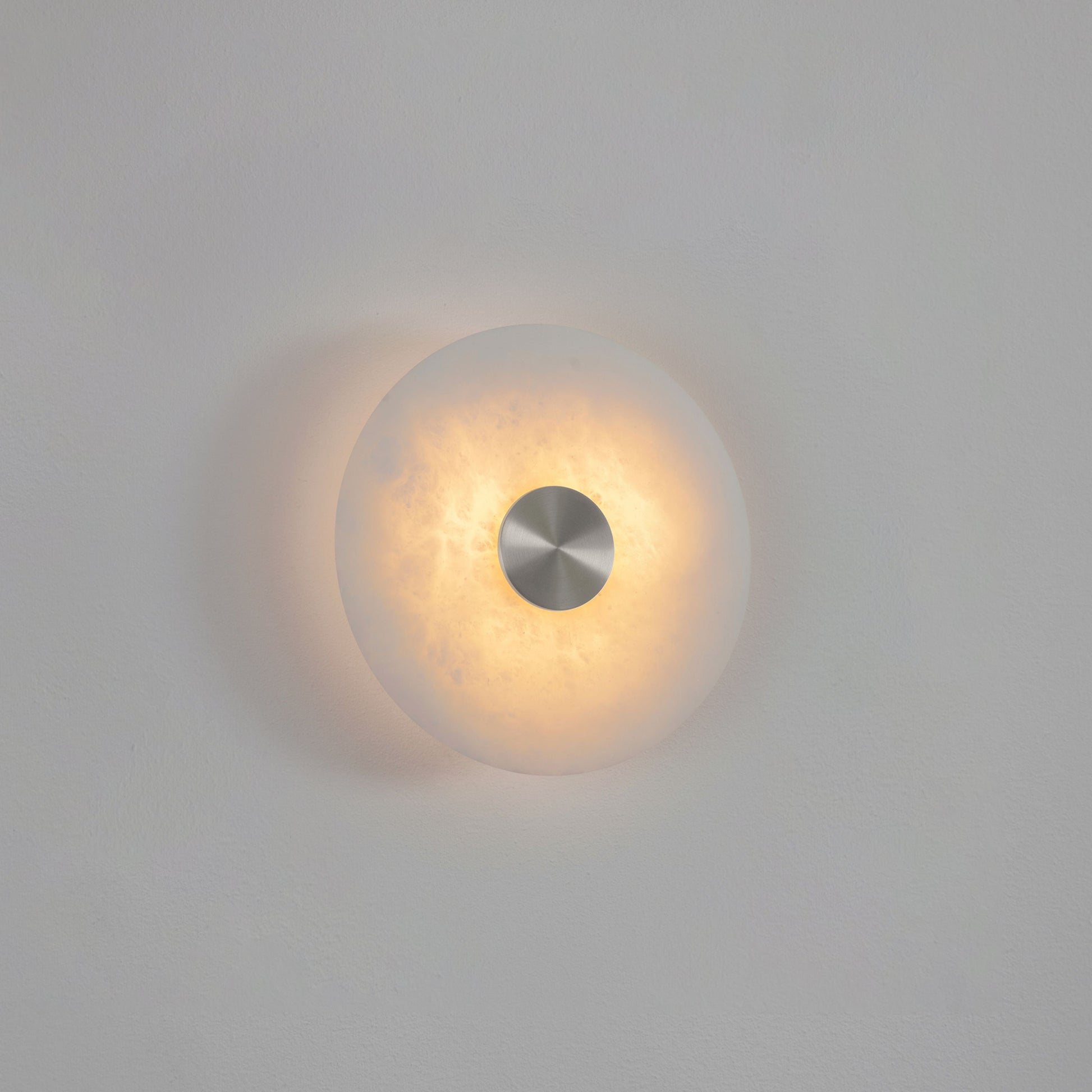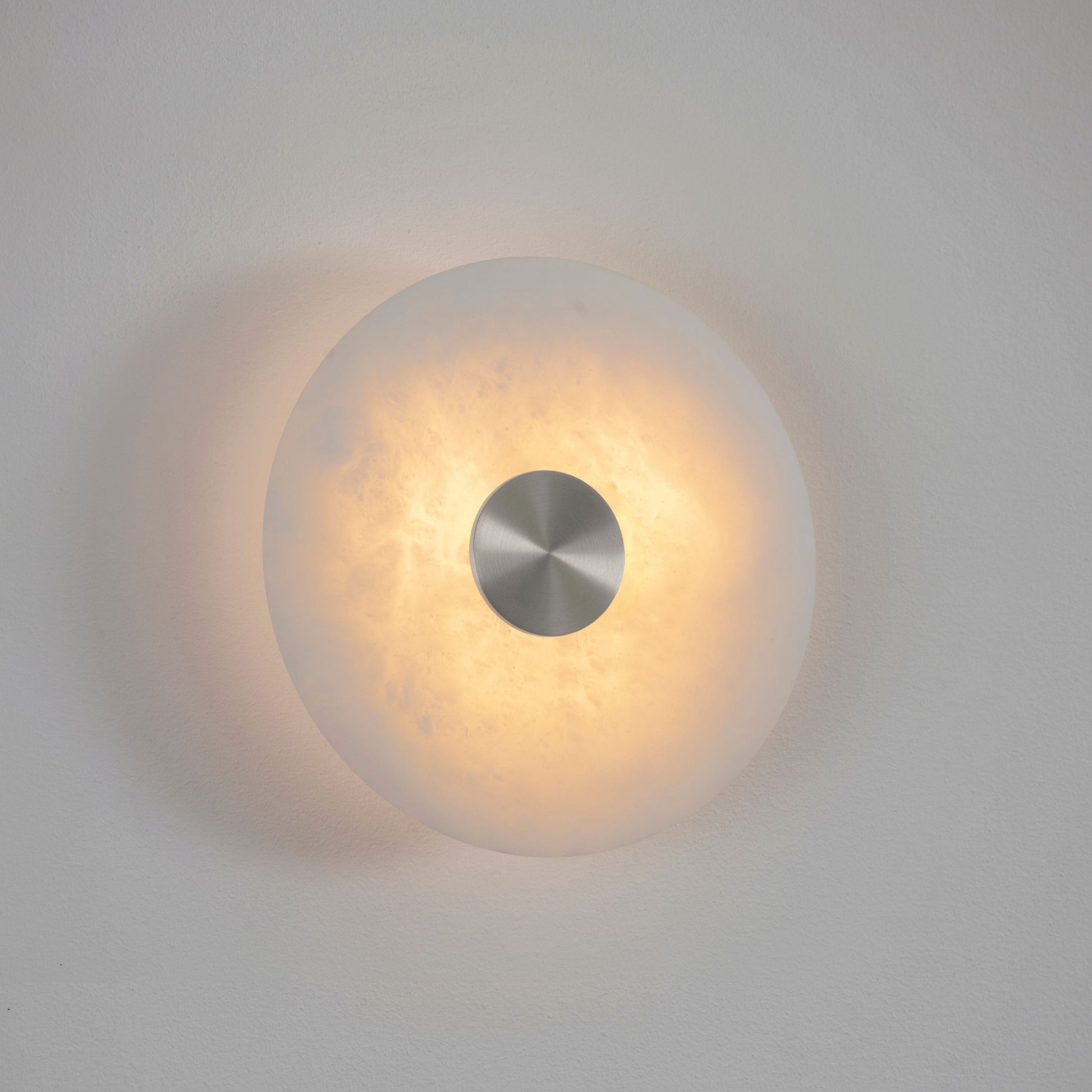 L'applique murale Bide de Bert Frank allie des matériaux bruts traditionnels comme le laiton et l'albâtre à des techniques d'ingénierie modernes, créant ainsi un mariage harmonieux d'élégance et de robustesse. L'albâtre étant une pierre naturelle, chaque pièce présente des veinures et des détails uniques. Indice de protection IP65 : convient aux pièces humides.