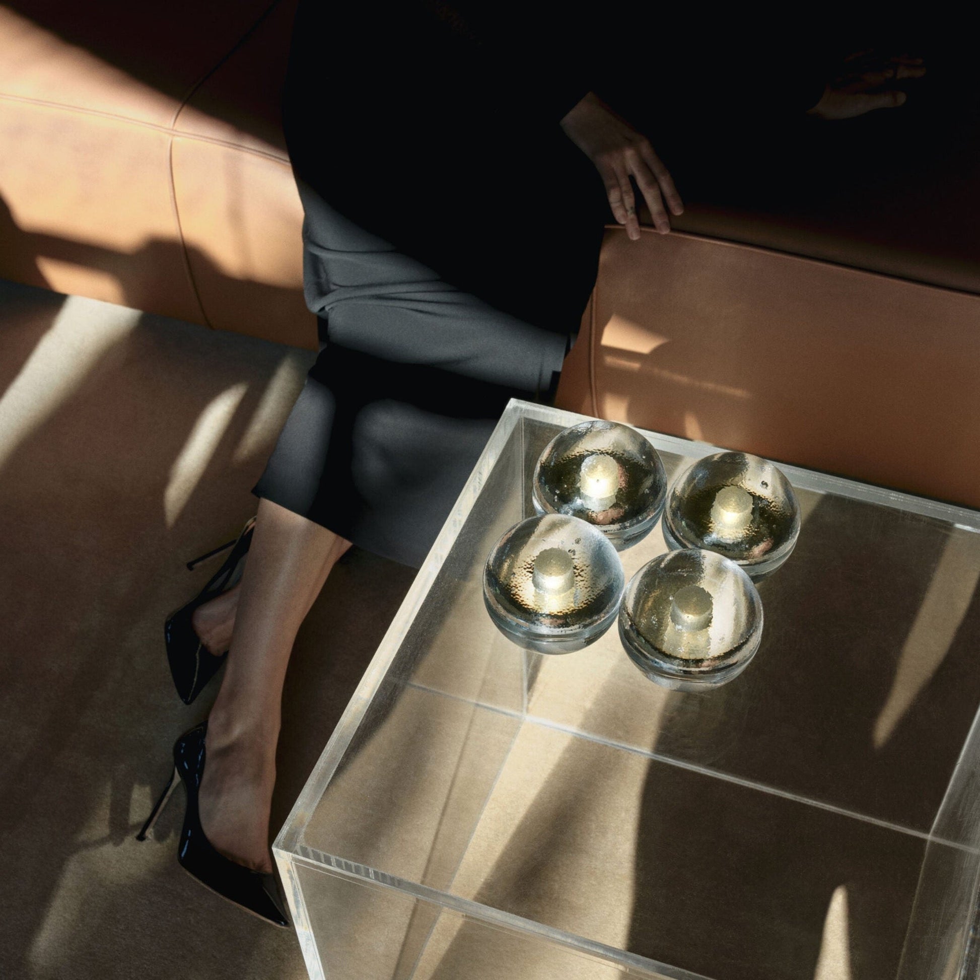 La lampe 14p transforme l'emblématique Série 14 de Bocci, lancée en 2005, en une lampe de table portable à la lumière douce et diffuse. Rechargeable et composée de deux hémisphères en verre coulé aux imperfections subtiles, elle est entièrement sans fil. Où que vous alliez, la douce lueur ondulante de la 14p vous accompagne. Son variateur tactile permet de choisir parmi trois niveaux d'éclairage d'ambiance.