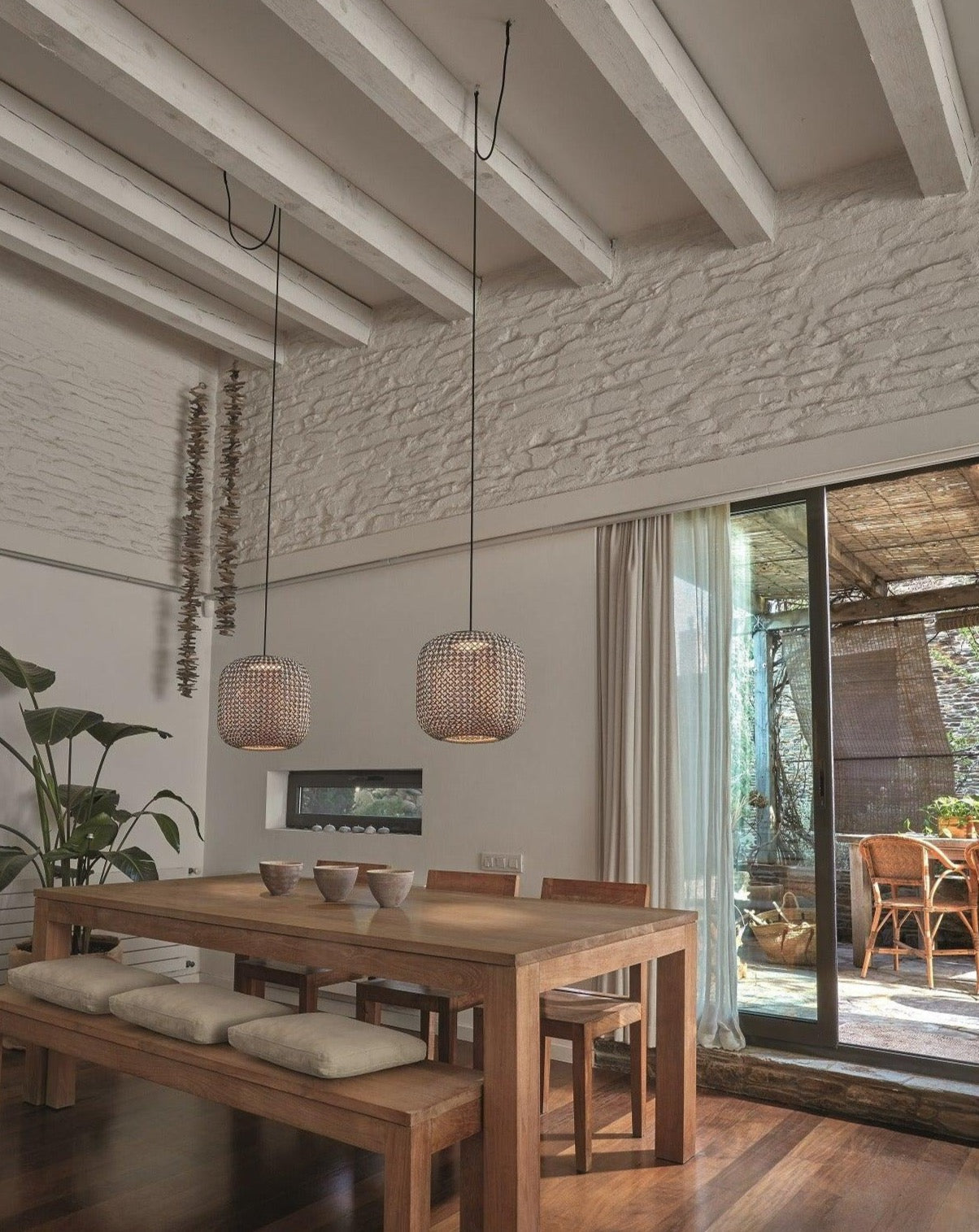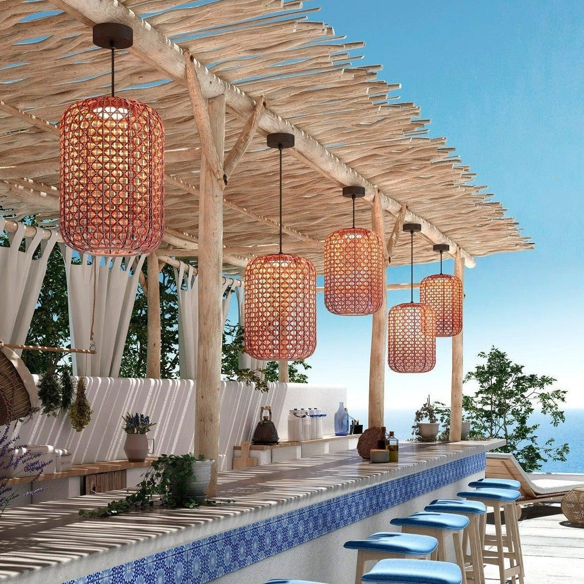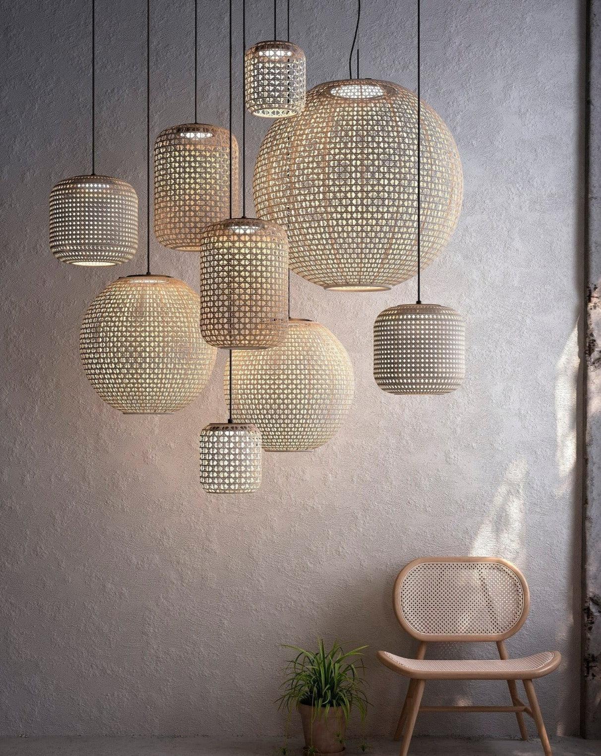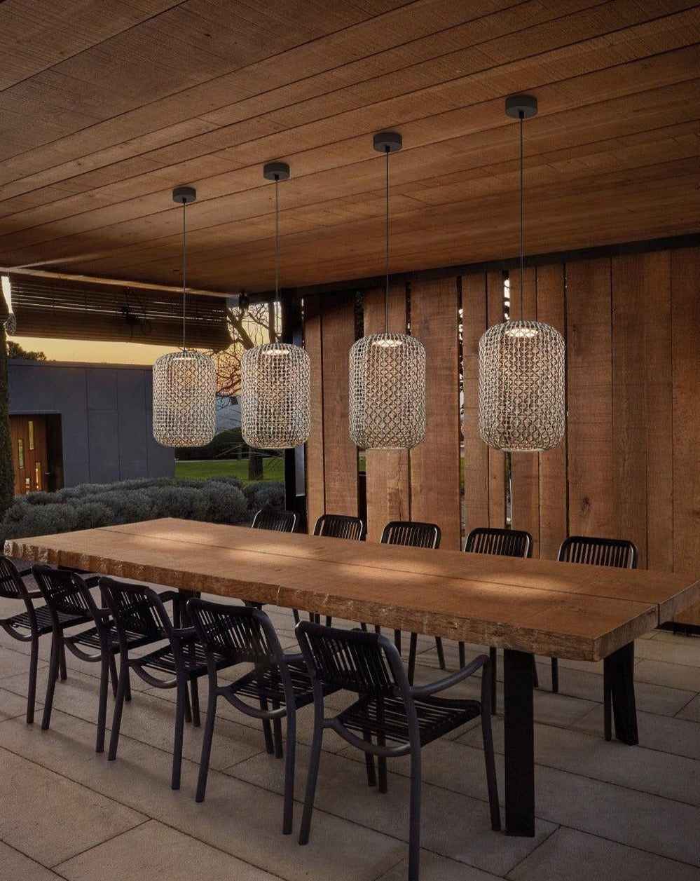 La suspension d'extérieur Nans de Bover est disponible en quatre tailles : petite, moyenne, grande et très grande. Son abat-jour en fibres de polyéthylène synthétiques tissées, recyclables et non toxiques, est proposé en brun graphite, rouge, marron ou beige. Avec Nans, Bover a souhaité mettre en valeur le savoir-faire artisanal de la fabrication de l'abat-jour et a exploré une nouvelle technique de tissage en combinant différentes couleurs et formats pour créer un véritable style méditerranéen.