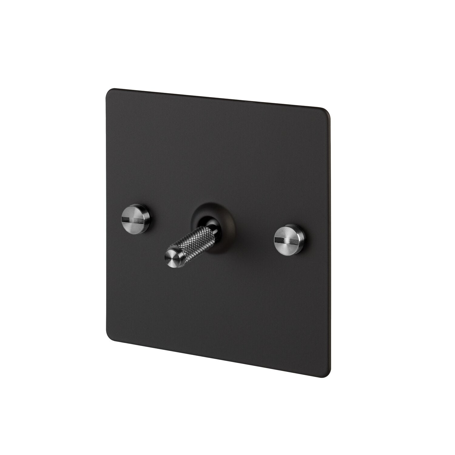 L'interrupteur à bascule intermédiaire 1G de Buster + Punch est en métal massif avec une finition peinture PU résistante aux UV. Il est proposé avec différents kits de détails en métal massif, incluant un levier et des vis à tête fraisée, disponibles en acier, laiton ou noir.