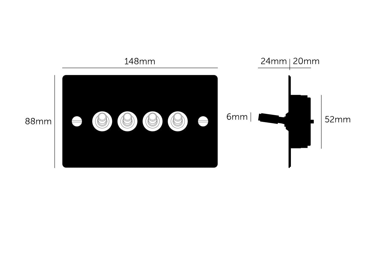 Interrupteur à bascule 4G en laiton de Buster + Punch. Le levier et la plaque plate sont en laiton massif et présentent un moletage croisé à facettes.