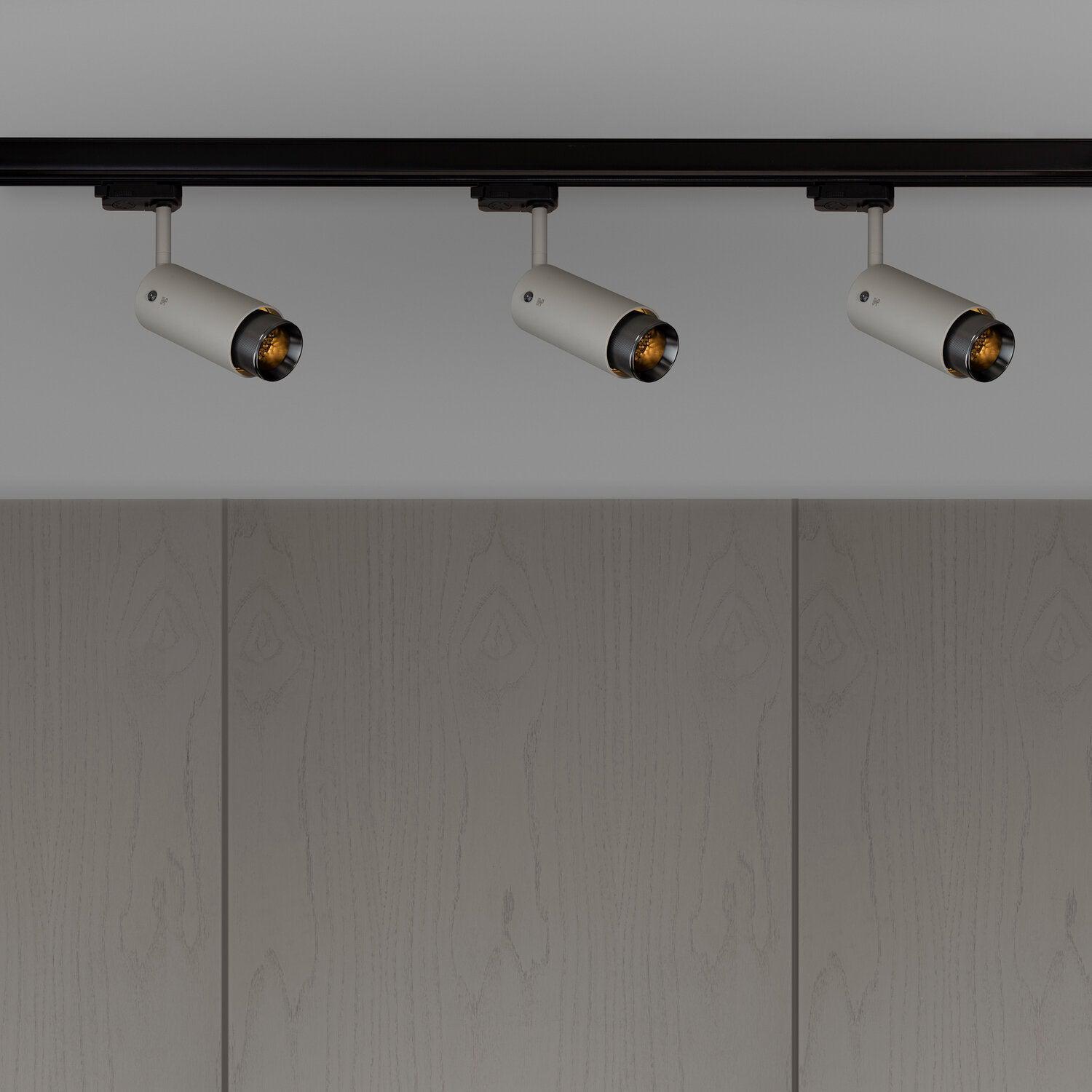 Le projecteur Exhaust de Buster + Punch est un projecteur de piste en métal revêtu de poudre graphite avec des détails en métal massif. Il est doté d'un déflecteur à moletage linéaire et de vis Torx usinées, tous deux en métal massif assorti. Le déflecteur capte la lumière et crée une douce lueur métallique, tandis qu'un filtre en nid d'abeille diffuse un faisceau directionnel précis et non éblouissant. Le projecteur est entièrement réglable et est fourni avec un adaptateur universel pour rail à 3 circuits de couleur noire. Il est compatible avec une ampoule GU10.