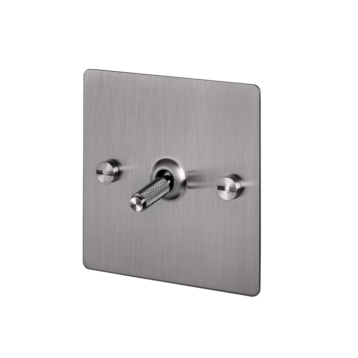 L'interrupteur à bascule 1G de Buster + Punch est en acier. Son bras peut être réalisé en acier massif ou en laiton et présente un moletage croisé à facettes diamantées.