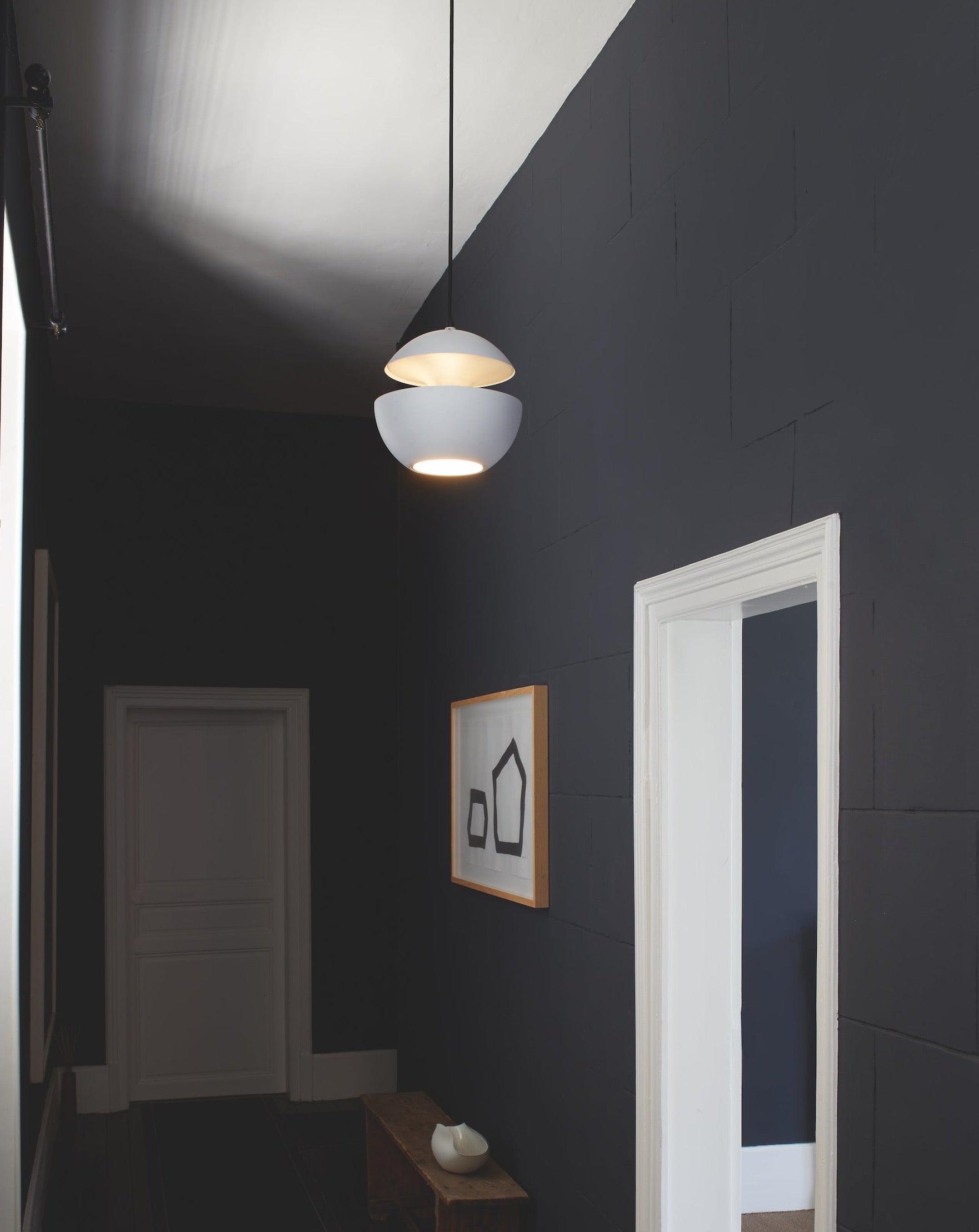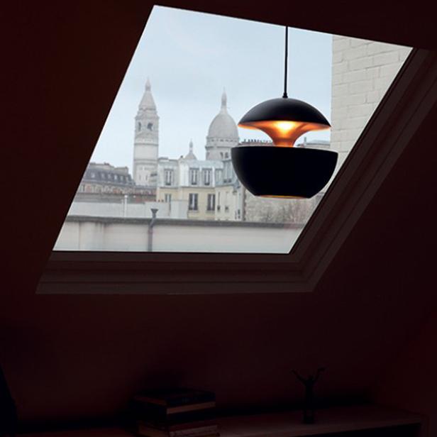 Au premier abord, ce plafonnier rond ressemble à beaucoup d'autres lampes rondes. Mais une fois allumée, la suspension Here Comes the Sun se pare d'une aura magique. L'obscurité s'adoucit et se métamorphose en une lumière chaleureuse et rassurante.
