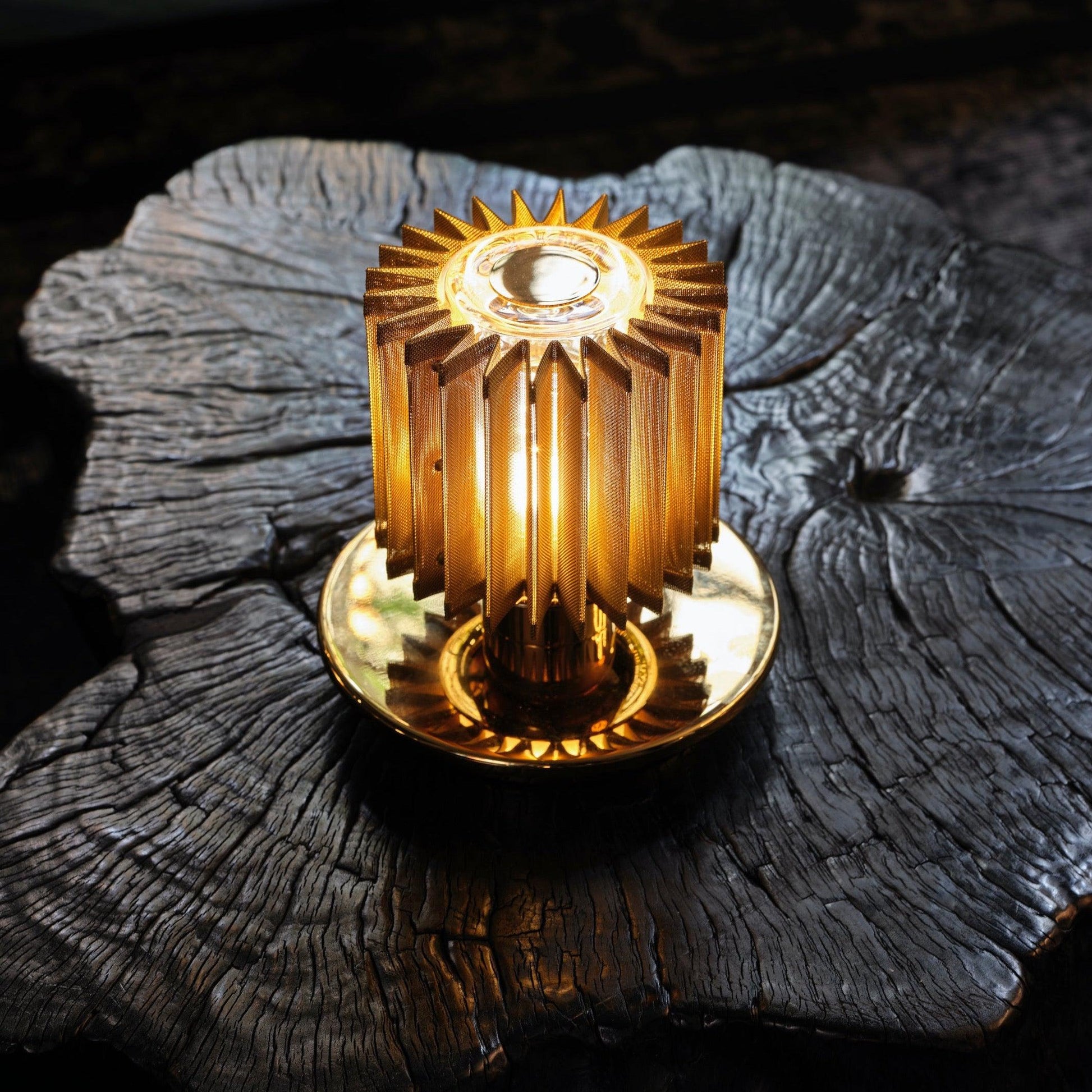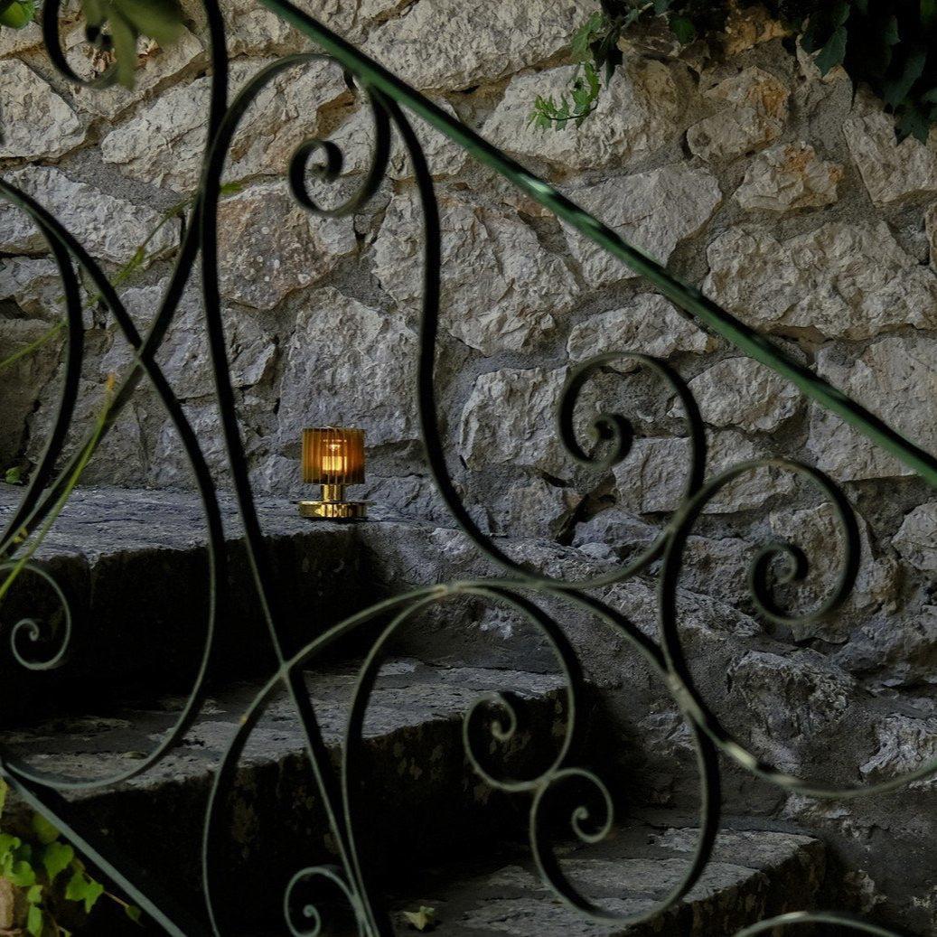 La lampe de table In The Sun de DCW editions est une lampe de table sans fil alimentée par batterie, avec un interrupteur à 5 positions permettant différents niveaux d'intensité lumineuse.