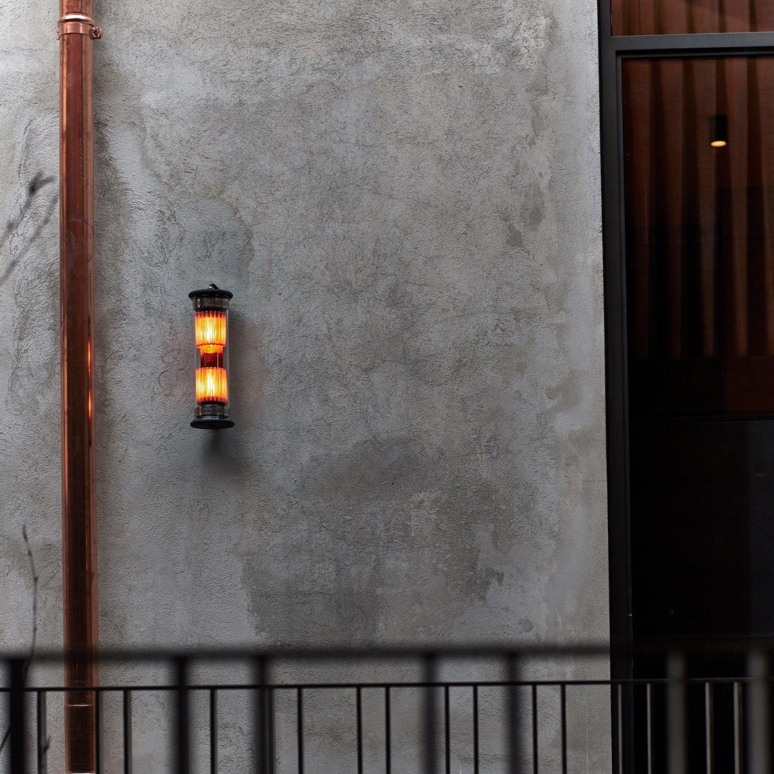 Un tube en verre borosilicate abrite les ampoules à filament LED disposées linéairement. Des fixations en acier inoxydable et des bouchons en aluminium scellés au silicone garantissent une étanchéité parfaite à l'eau et aux intempéries, rendant ce luminaire adapté à une utilisation intérieure et extérieure.
