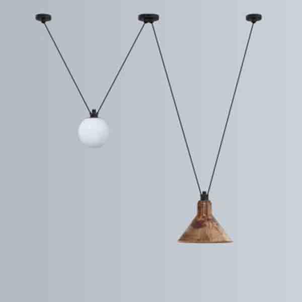 Le DCW Editions 324 Corps Seul est une combinaison de 4 câbles de suspension, trois rosaces (rosaces de plafond) et deux douilles de lampe.