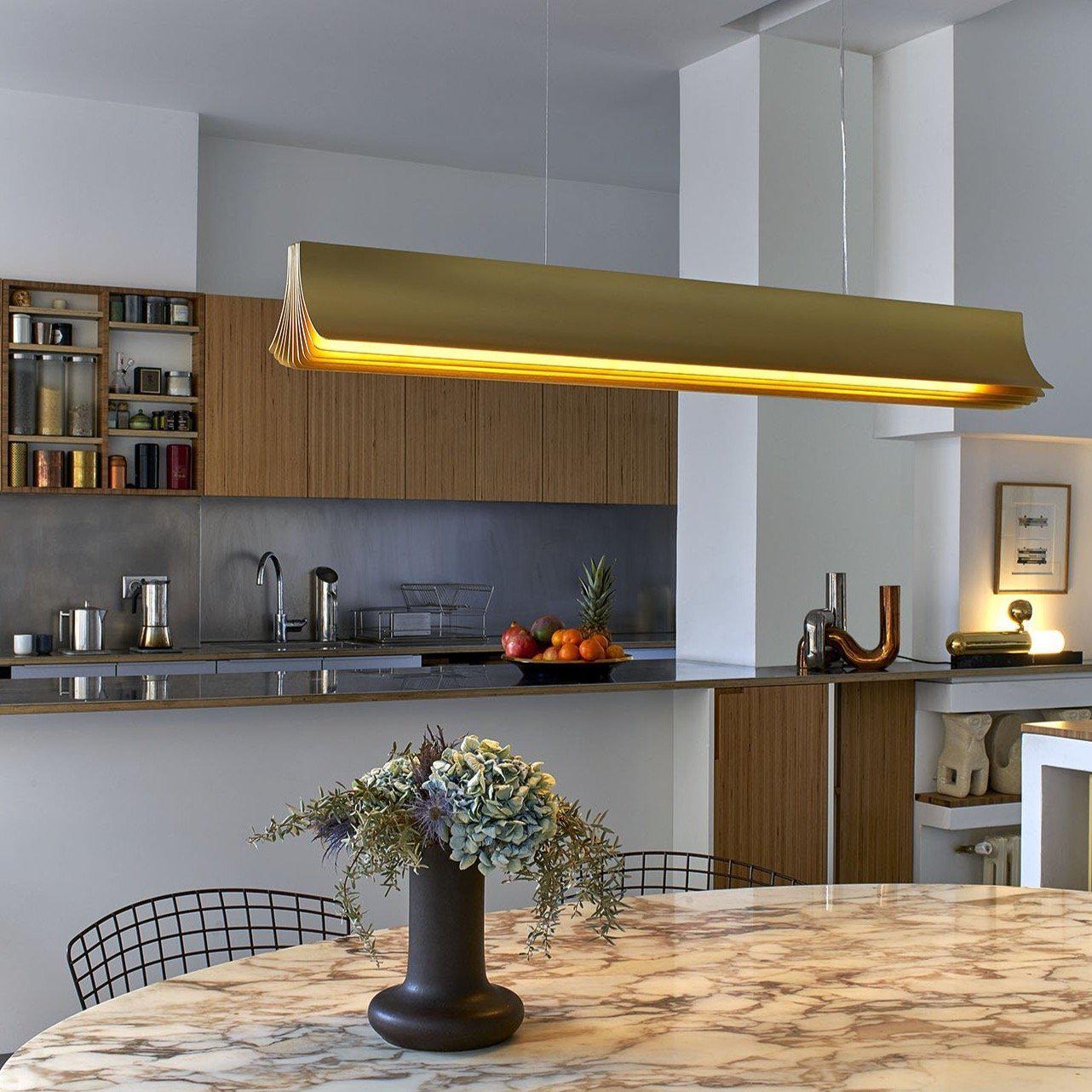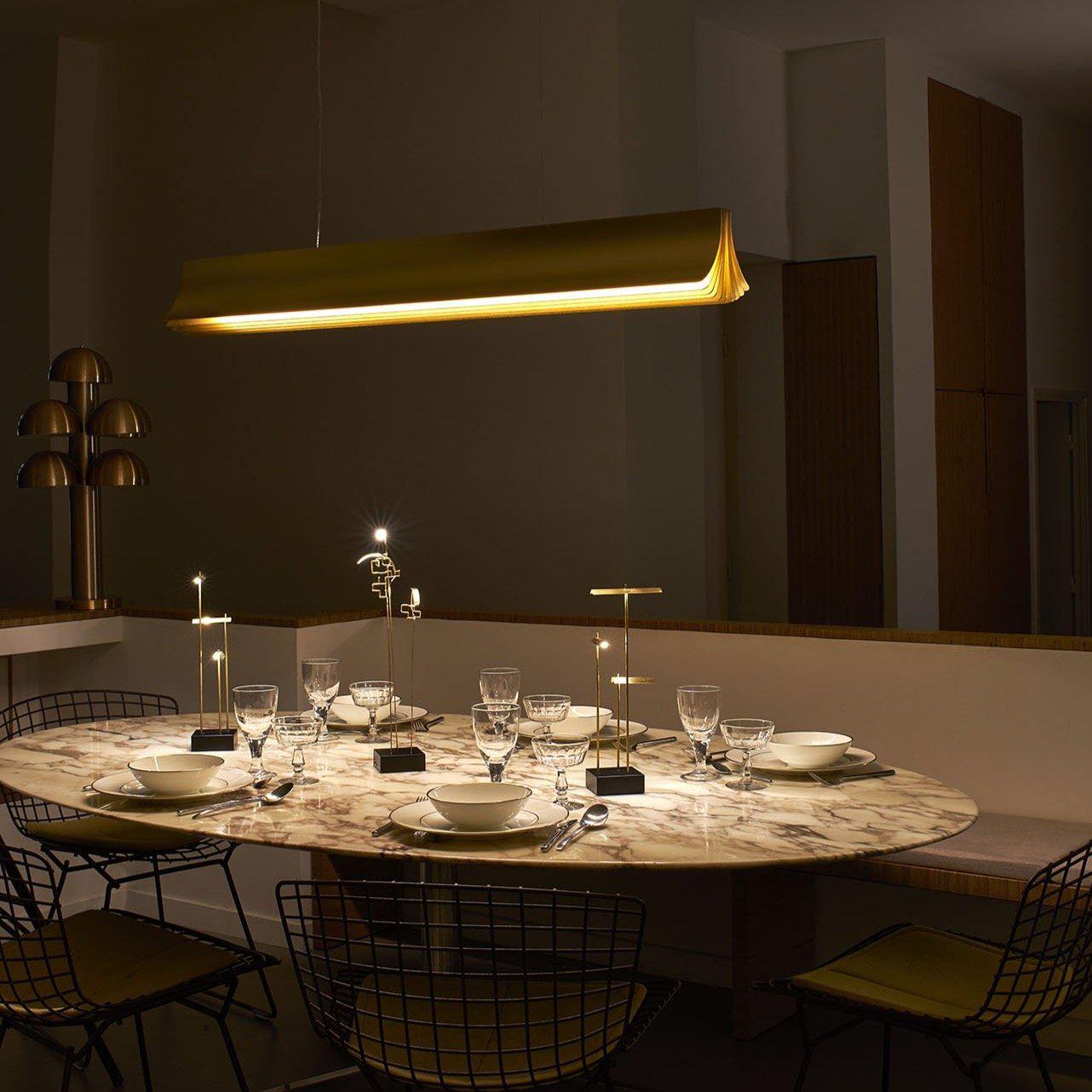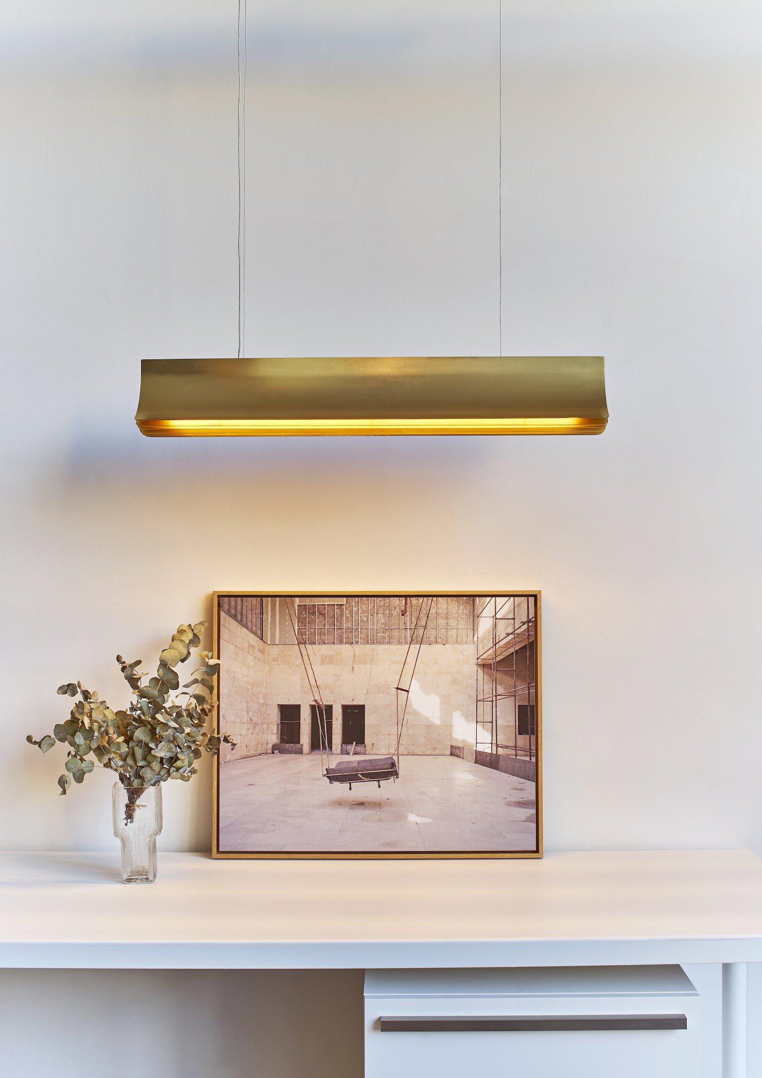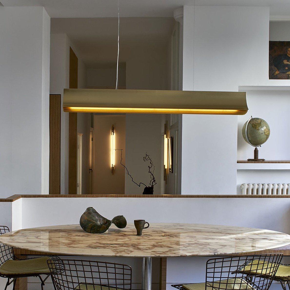 La suspension Respiro de DCW Editions est une création du designer français Philippe Nigro. Fabriquée en aluminium anodisé, elle se décline en trois finitions (toutes avec un intérieur doré).