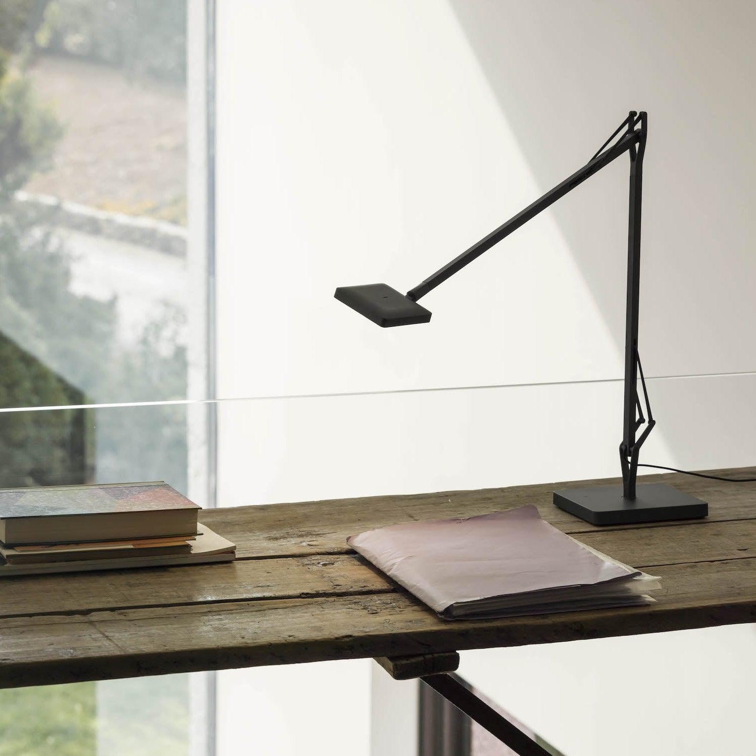 La lampe de bureau Kelvin Edge de Flos offre un éclairage direct. Son corps est en aluminium peint ou chromé, avec une tête, des articulations et des fourches moulées sous pression, ainsi que des bras extrudés. Le diffuseur est en polycarbonate photogravé et en aluminate sur le pourtour. La source lumineuse utilise la technologie Edge Lighting. L'interrupteur optique, situé sur la tête, propose un variateur à trois niveaux et la possibilité d'activer le « mode vert ». Une nouvelle fonction permet de régler la température de couleur à 2 700 K ou 3 200 K, pour passer d'une lumière chaude à une lumière froide et inversement.