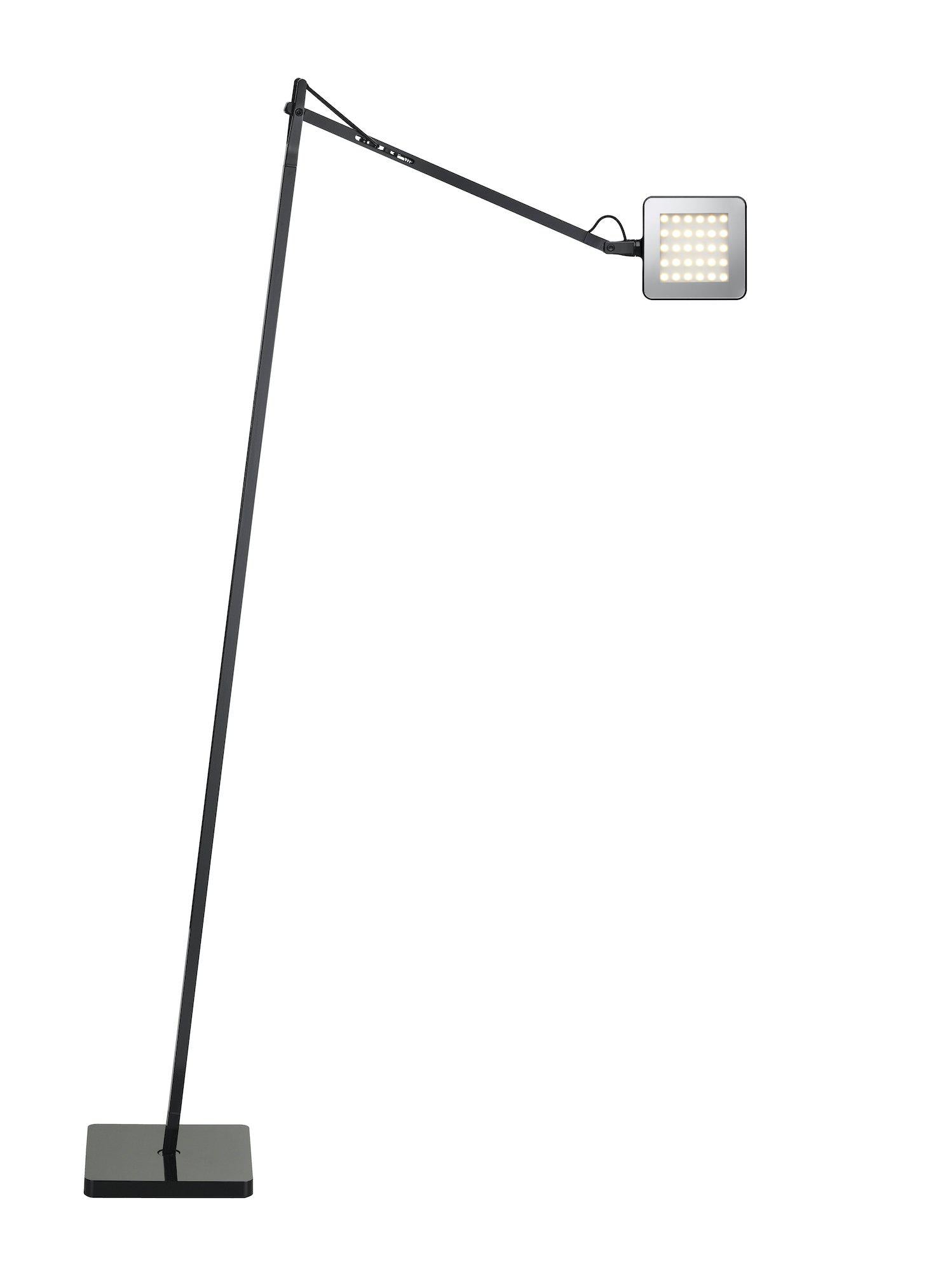 Le lampadaire Kelvin de Flos est doté d' un bloc d'alimentation sur prise, d'un socle en polycarbonate imprimé par injection, d'un contrepoids en fer découpé et peint par cataphorèse . Tête orientable. Interrupteur marche/arrêt à trois positions avec technologie Soft Touch.