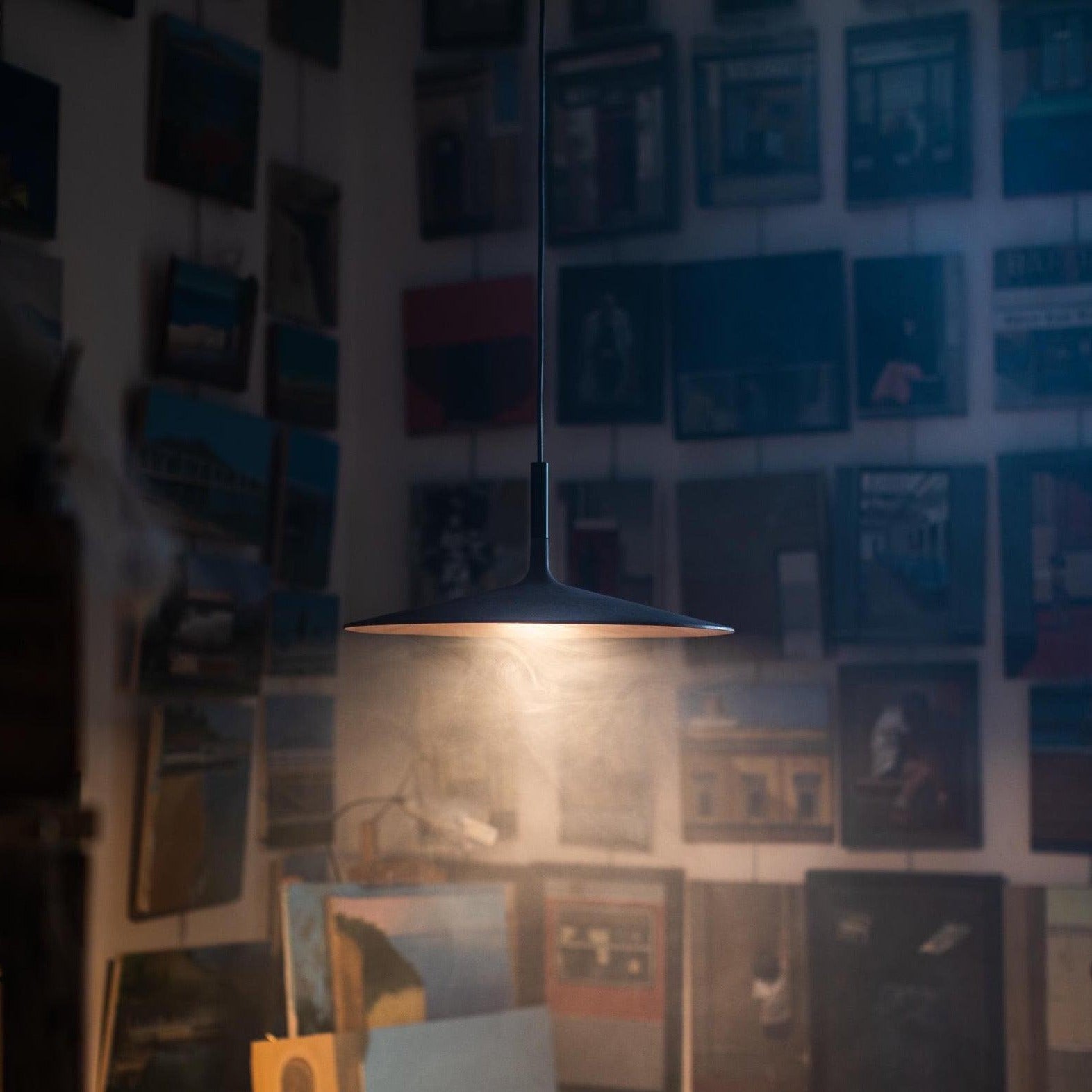 La suspension Aplomb Large de Foscarini met en valeur un béton spécial, formulé exclusivement pour l'occasion. Son design particulièrement large et élancé diffuse un faisceau lumineux étendu.