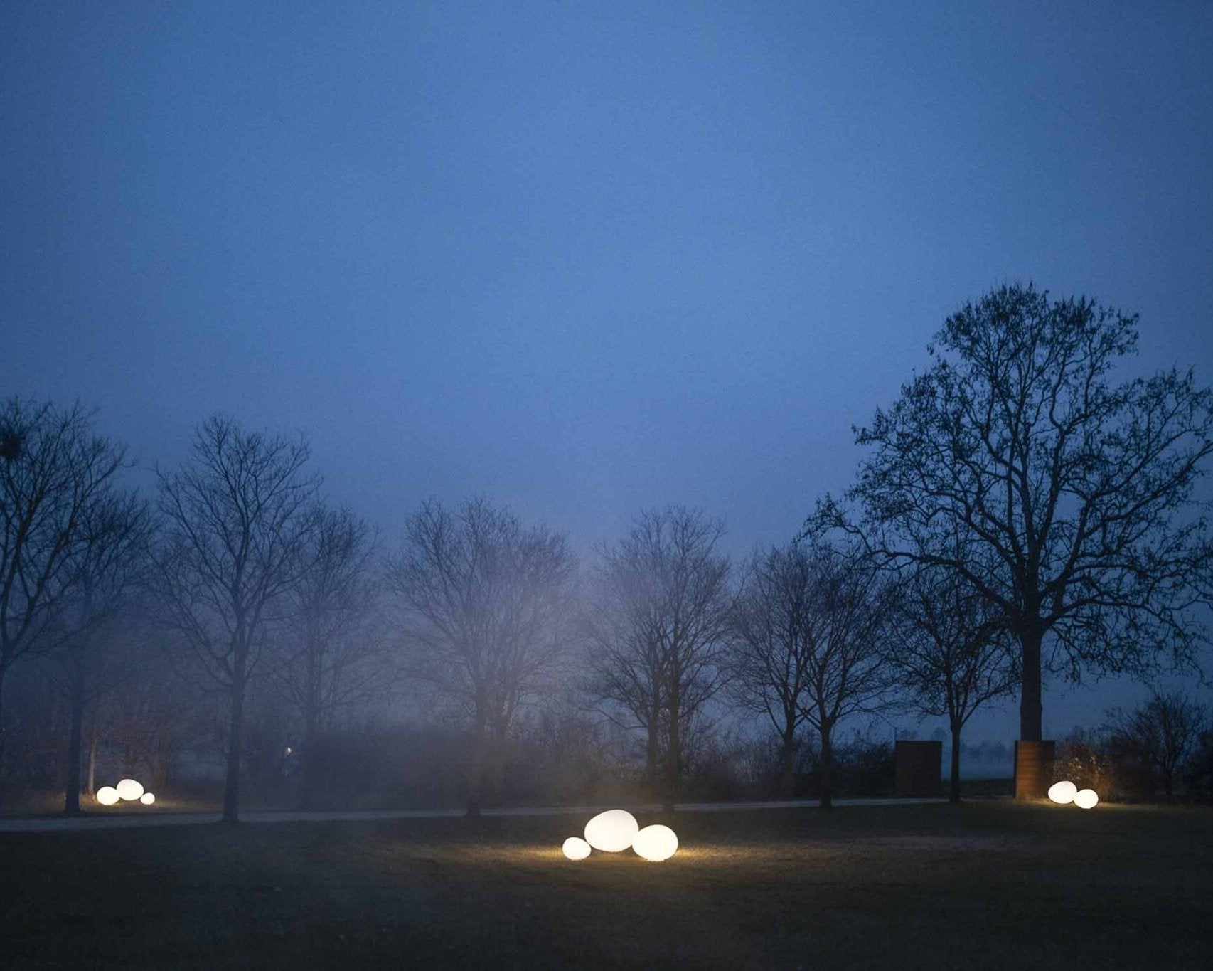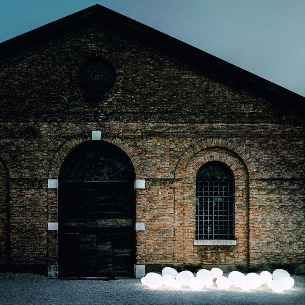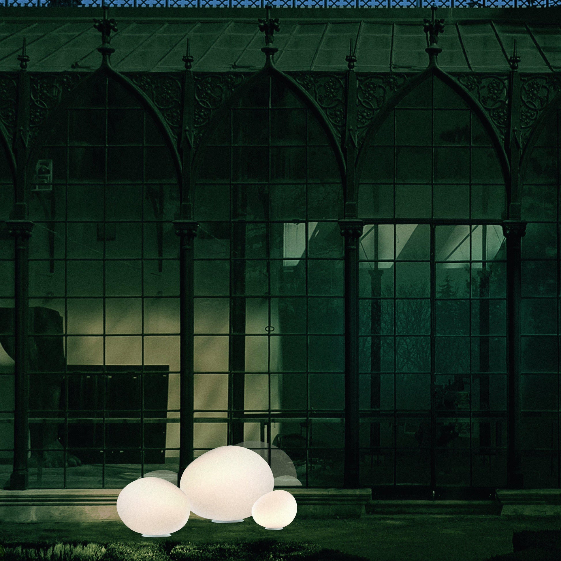 La lampe d'extérieur Gregg de Foscarini est fabriquée en polyéthylène rotomoulé et en métal verni. Elle est disponible en trois tailles : XL, Grande et Media. Pièce unique et asymétrique dont la forme évoque un galet, la Gregg apporte une touche de chaleur et d'ambiance raffinée, qu'elle soit utilisée seule ou intégrée à une composition.