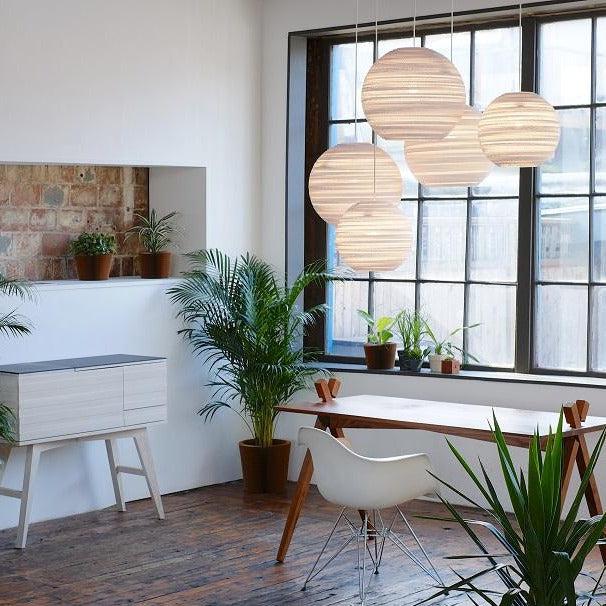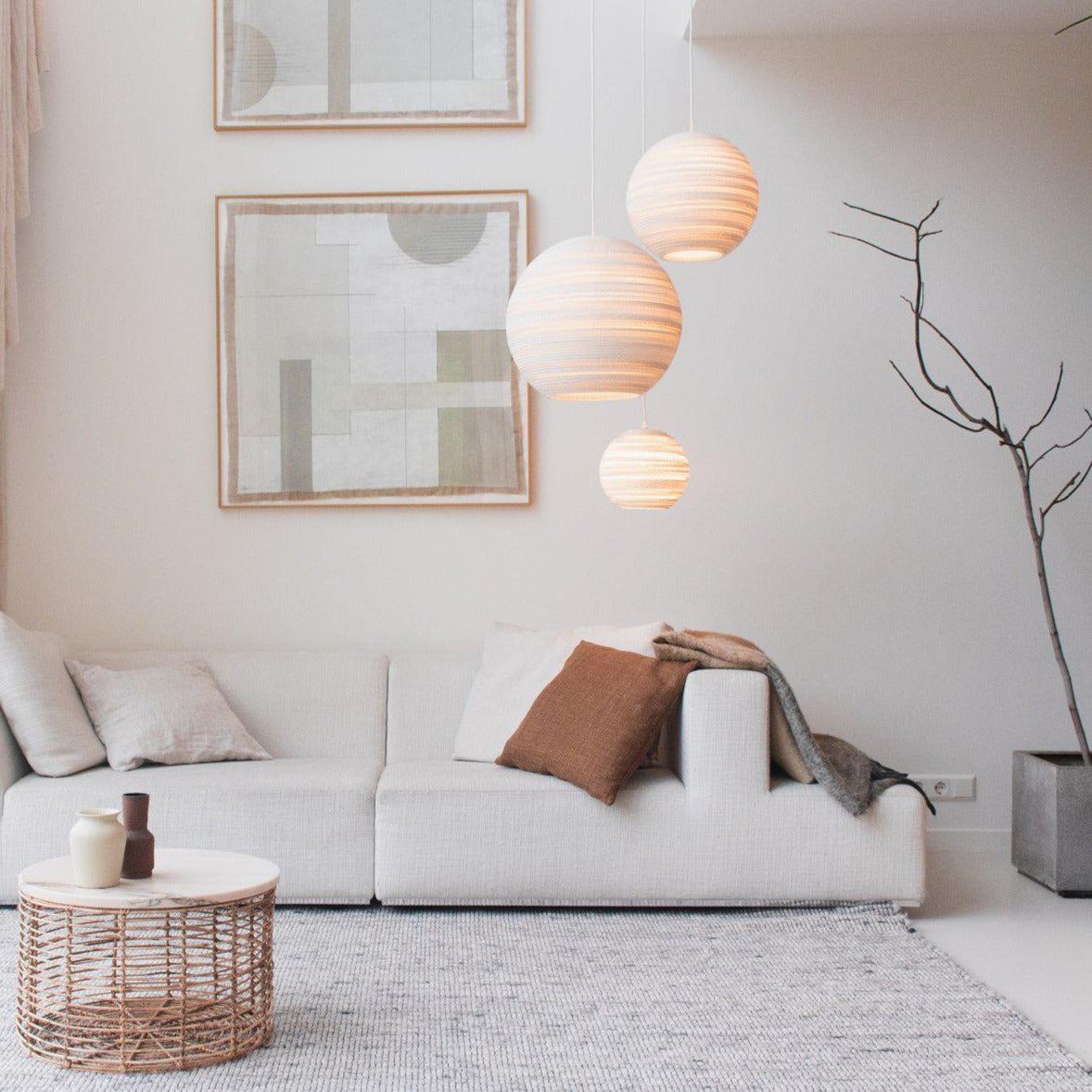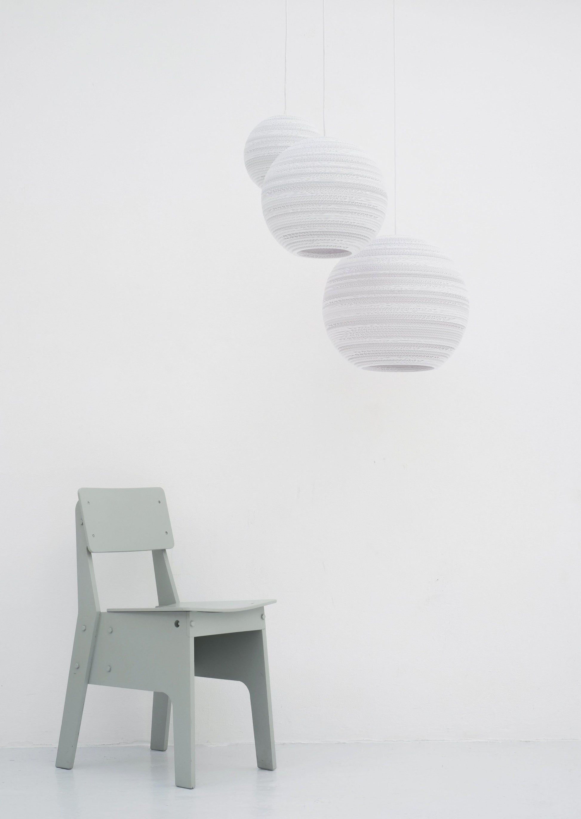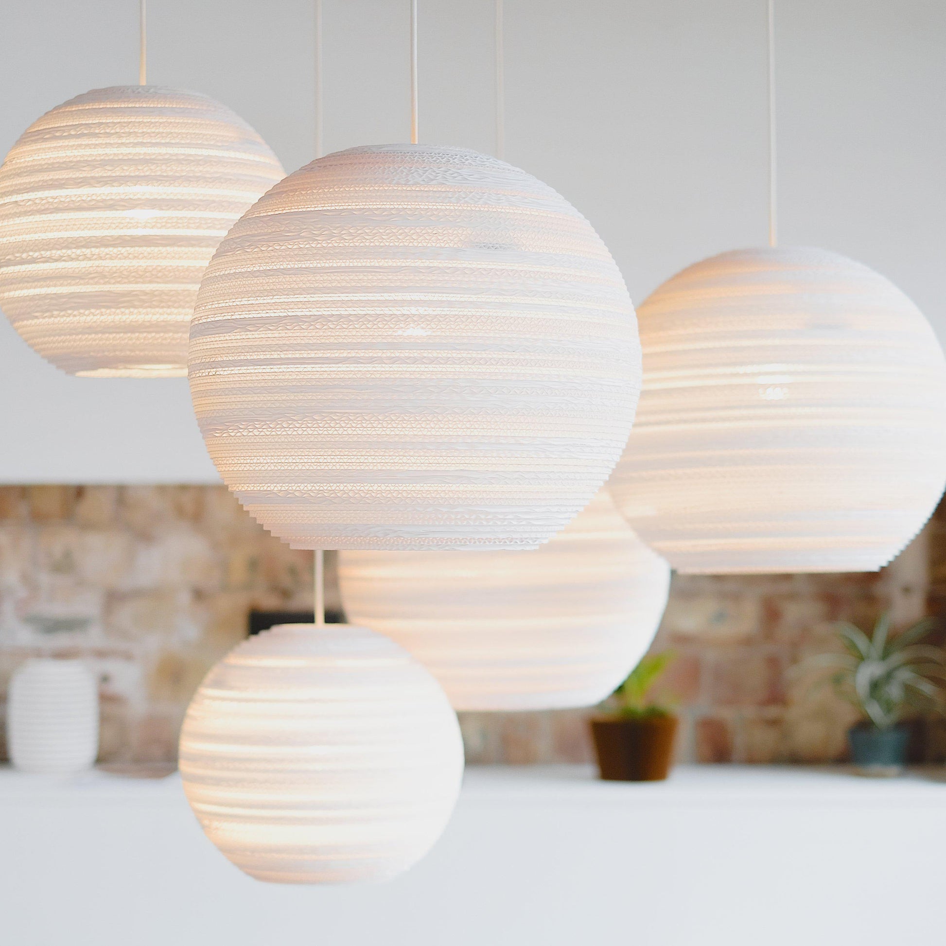 Fabriquée artisanalement à partir de carton recyclé, la suspension Scraplight Moon de Graypants offre un éclairage chaleureux, intime et fonctionnel, idéal pour toutes les occasions et tous les espaces. Robuste et élégante, chaque suspension est découpée avec précision au laser et assemblée à la main à l'aide d'une colle non toxique. Toutes les suspensions Scraplight sont traitées avec un retardateur de flamme écologique.