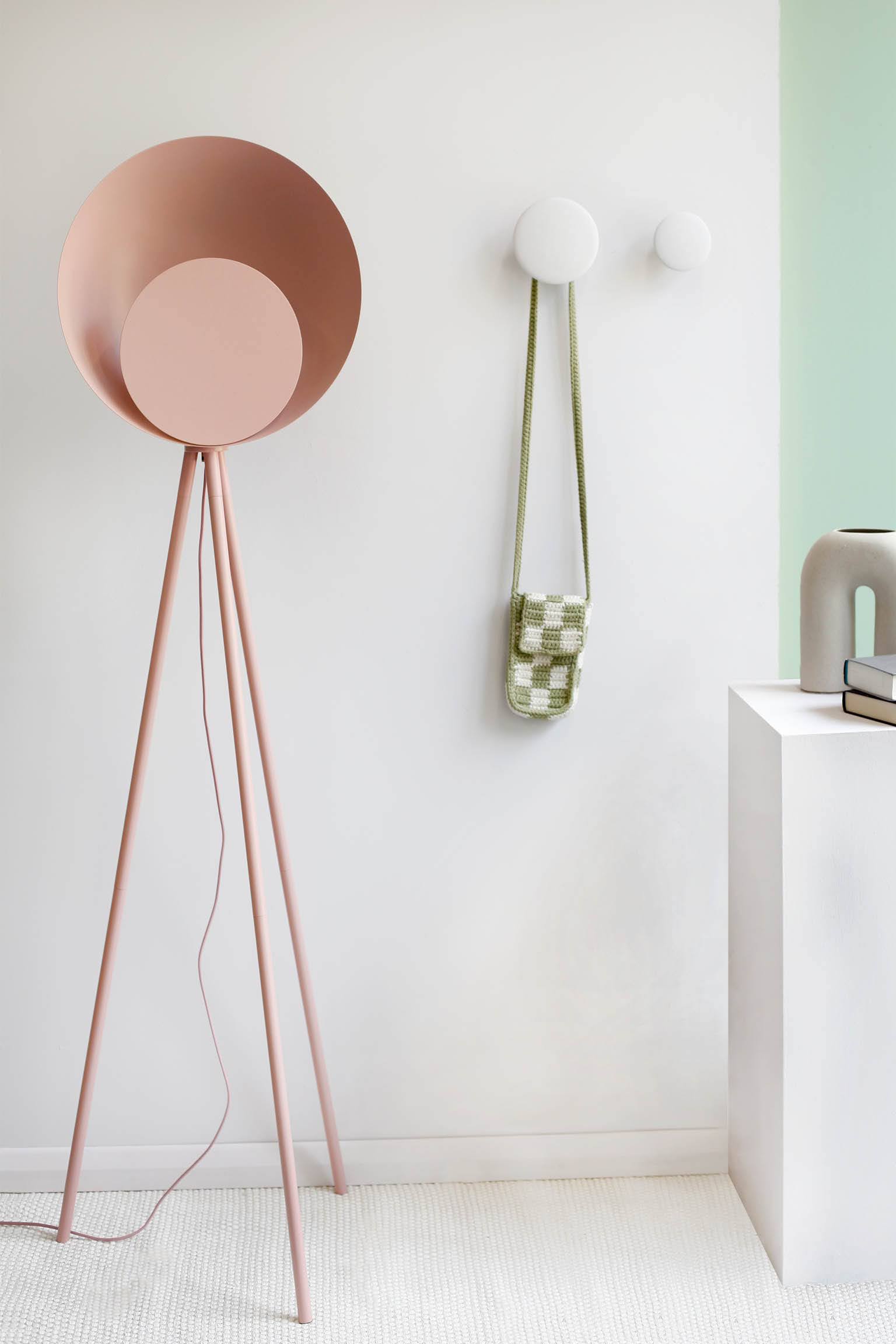 Ce lampadaire d'exception est une véritable icône House of Of. Son pied tripode soutient un dôme surdimensionné qui, associé à la structure métallique peinte, diffuse une douce lumière de coucher de soleil. Chaque lampadaire diffuseur de notre collection illumine un espace d'une teinte personnalisée. Idéal pour un salon ou une chambre.
