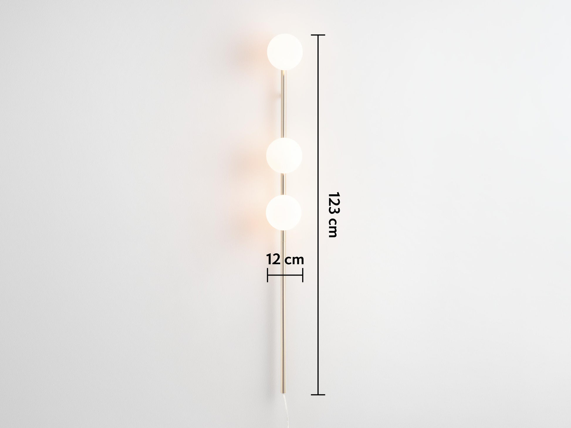 L'applique murale Opal Ball, de Houseof, est Un luminaire unique qui illumine votre intérieur. La barre métallique soutient trois abat-jour en verre opale qui diffusent une lumière chaude et agréable dans vos pièces à vivre. Grâce à son design fin, il permet d'éclairer facilement les tables de chevet étroites et les couloirs, ne laissant aucune zone dans l'obscurité.
