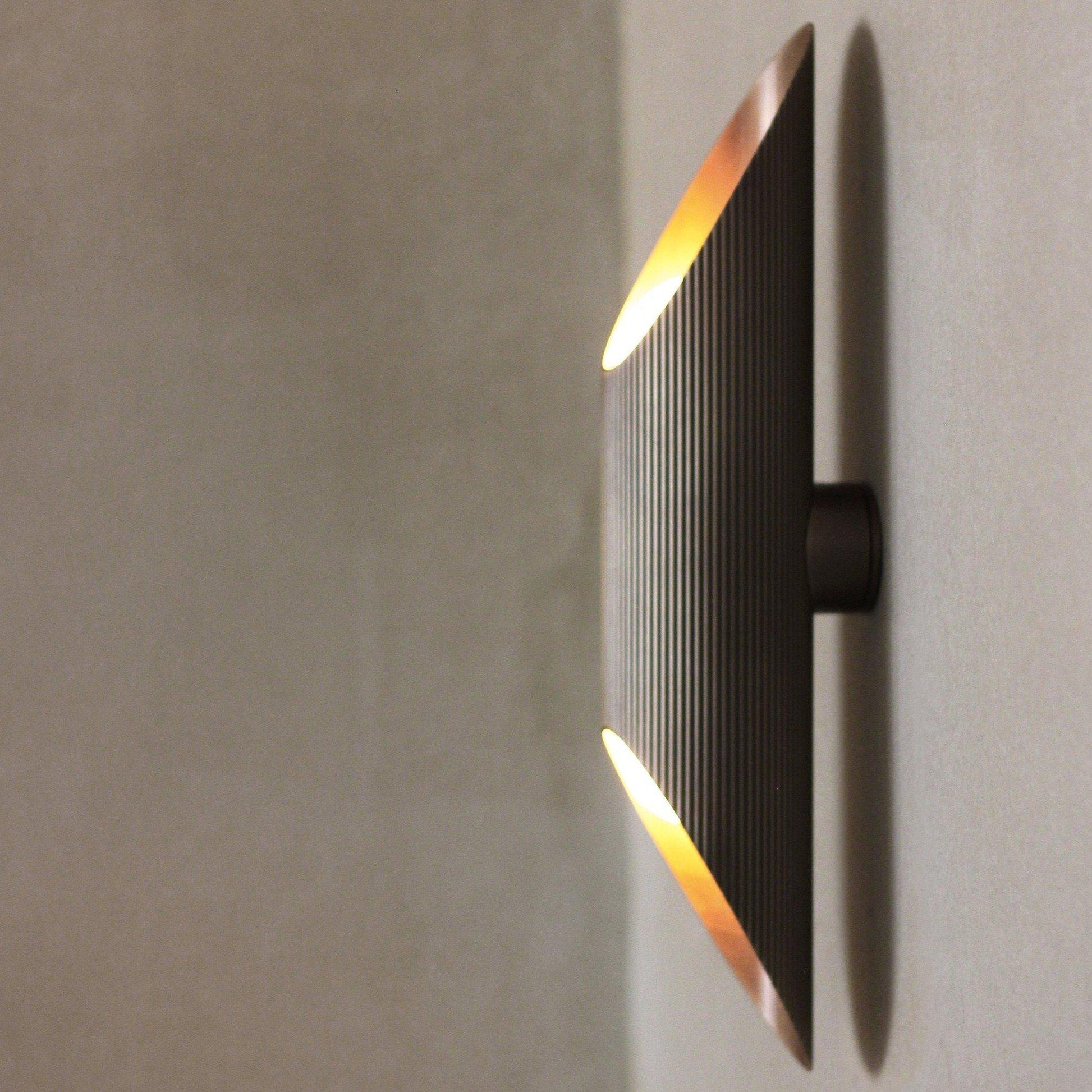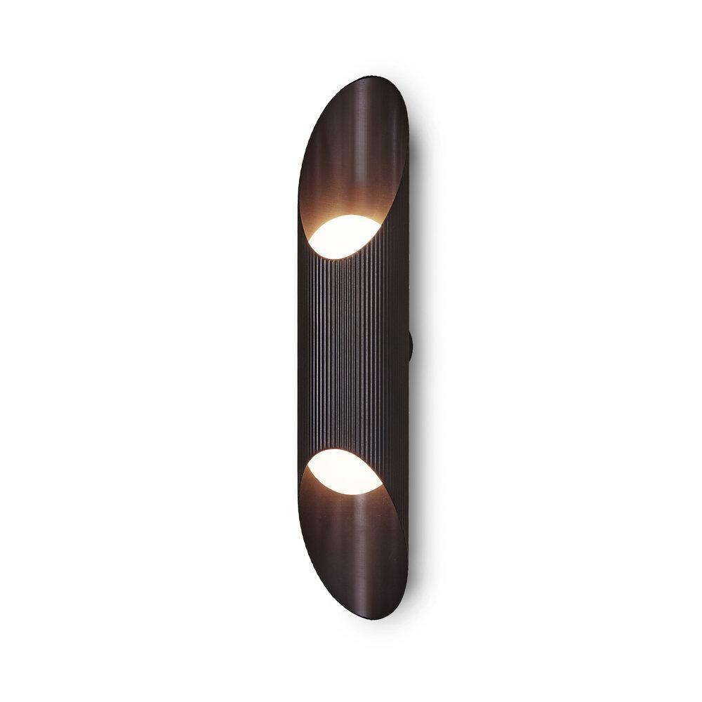 L' applique murale Vector de J. Adams & Co peut être fixée verticalement ou horizontalement pour un éclairage indirect et sans éblouissement. Avec son design graphique affirmé et sa forme équilibrée, la silhouette moderne de Vector est sublimée par une finition en laiton antique ou en bronze, lui conférant une esthétique inspirée du milieu du XXe siècle. Des découpes angulaires révèlent des ouvertures elliptiques, telles des paupières, qui dissimulent un globe en verre opale et diffusent une lumière d'ambiance vers le haut et vers le bas. Création de Will Earl. Fabriquée en Angleterre.