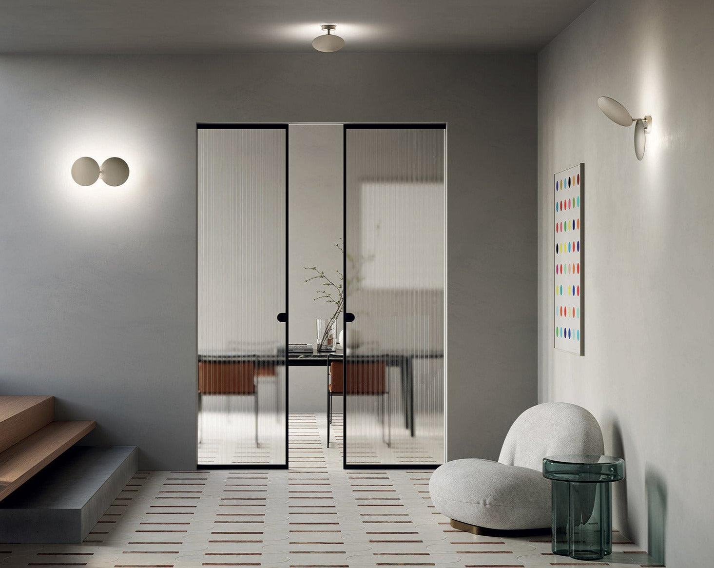 La lampe Puzzle Round de Lodes – des formes géométriques, douces et souples – transforme la lumière en une essence malléable à diffuser sur les murs et le plafond. Puzzle Round permet de personnaliser l'éclairage intérieur, en l'ajustant à volonté grâce à sa structure dotée de joints flexibles. La lampe peut ainsi s'incliner à 85° et pivoter jusqu'à 355°. Intégrant une LED, Puzzle Round permet de créer des jeux de lumière toujours changeants, doublés dans la version Double Round. Champagne, blanc mat, bronze cuivré et noir mat sont les finitions proposées pour cette lampe simple et polyvalente, capable d'offrir des effets lumineux surprenants dans tous les types d'espaces.