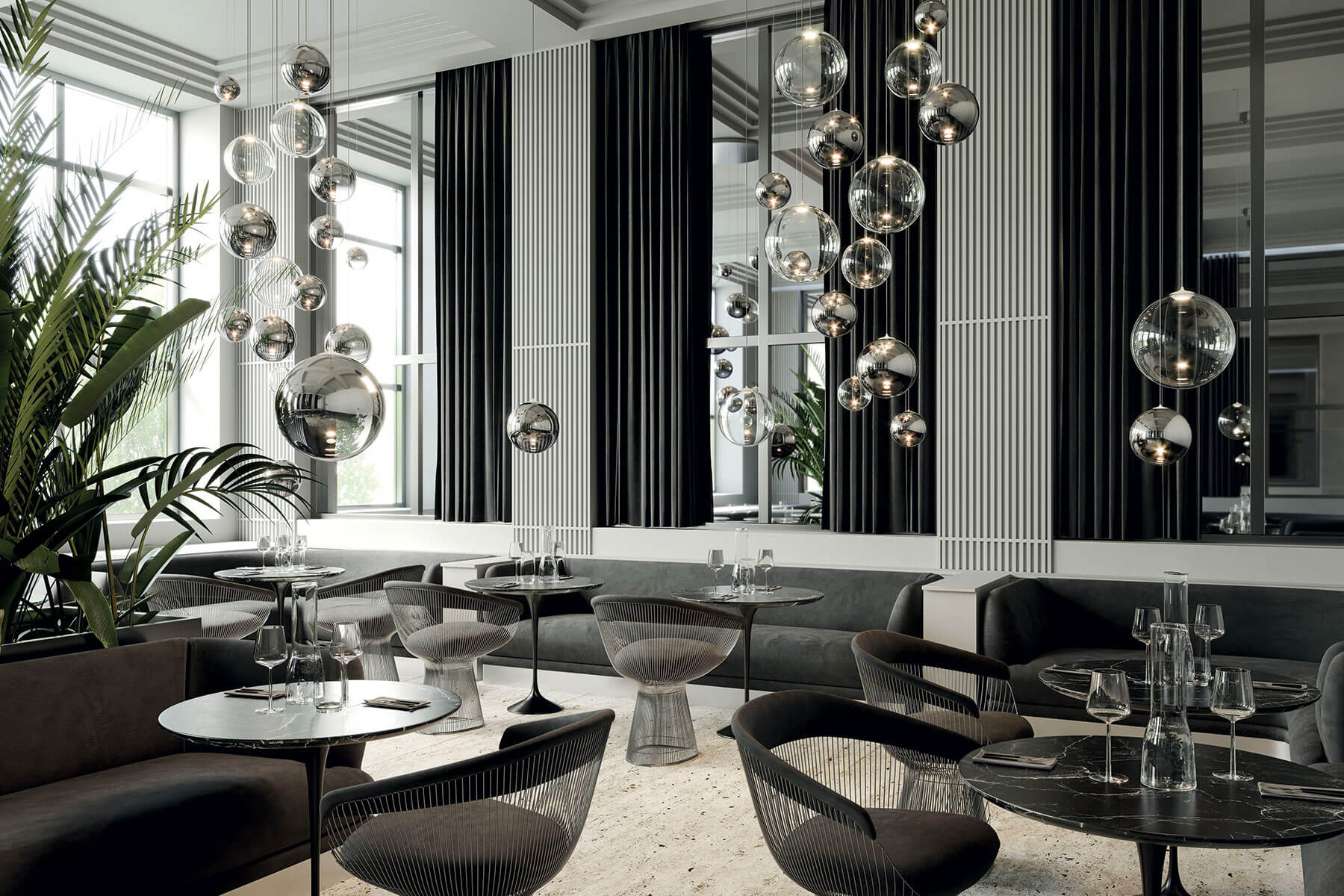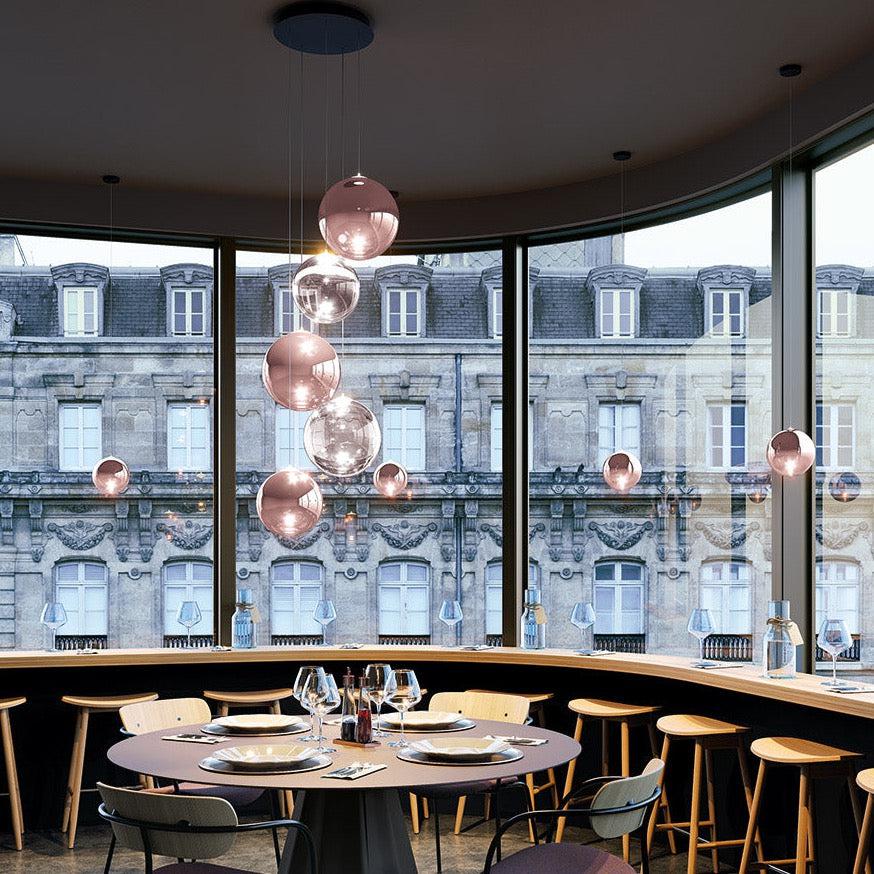 Les cinq tailles et les six finitions disponibles offrent une grande liberté de style, que ce soit en suspension individuelle ou en compositions lumineuses et dynamiques en grappes. La nouvelle finition blanche dépolie anti-traces de doigts métamorphose la perception de la sphère et de son volume, ouvrant ainsi de nouvelles perspectives en matière de décoration intérieure.