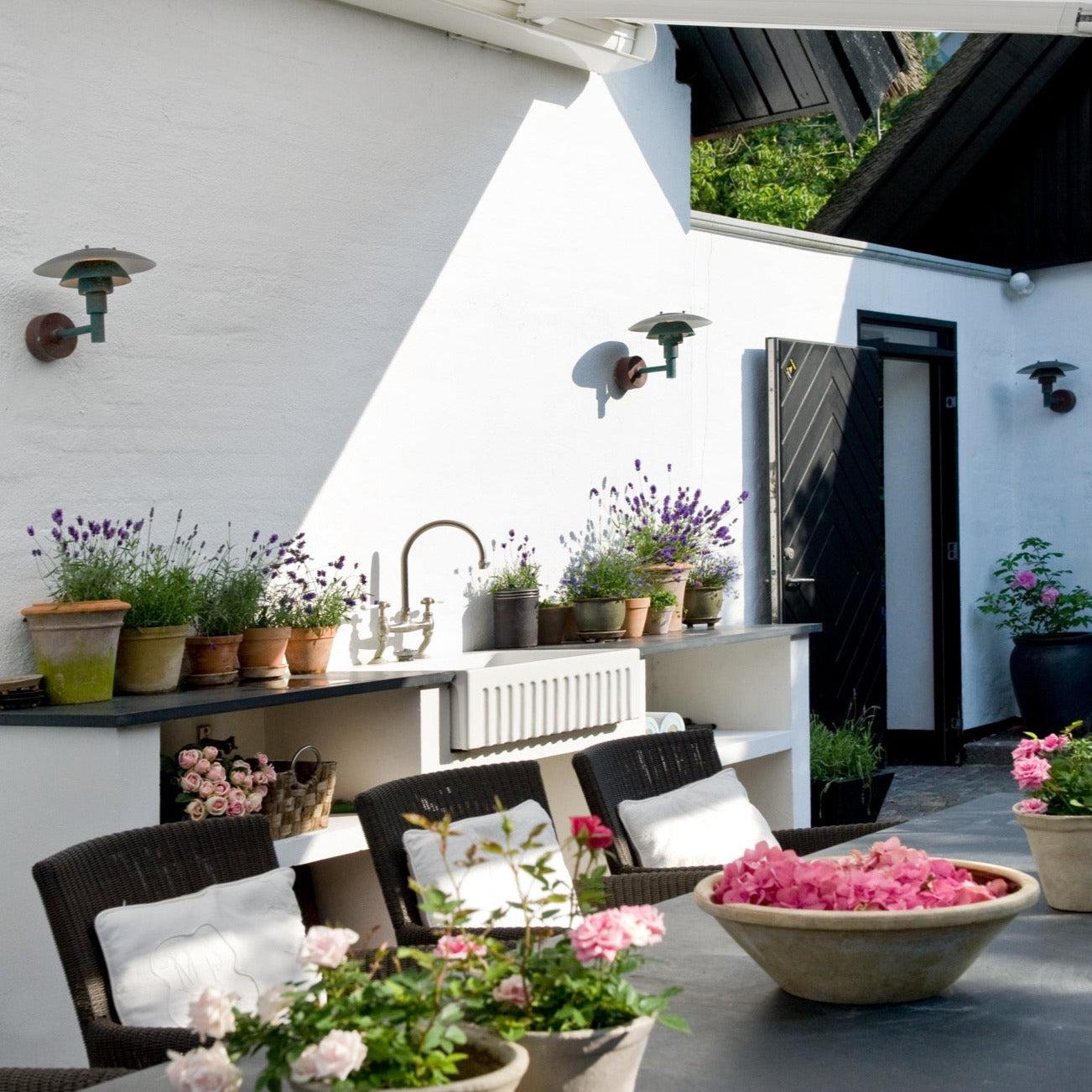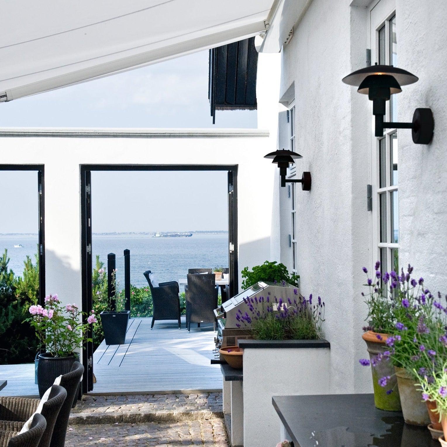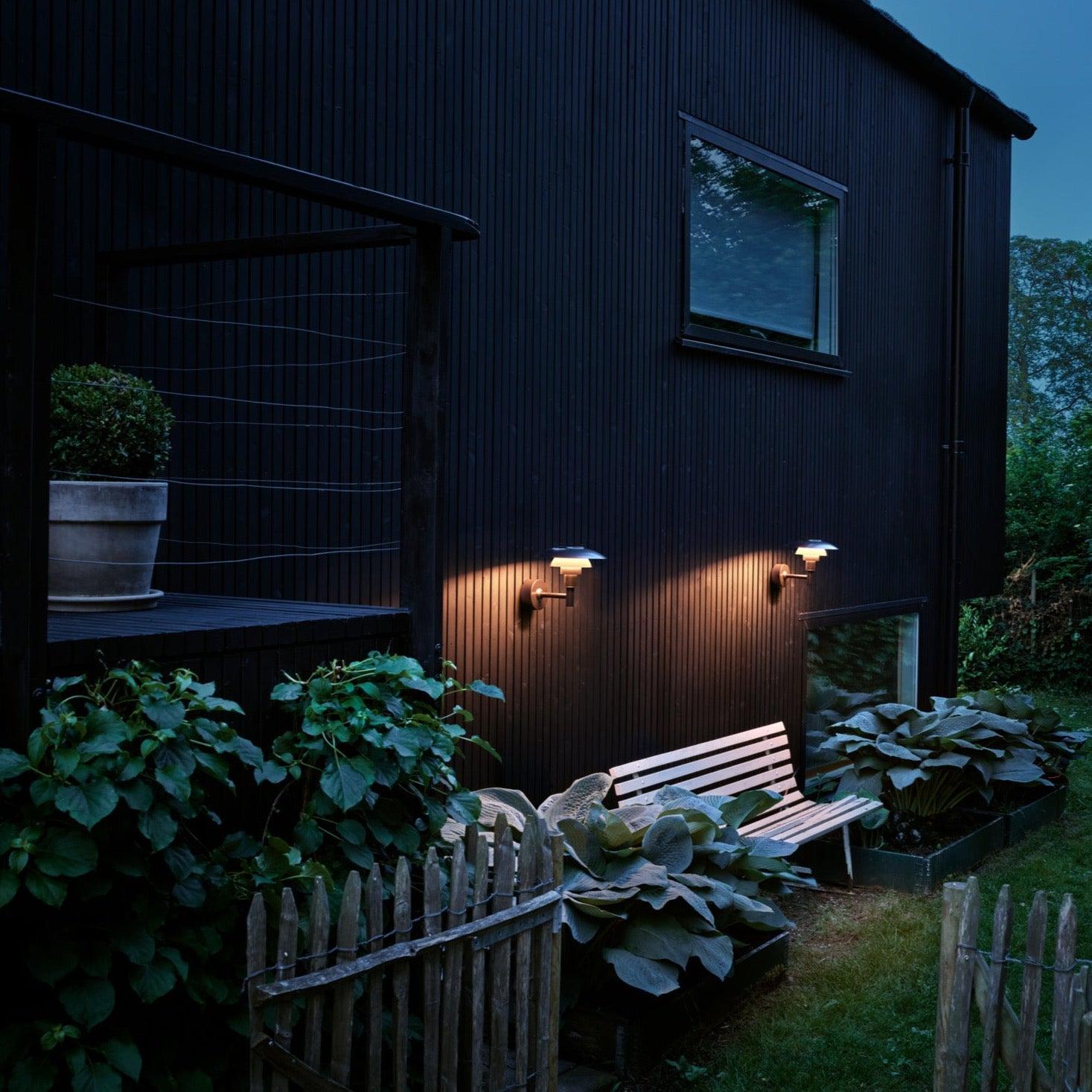 Le PH L'applique murale extérieure 3/2½ de Louis Poulsen est conçue selon le principe d'un système à trois abat-jour réfléchissants, qui dirige la lumière vers le bas. Les abat-jour, à l'intérieur peint en blanc mat, diffusent la lumière de façon agréable.
