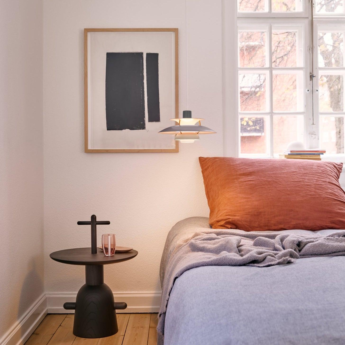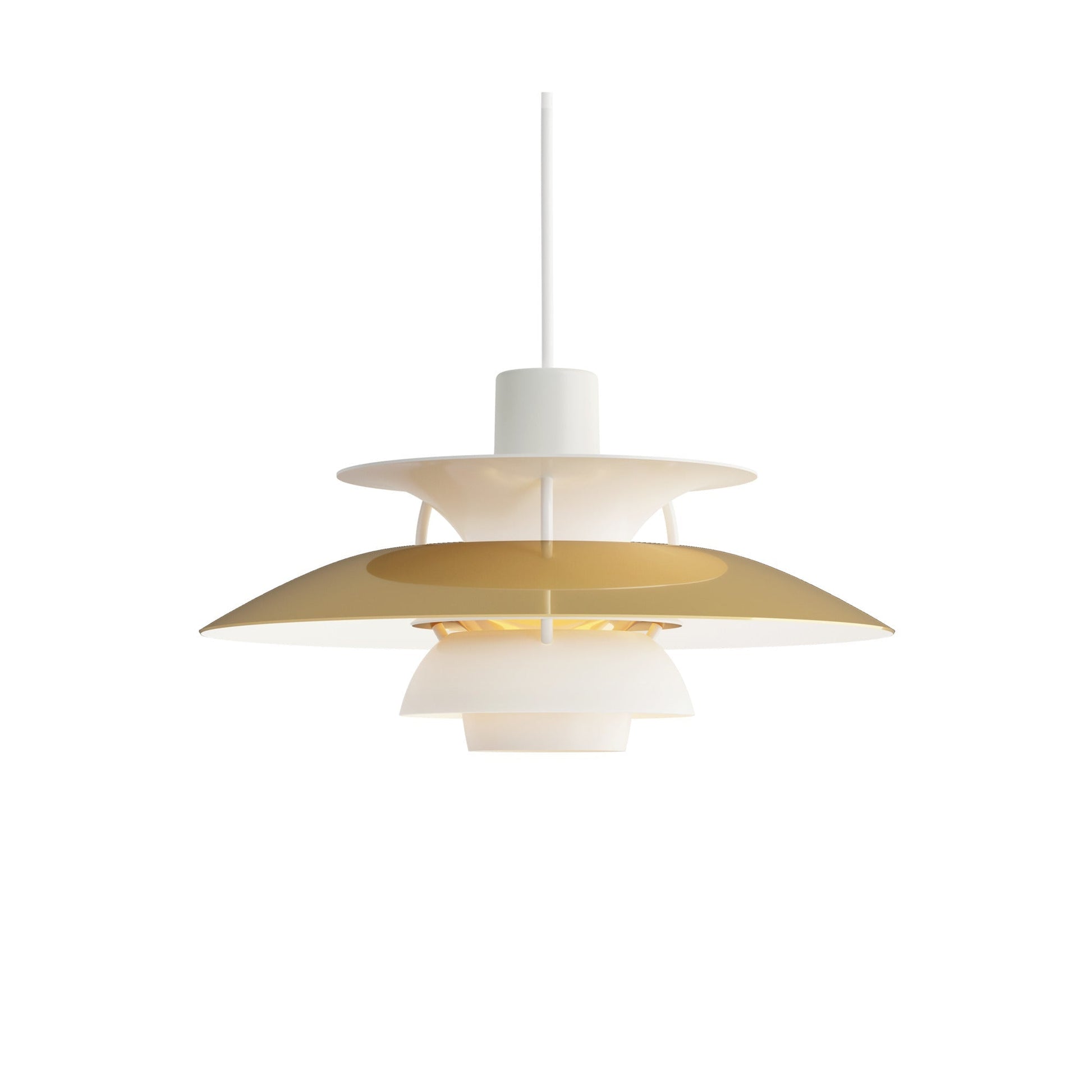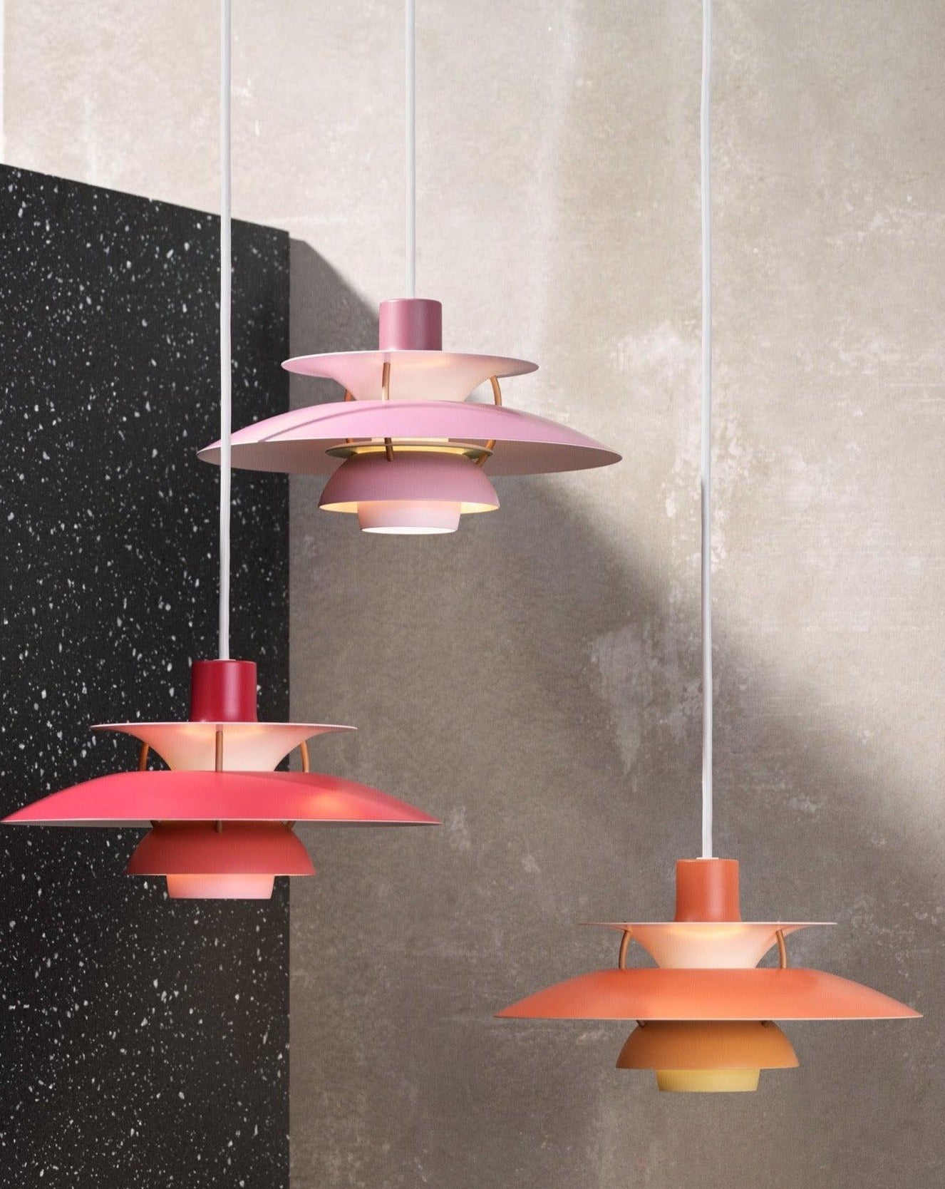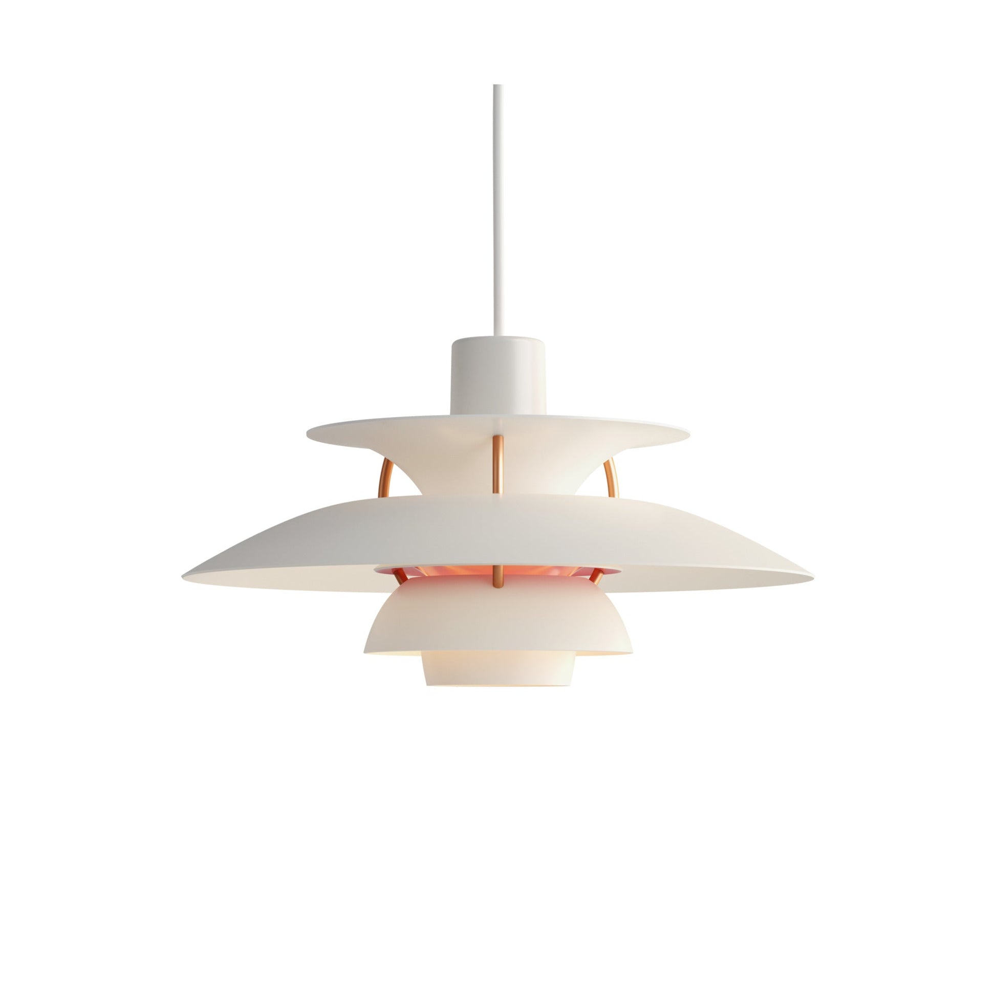 Poul Henningsen a conçu la suspension PH 5 en 1958, en réaction aux modifications constantes apportées par les fabricants à la forme et à la taille des ampoules à incandescence. Il l'a baptisée ainsi en référence au diamètre de son abat-jour principal, soit 50 cm. Aujourd'hui, la PH 5 continue d'embellir les intérieurs les plus modernes, tout comme la PH 5 Mini, lancée en 2017 dans le même esprit que la création de Poul Henningsen et dotée d'un abat-jour de 30 cm de diamètre.