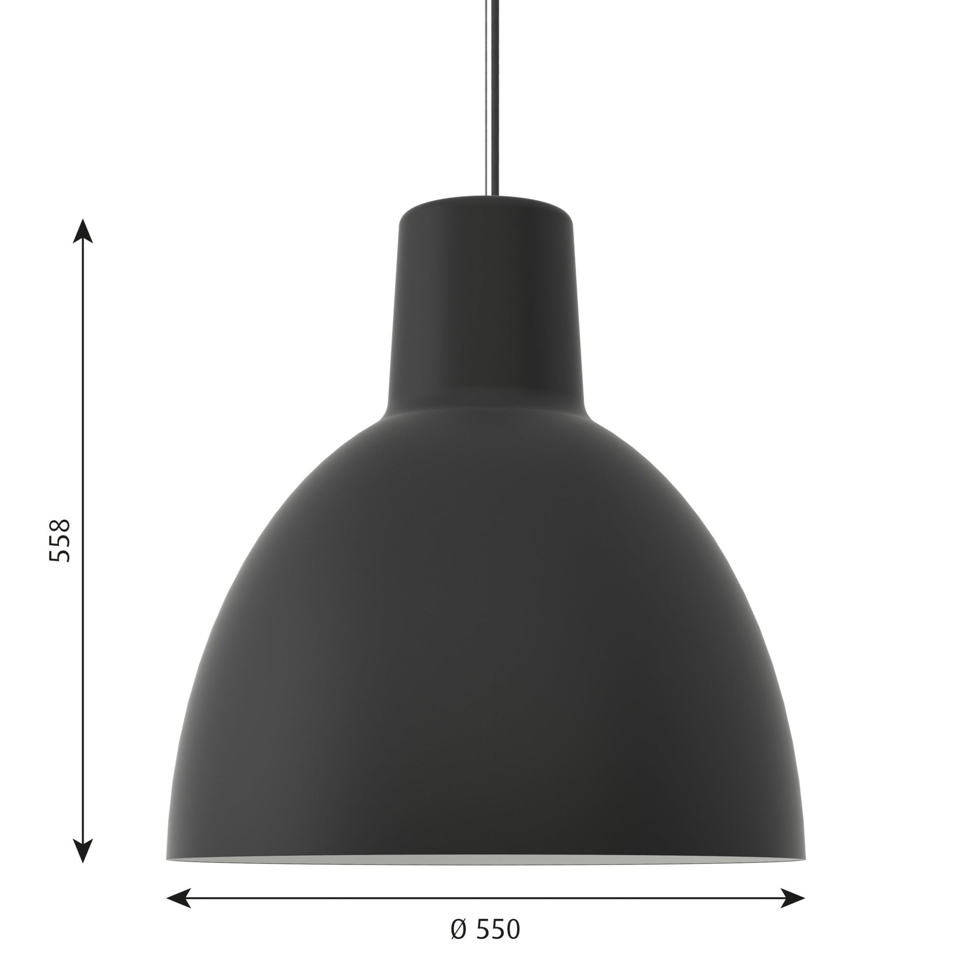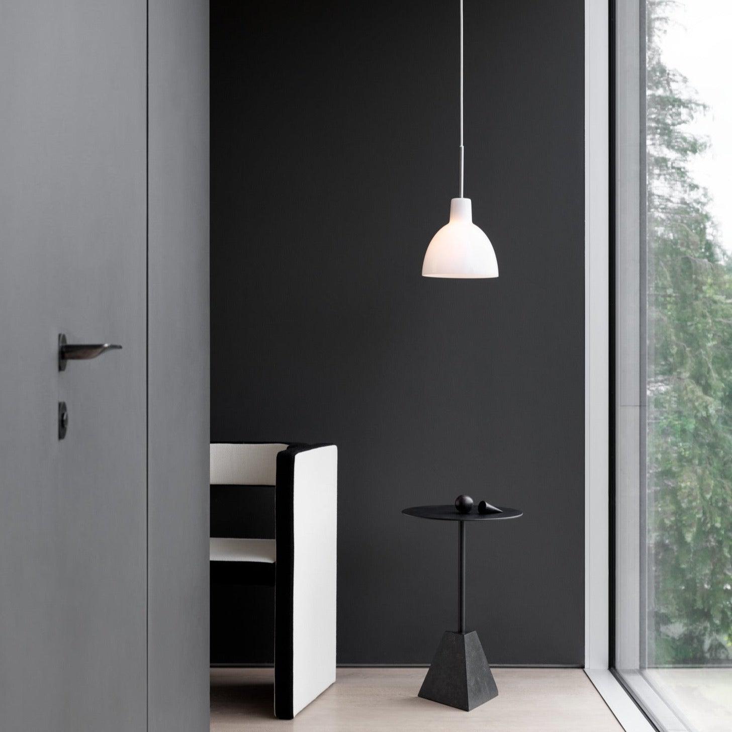 La suspension Toldbod de Louis Poulsen diffuse une lumière douce vers le bas. L'intérieur blanc mat de l'abat-jour elliptique contribue à assurer une répartition homogène de la lumière.