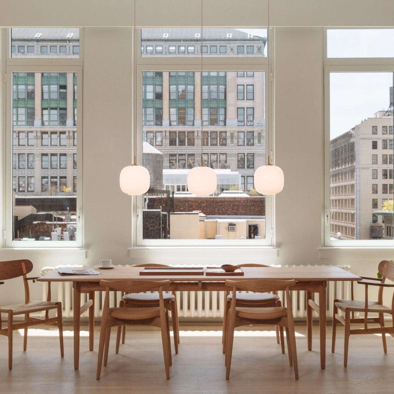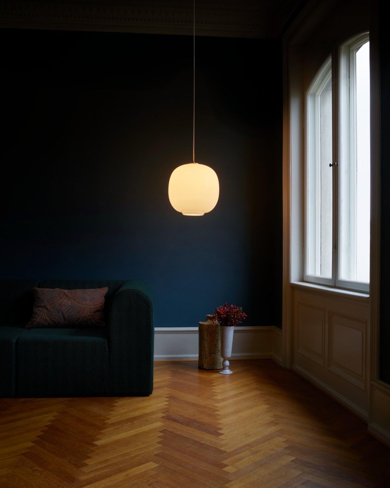 La suspension VL45 Radiohus de Louis Poulsen offre un éclairage uniforme, général et diffus. L'ouverture à la base du verre dirige la lumière vers le bas. La qualité du verre garantit un éclairage homogène.