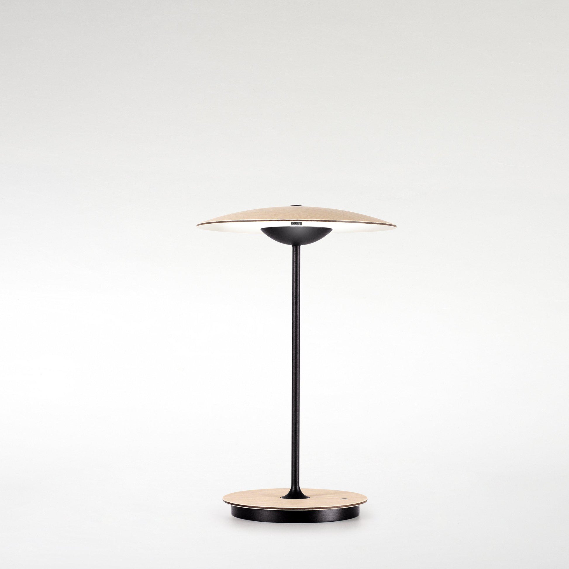 La lampe de table portable Ginger de Marset. Le bois est un allié précieux pour un éclairage chaleureux. Matériau difficile à travailler, la collection Ginger relève ce défi avec brio. L'assemblage de feuilles de bois, de papier et de résine, pressées à haute pression, crée un stratifié d'une planéité quasi parfaite, qui diffuse une lumière indirecte et discrète.