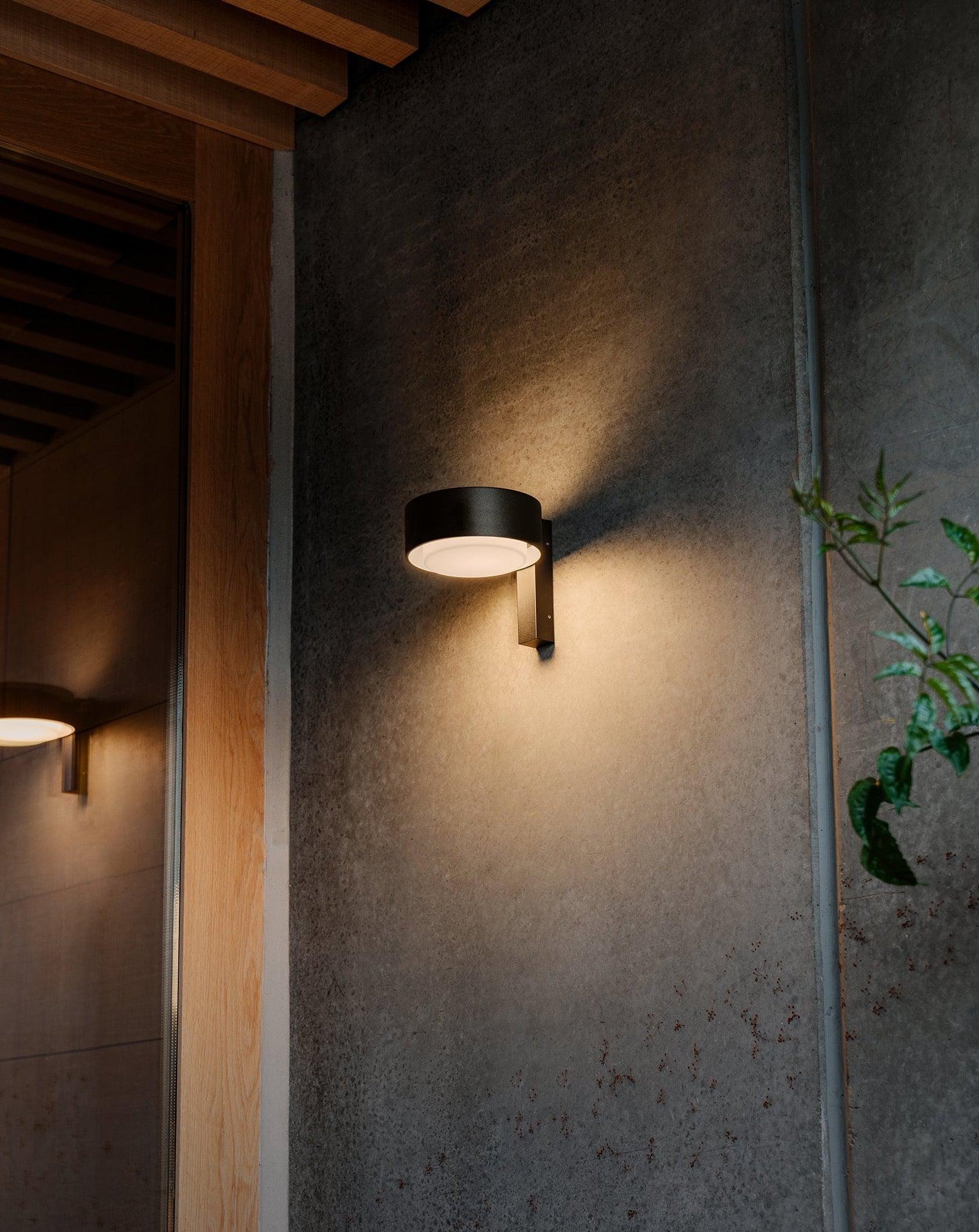 La collection Plaff-on! étend son influence aux espaces extérieurs et réinvente l'éclairage avec une version murale extérieure de 16 cm de diamètre, à orientation perpendiculaire. Diffusant principalement la lumière vers le bas, cette nouvelle version est idéale pour illuminer allées et terrasses, tandis qu'un halo lumineux se diffuse harmonieusement vers le haut. À l'instar des versions intérieures, le diffuseur en verre soufflé blanc semble flotter, détaché de l'anneau qui l'entoure. Plaff-on! incarne la simplicité et la fonctionnalité.