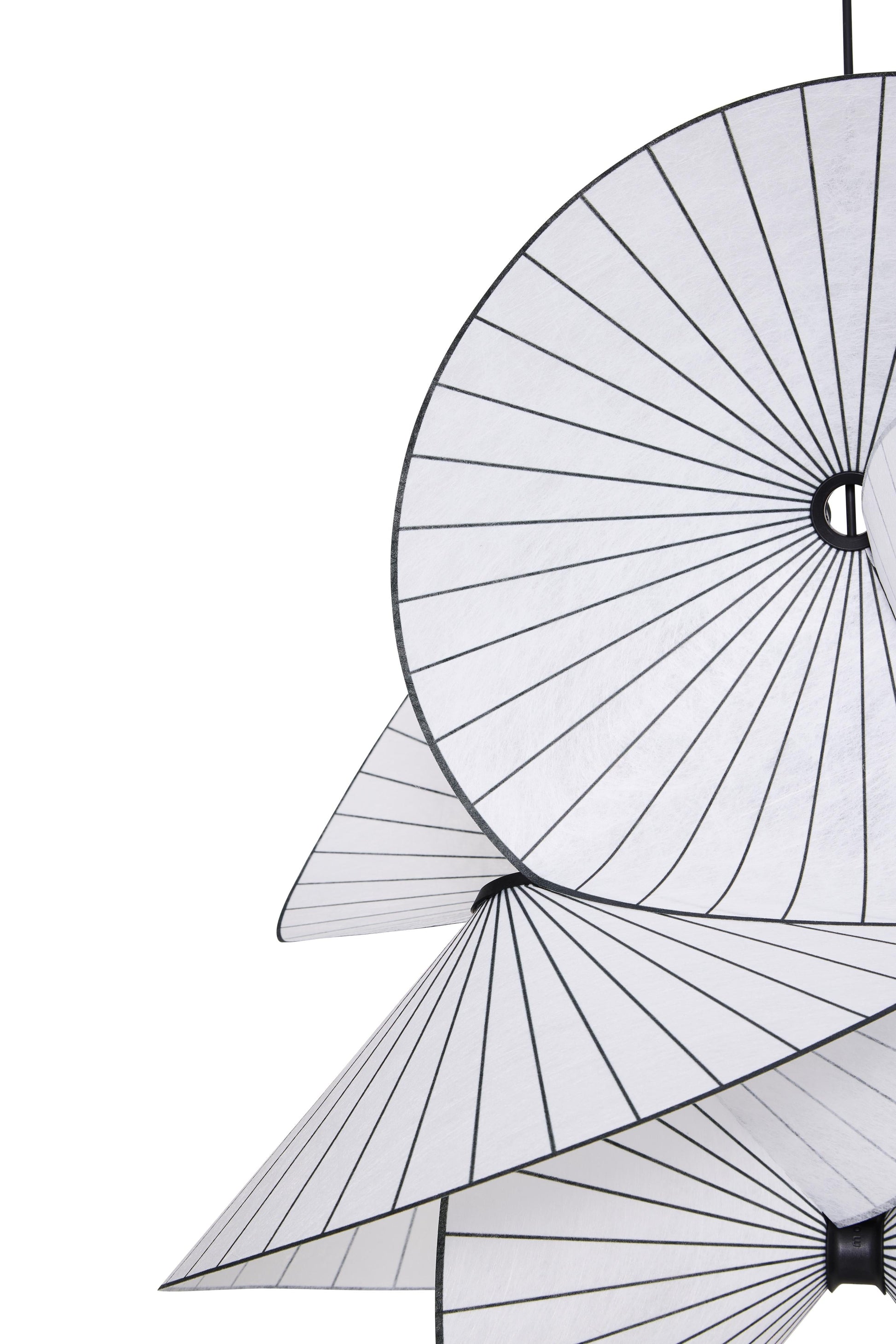 La Lumière Serpentine, par Moooi, Serpentine Light est une suspension aérienne aux formes complexes et sinueuses. Son design s'inspire du jeu avec une feuille de papier, explorant les limites des différentes formes que peut prendre le papier. Les lignes sombres créent l'illusion d'une spirale ascendante infinie. Le mouvement et la courbe de ce matériau presque translucide sont d'un naturel saisissant et diffusent la lumière de façon homogène. Son caractère affirmé et l'illusion de mouvement perpétuel en font la lampe idéale à suspendre au-dessus de votre table à manger, dans votre couloir ou au-dessus de votre bureau. La légèreté du matériau et le mouvement perpétuel confèrent à Serpentine Light une élégance intrigante. Également disponible en plus grand format (68 x 68 x 78 cm).