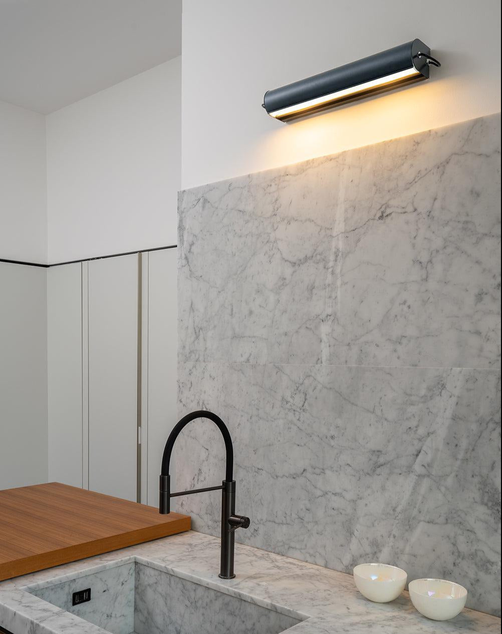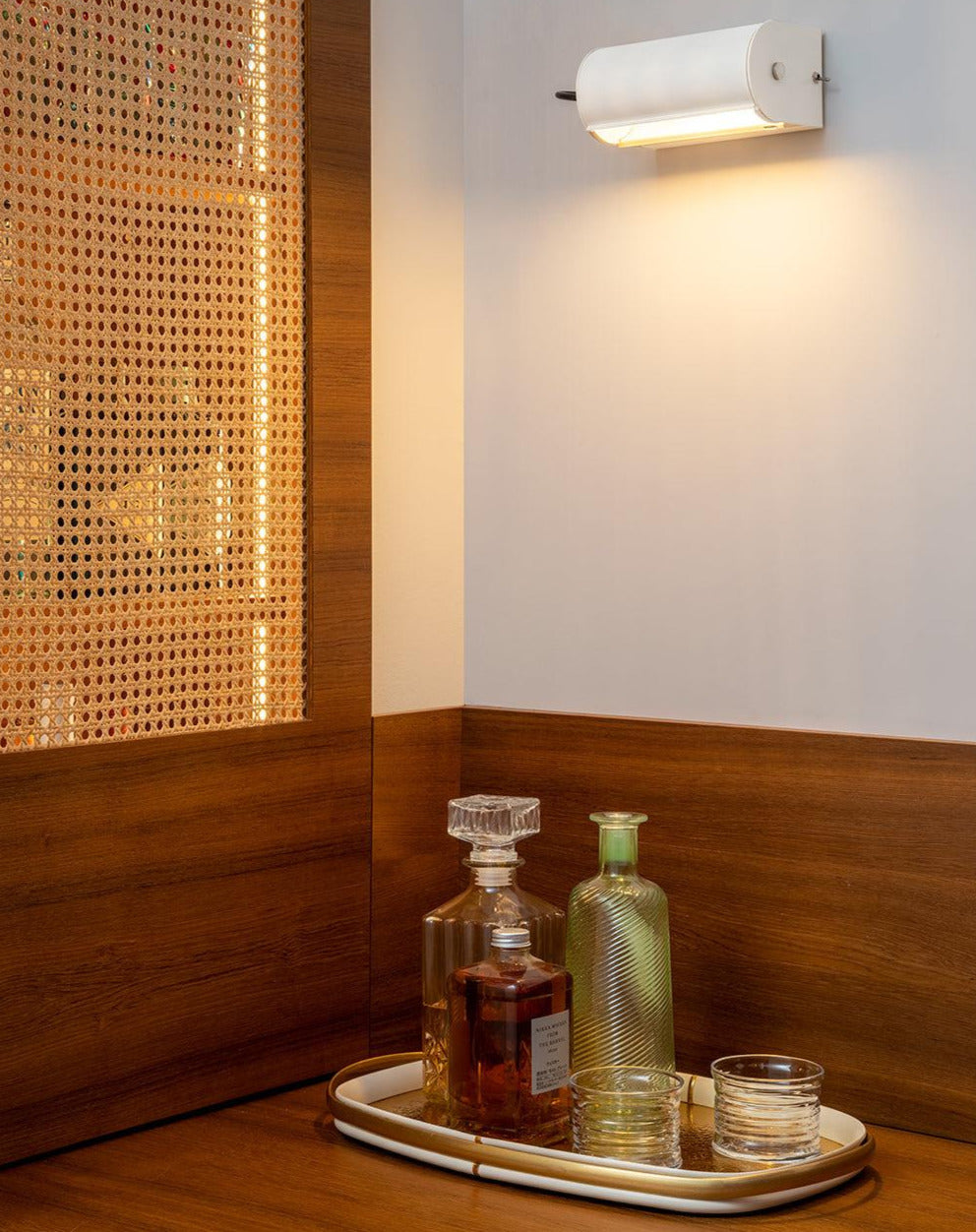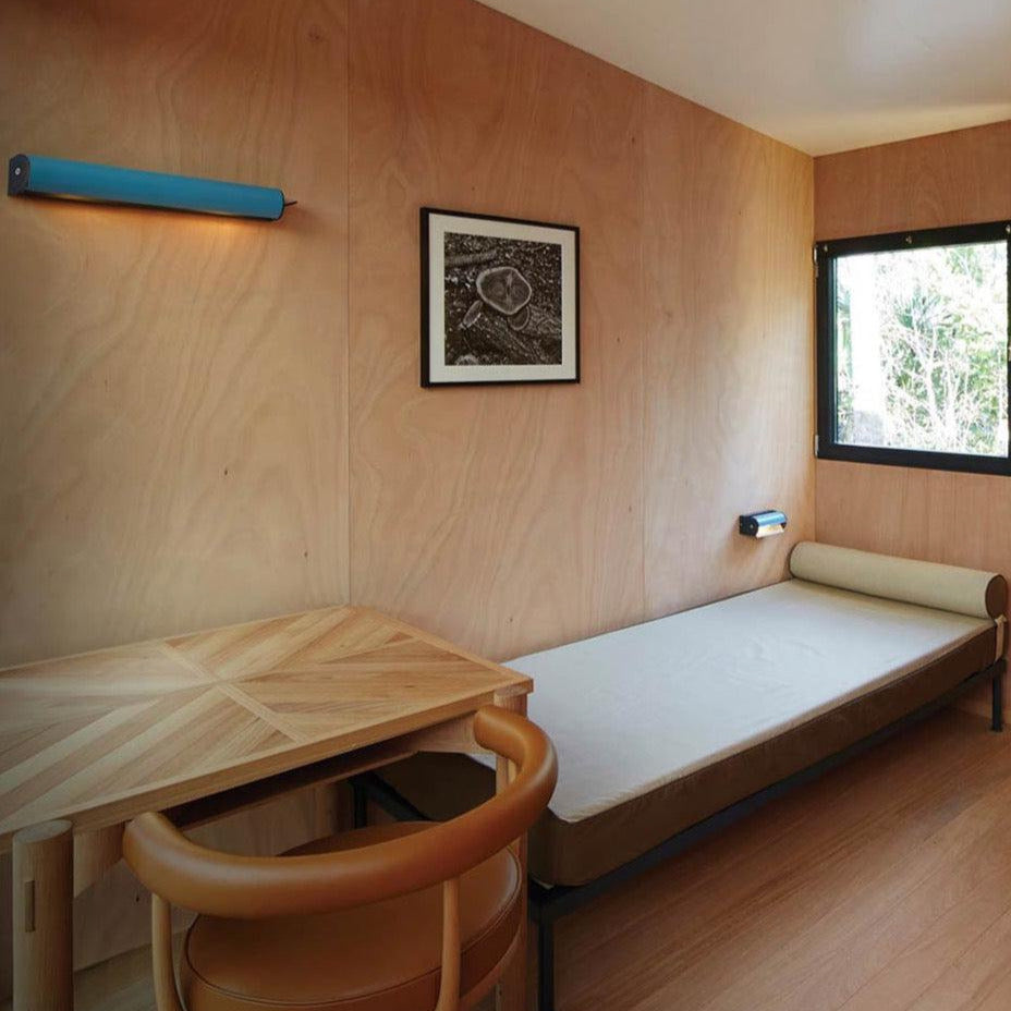 L'applique cylindrique de Nemo est une lampe murale LED dotée d'un abat-jour cylindrique. Charlotte Perriand l'a conçue au début des années 1930 pour son chalet de montagne, Le Vieux Matelot, à Saint-Nicolas-de-Véroce. Son intérêt pour les abat-jour pivotants reflète son observation des gestes humains : une simple pression permet d'orienter l'abat-jour et de contrôler le faisceau lumineux, offrant ainsi la possibilité d'en ajuster l'intensité et la direction. L'applique cylindrique se décline en deux versions, Longue et Petite, et en deux nouvelles finitions : gris anthracite et blanc délavé, en plus de l'emblématique métal peint en bleu clair.