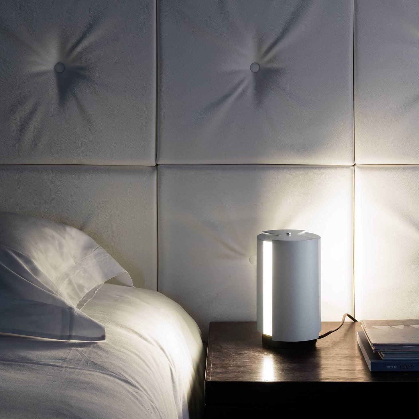 La Pivotante à Poser est une autre création emblématique de l'architecte et designer Charlotte Perriand. Un design novateur pour les années 50, mais toujours résolument contemporain. L'intensité lumineuse se module par l'ouverture ou la fermeture des volets. Son corps cylindrique s'ouvre sur deux côtés, où pivotent deux diffuseurs permettant de moduler le faisceau lumineux et d'orienter la lumière de façon directe ou indirecte. Socle en acier peint en gris mat, corps en tôle d'acier laminée peinte en blanc, jaune, bleu, bleu pastel, rouge carmin, vert sauge et gris clair.