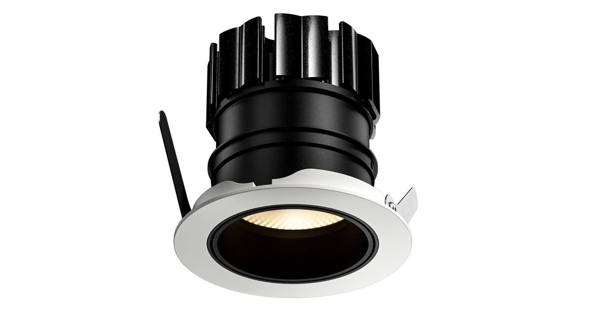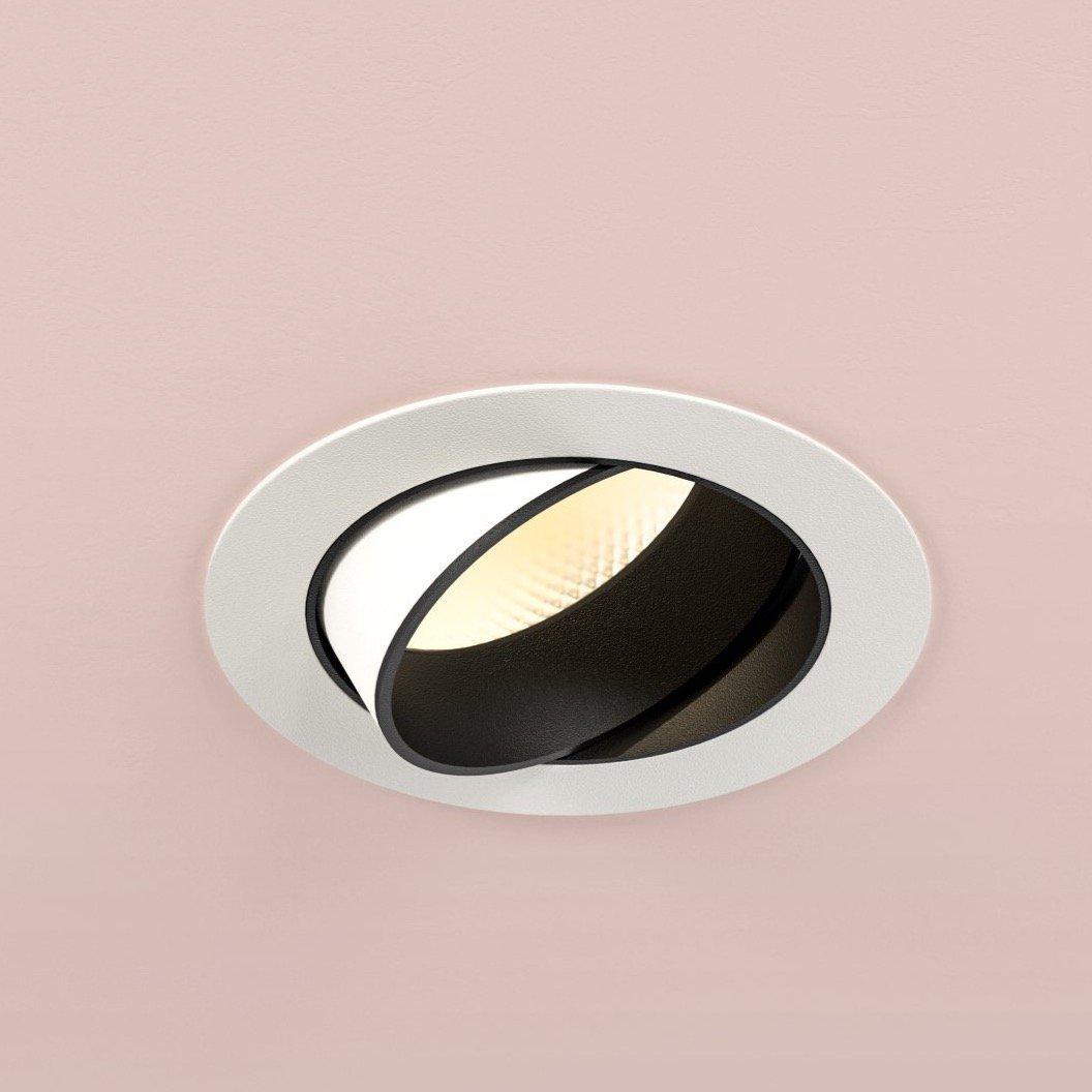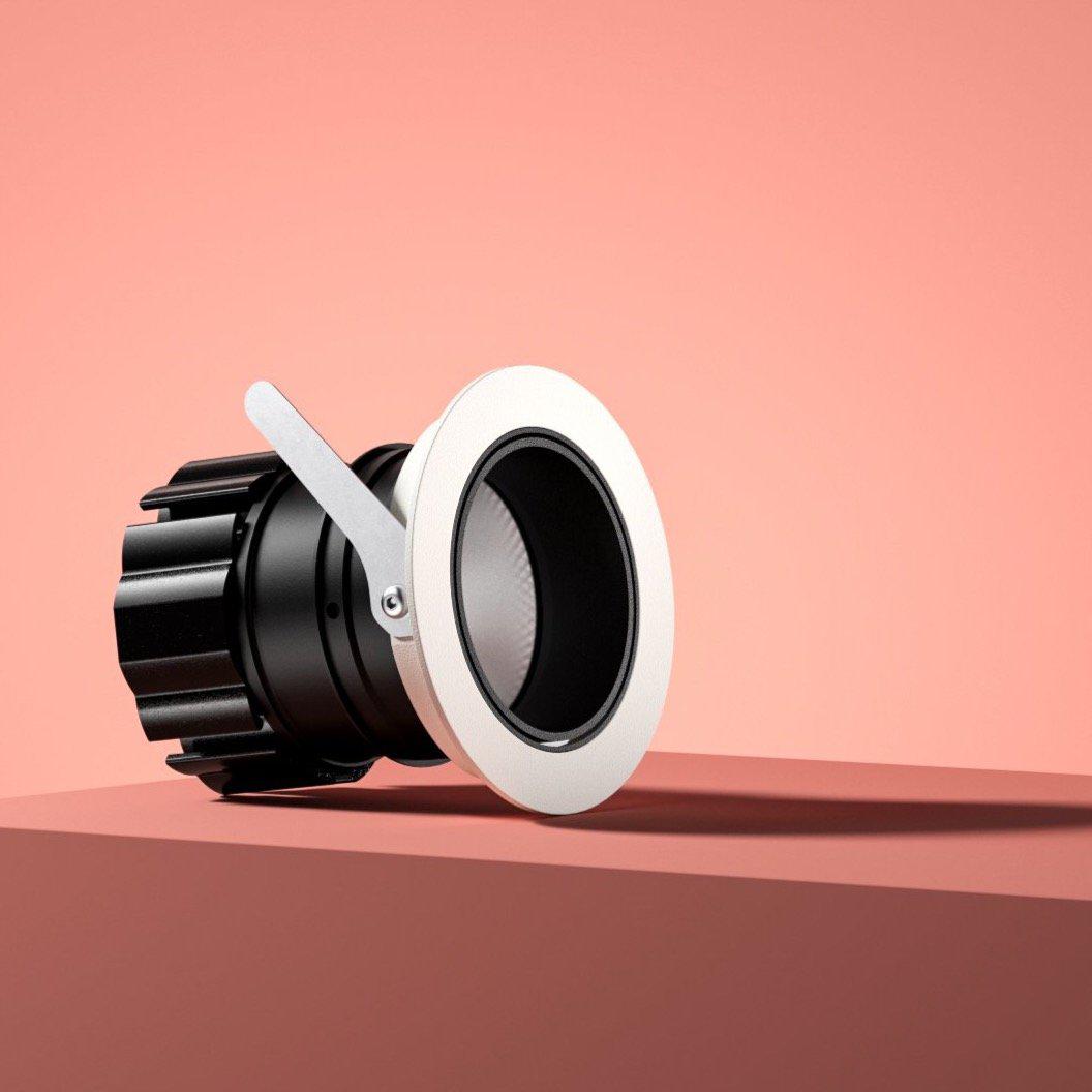 Le luminaire encastré Dino d'Orluna est un modèle contemporain à éclairage indirect doté d'un double déflecteur qui minimise l'éblouissement, même incliné ou pivoté. Son large diamètre d'ouverture assure un éclairage plus intense. Avec son cadre ultra-fin, il constitue un choix idéal pour l'éclairage général.