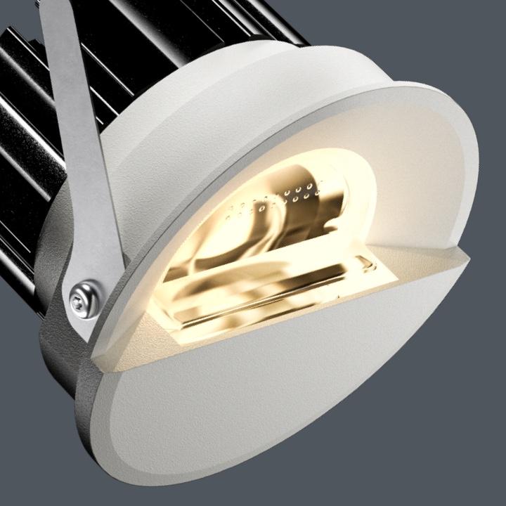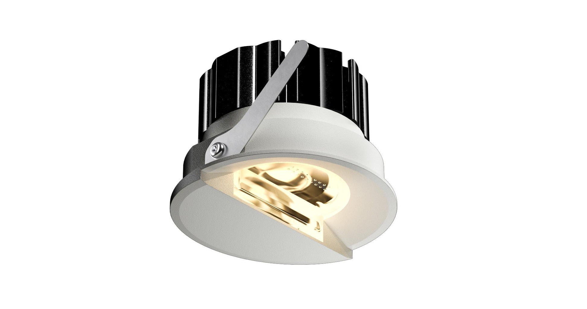 Le luminaire encastré Dino d'Orluna est un modèle contemporain à éclairage indirect doté d'un double déflecteur qui minimise l'éblouissement, même incliné ou pivoté. Son large diamètre d'ouverture assure un éclairage plus intense. Avec son cadre ultra-fin, il constitue un choix idéal pour l'éclairage général.