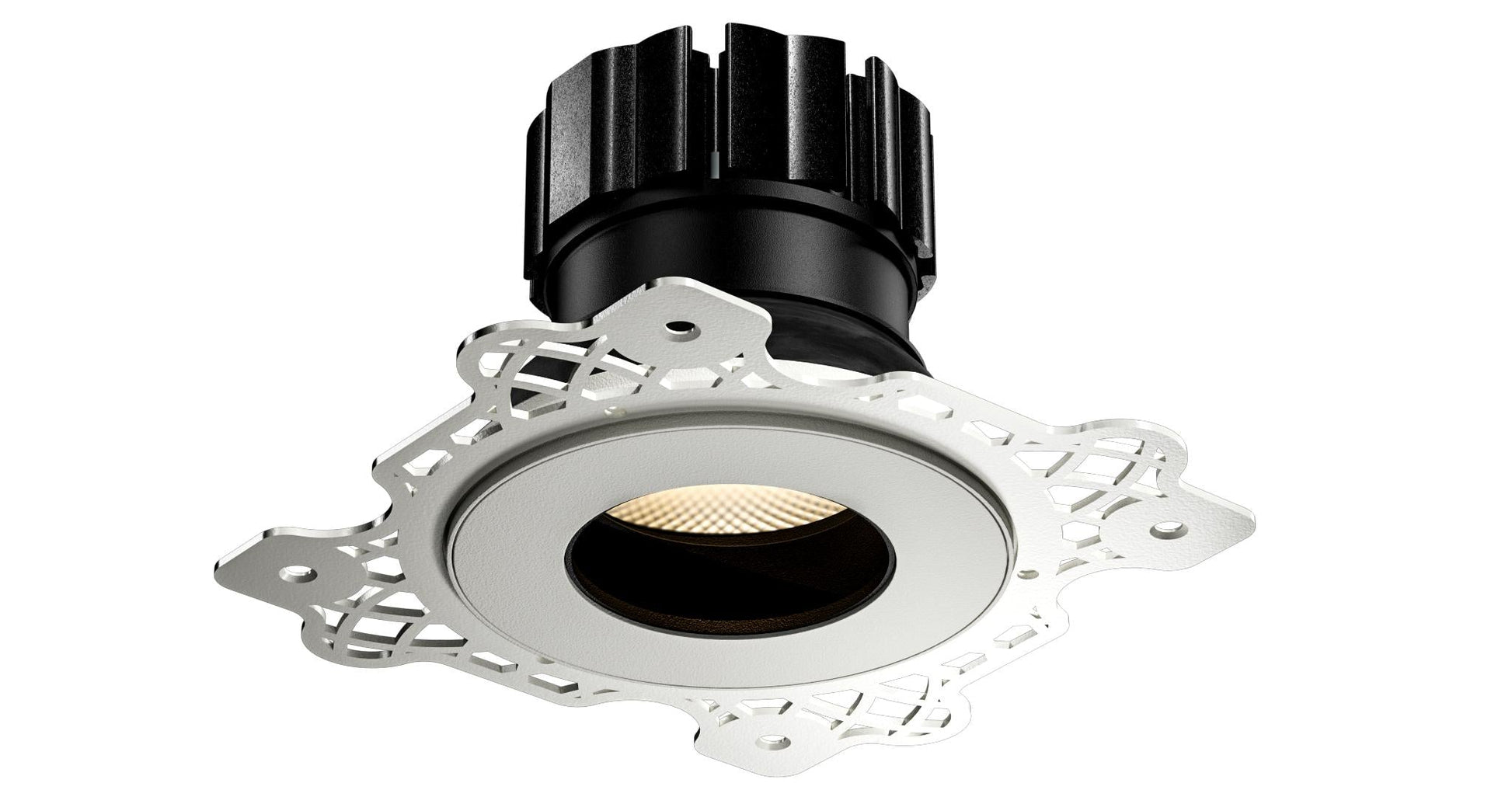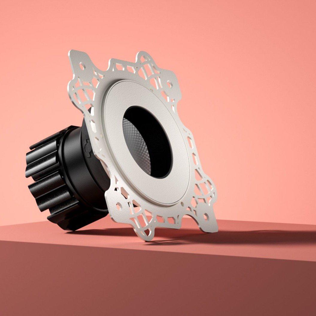 Le Vrai, par Orluna, Ce luminaire est idéal pour les plafonds aux finitions impeccables et les fixations discrètes. Encastré dans le plâtre, son entourage peut être retiré et peint à la main dans la même teinte que le plafond – inutile d'attendre une finition RAL personnalisée. Grâce à son inclinaison à l'intérieur du luminaire, le spot encastré à faible éblouissement ne dépasse pas du plafond.