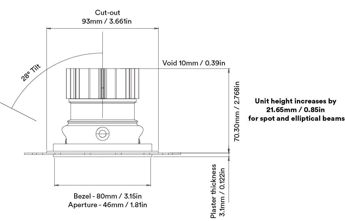 Atténuation: Variateur secteur à coupure de phase (compatible avec les installations électriques britanniques standard). Options 0-10 V et DALI disponibles sur demande (câblage spécialisé requis. Contactez-nous pour plus d'informations).