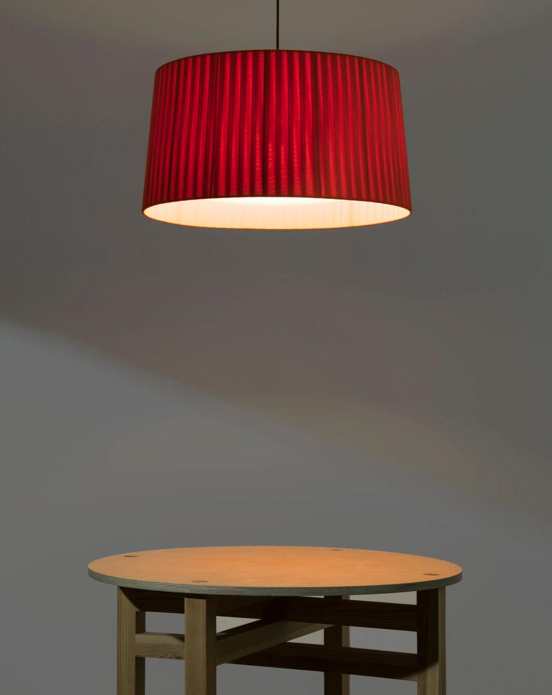 Conçue pour les espaces de taille moyenne et les pièces à vivre, la suspension GT5 de Santa & Cole, avec son abat-jour en ruban, confère à la pièce une personnalité unique. Santa & Cole encourage l'utilisation d'abat-jour en ruban pour sublimer tous types de luminaires, en explorant différentes matières et en jouant avec les couleurs et les nuances.