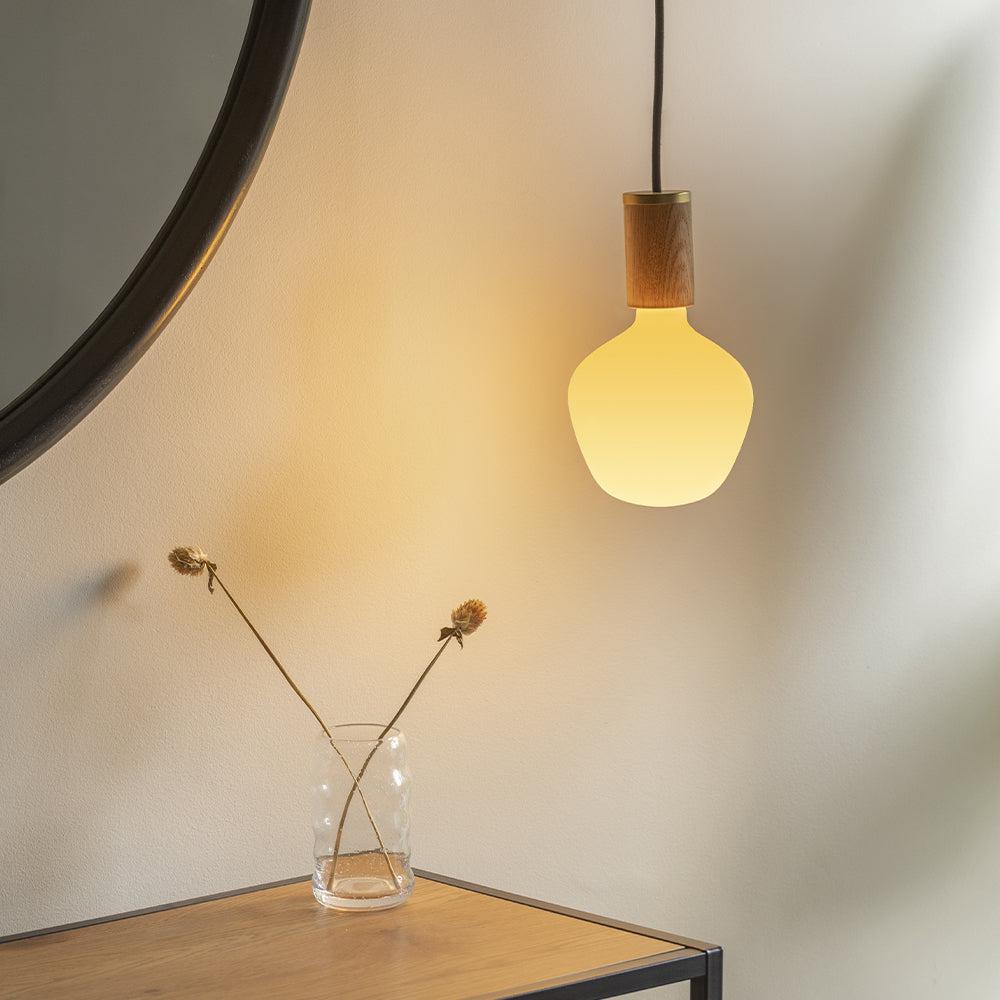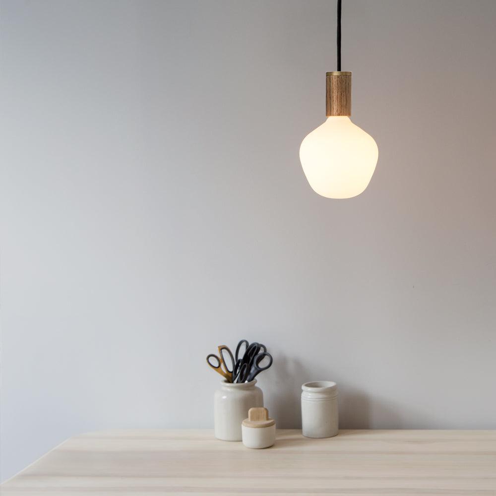 La suspension Enno de Tala associe la forme robuste et définie de l'ampoule Enno à la suspension minimaliste Tala en laiton, graphite, chêne ou noyer, créant ainsi un luminaire prêt à l'emploi pour tout espace intérieur.