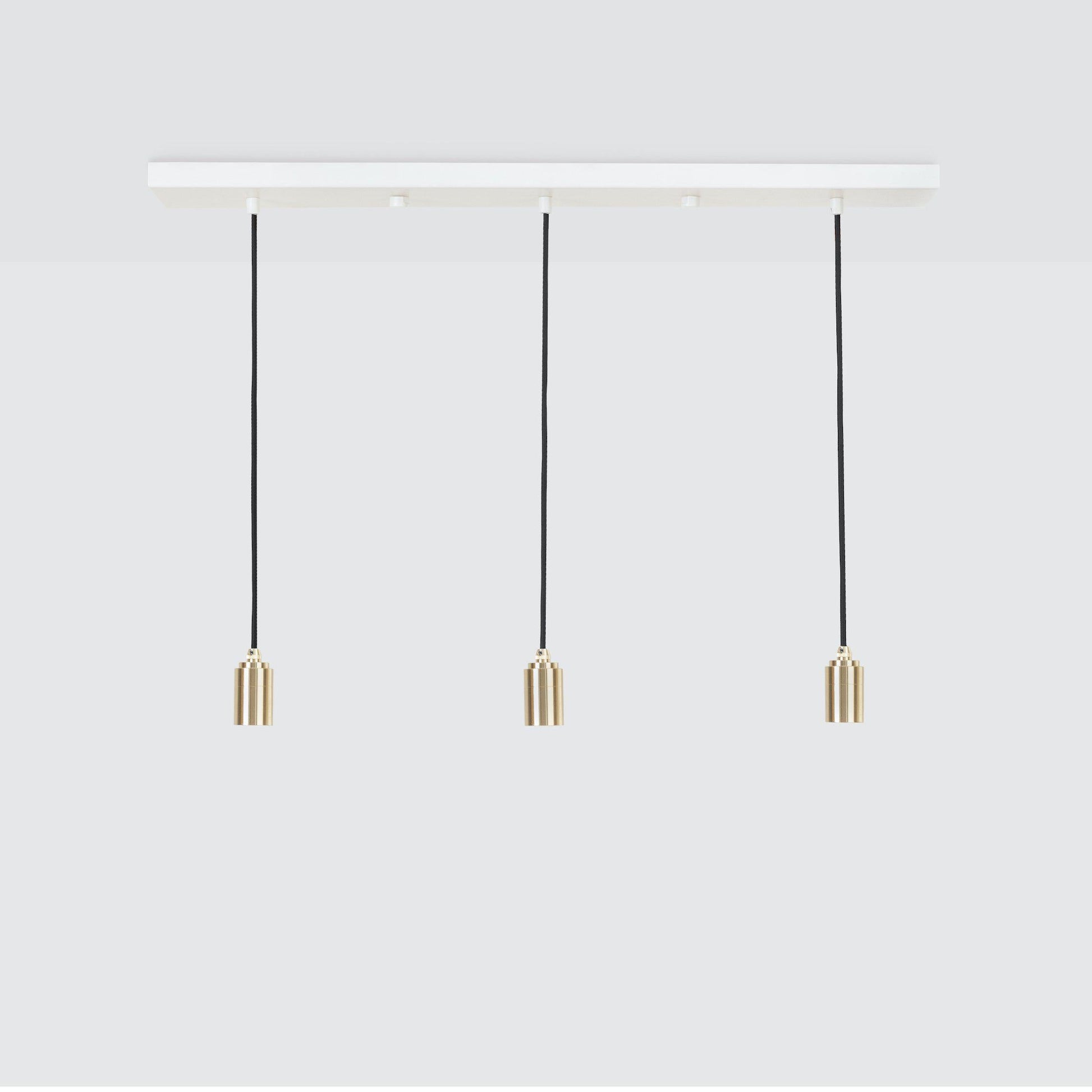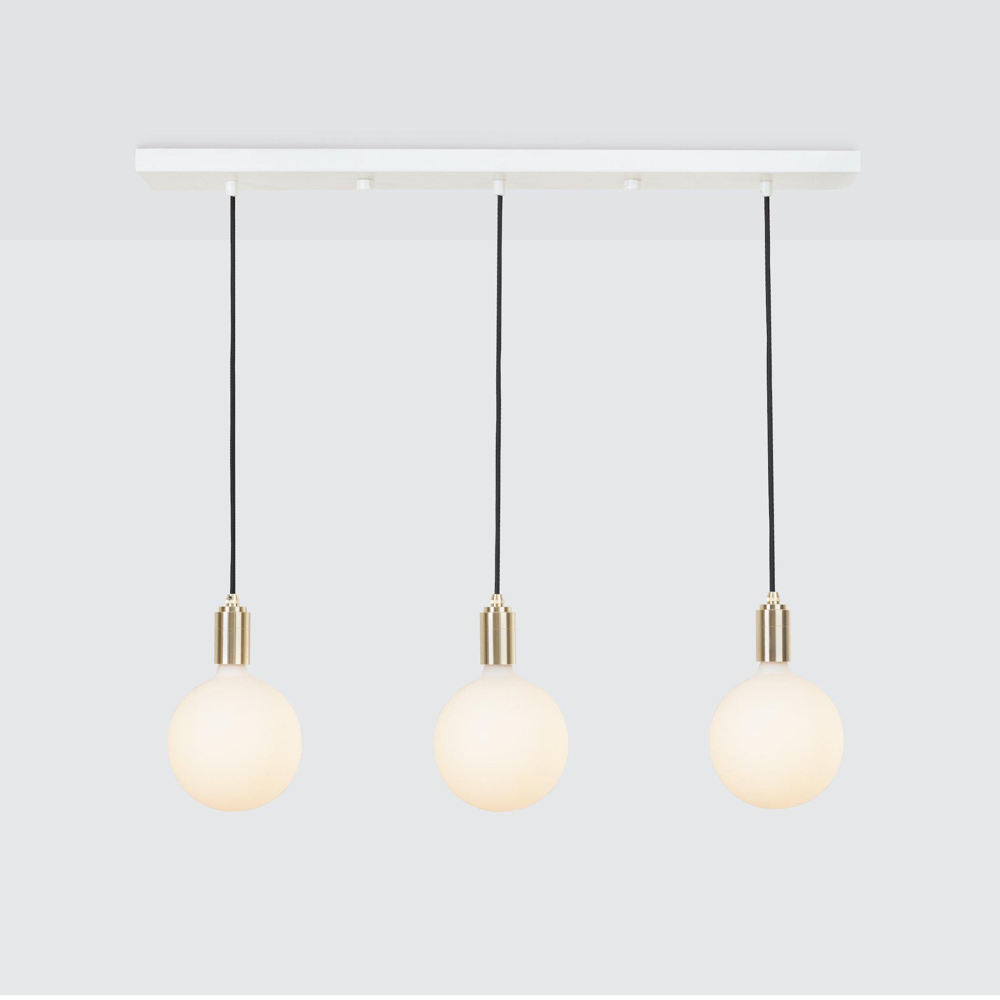 La suspension Linear Triple de Tala associe un pavillon de plafond linéaire élégant et robuste à trois suspensions en laiton emblématiques.