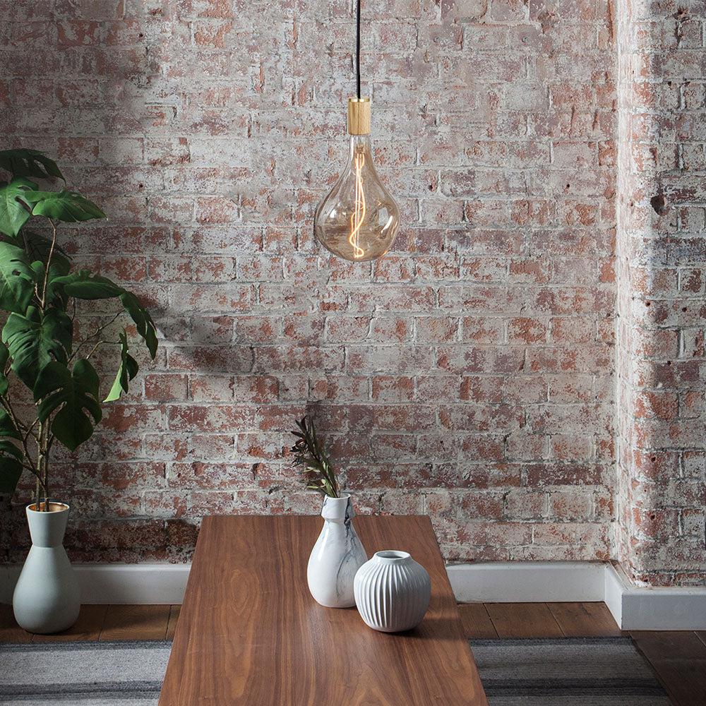 Ce luminaire suspendu unique associe l'ampoule sculpturale la plus populaire de Tala à une suspension en laiton, graphite, chêne ou noyer, pour créer un luminaire remarquable.