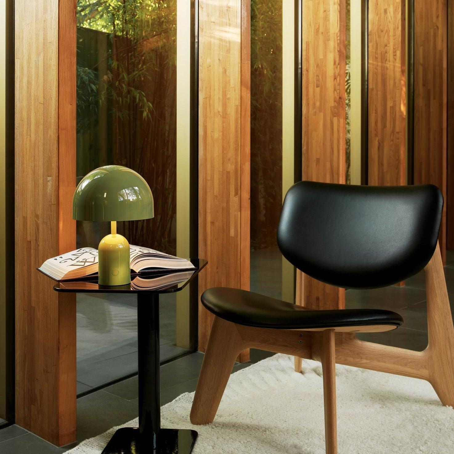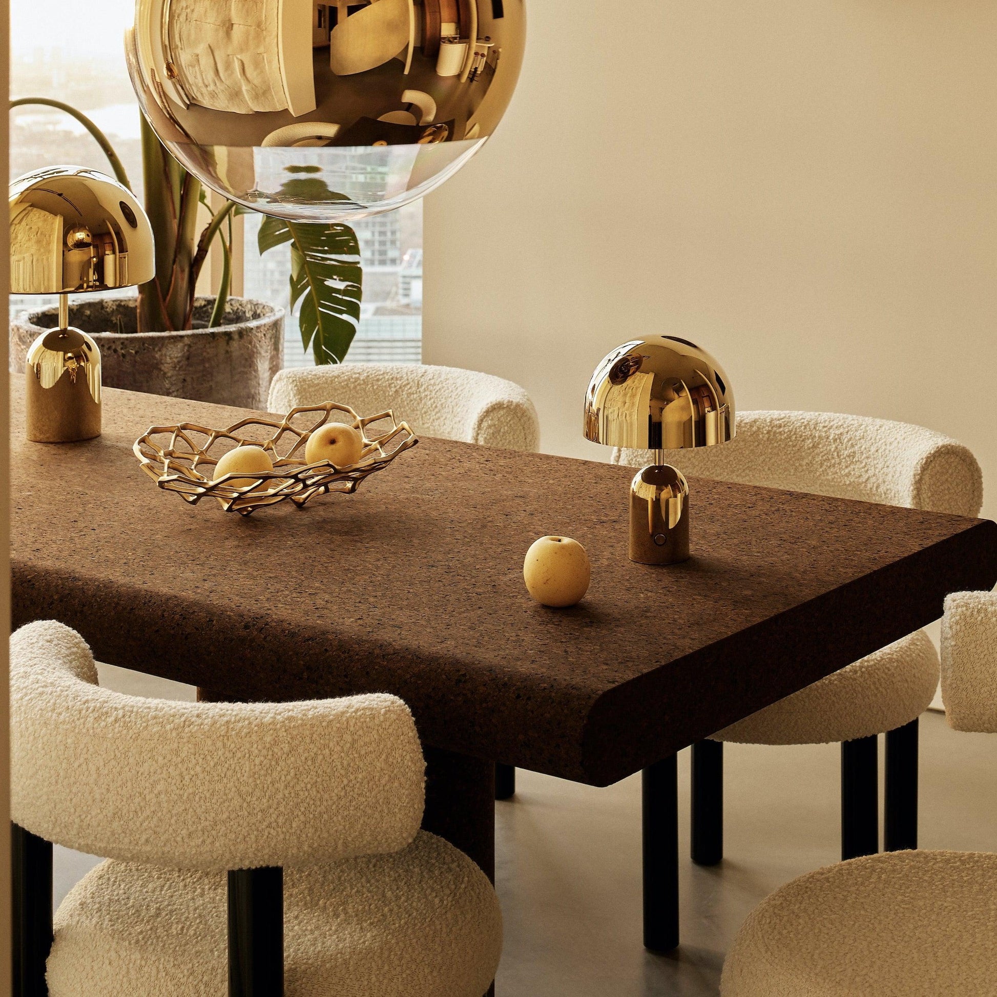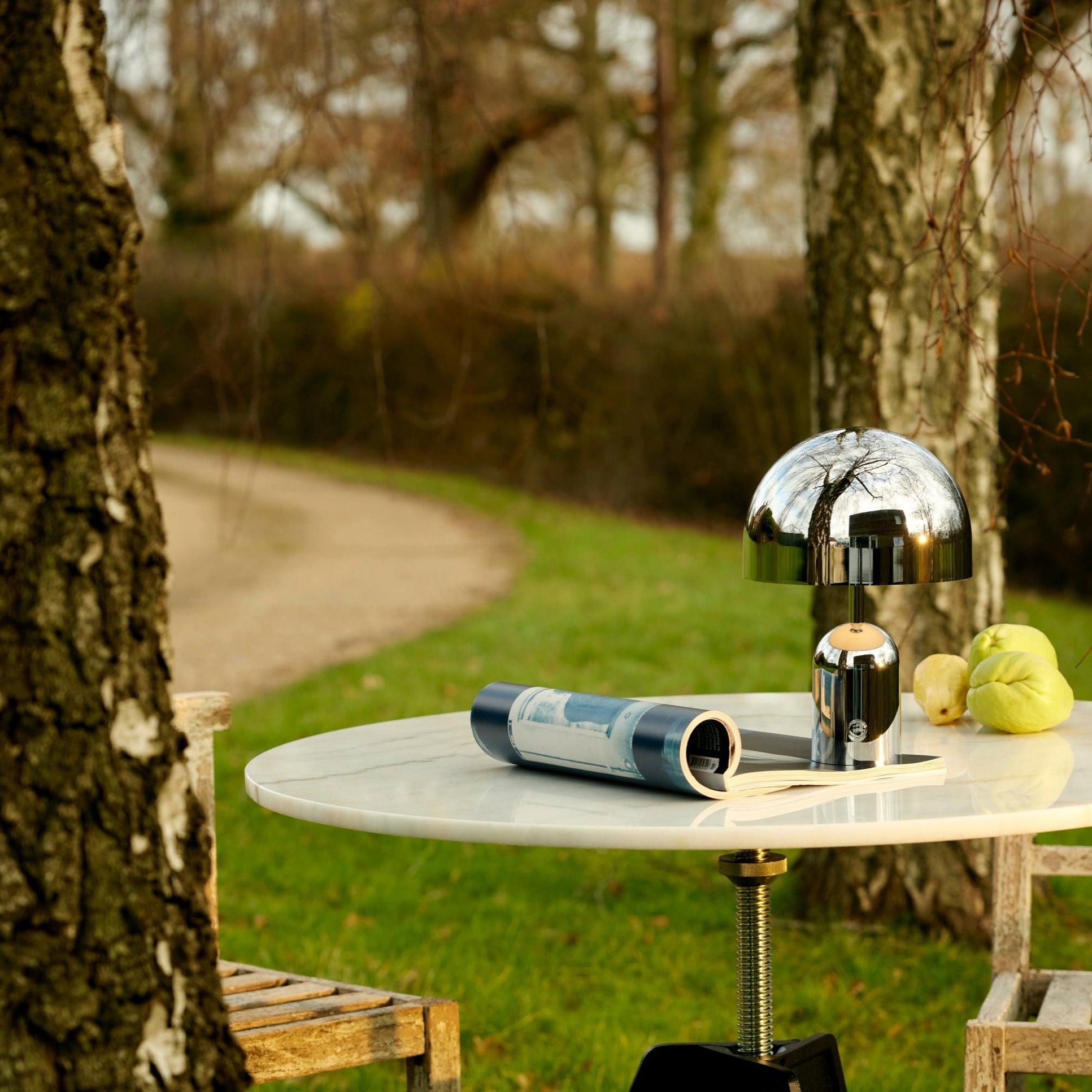 La lampe de table portable Bell, conçue par Tom Dixon, est un exemple de minimalisme. Bell est un dôme suspendu au-dessus d'un autre dôme en acier pressé plaqué. D'une conception très sophistiquée, elle ne présente aucune fixation apparente et arbore un design minimaliste. La lampe Bell Portable est équipée d'une batterie rechargeable offrant une autonomie d'environ 6 à 9 heures. Son diffuseur dissimulé produit une lumière d'ambiance douce, réglable par un variateur tactile à 3 niveaux. Conçue pour une utilisation en intérieur, elle est conforme à la norme IP44.