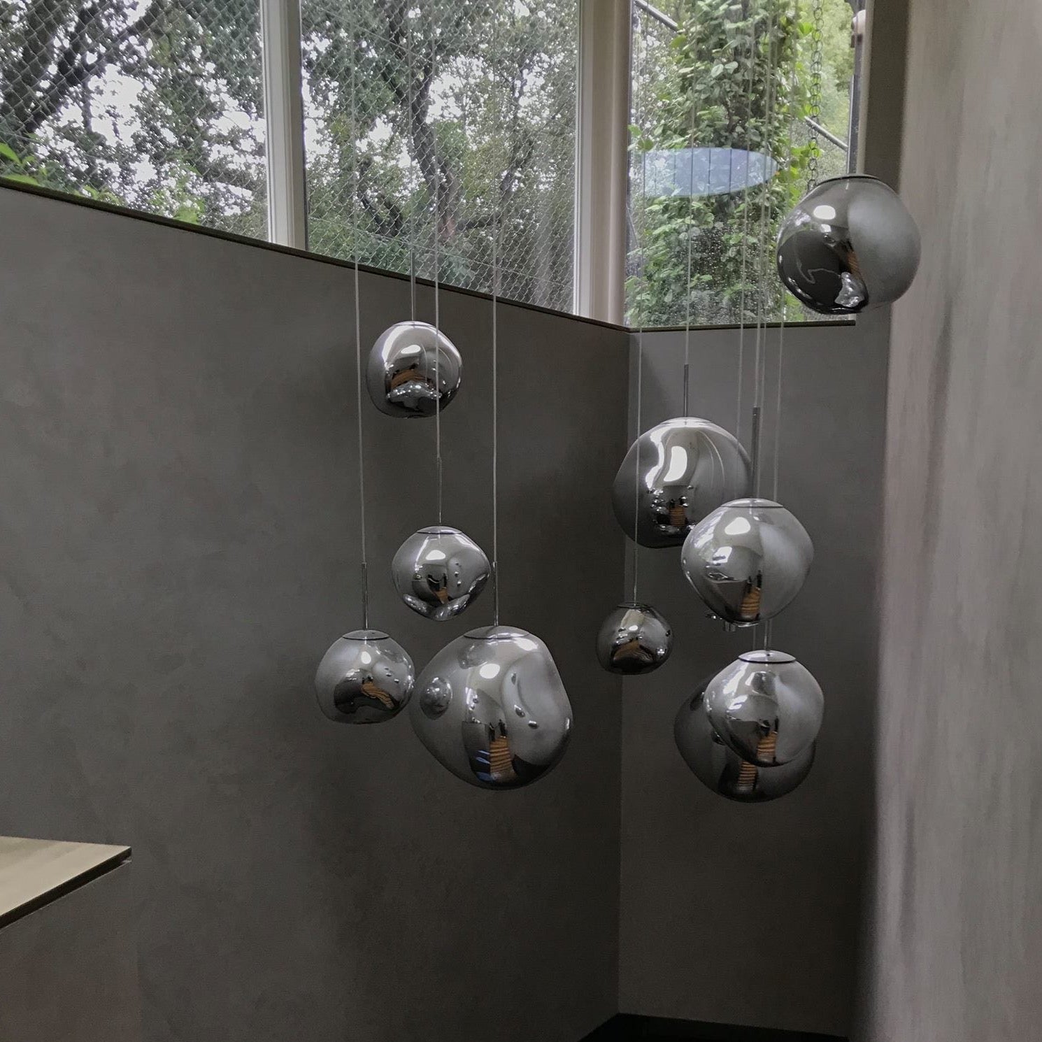 La suspension LED Melt de Tom Dixon est une suspension magnifiquement déformée avec une finition miroir moderne qui crée un effet hypnotisant de verre soufflé à chaud en fusion lorsqu'elle est allumée.