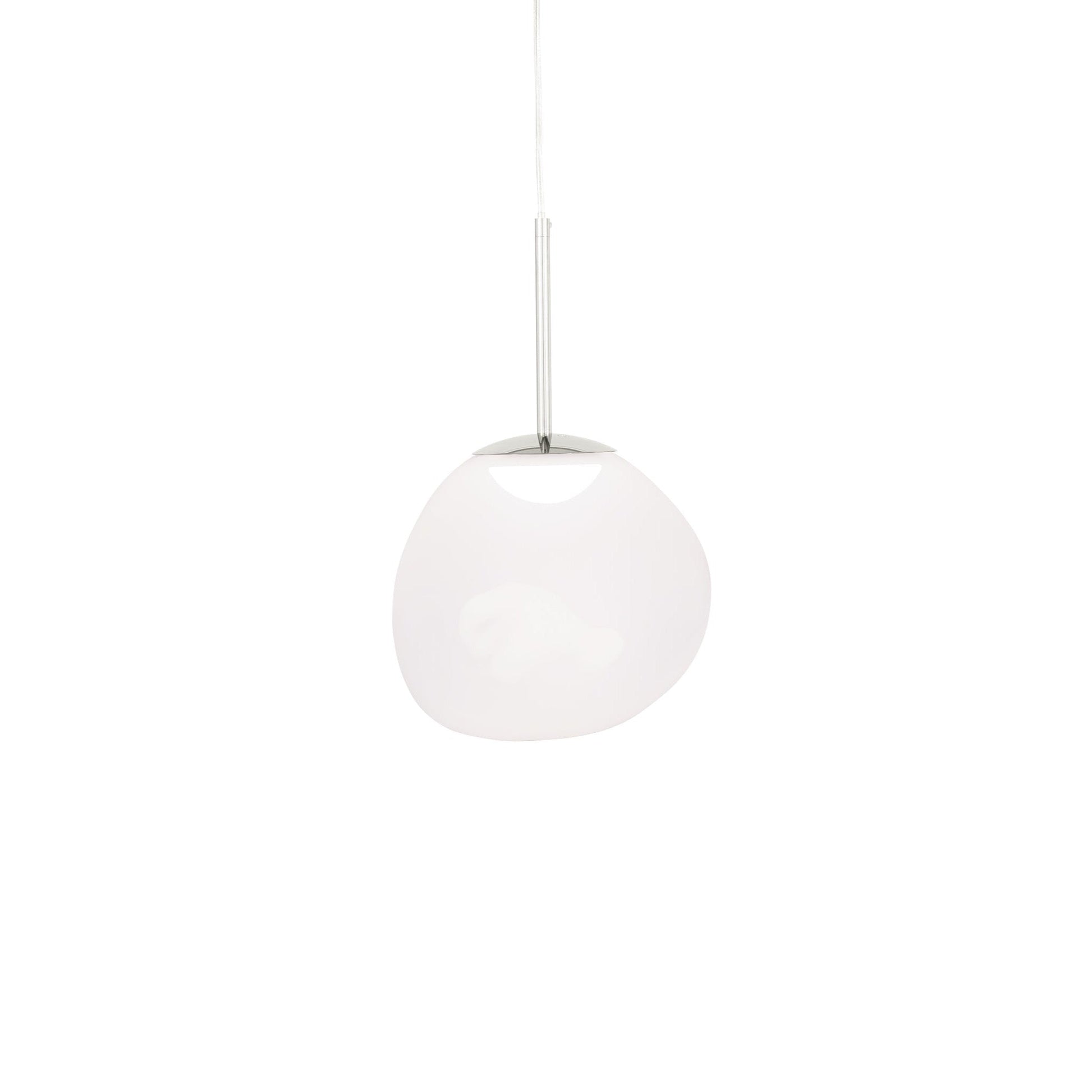 La suspension Melt Opal est équipée d'un éclairage standard (3000 K) qui imite la lumière du jour. L'abat-jour Opal est disponible sur tous les modèles Melt, avec des fixations argentées ou dorées. Les abat-jour Melt sont interchangeables et compatibles avec toutes les suspensions, lustres et lampes de table/sur pied.