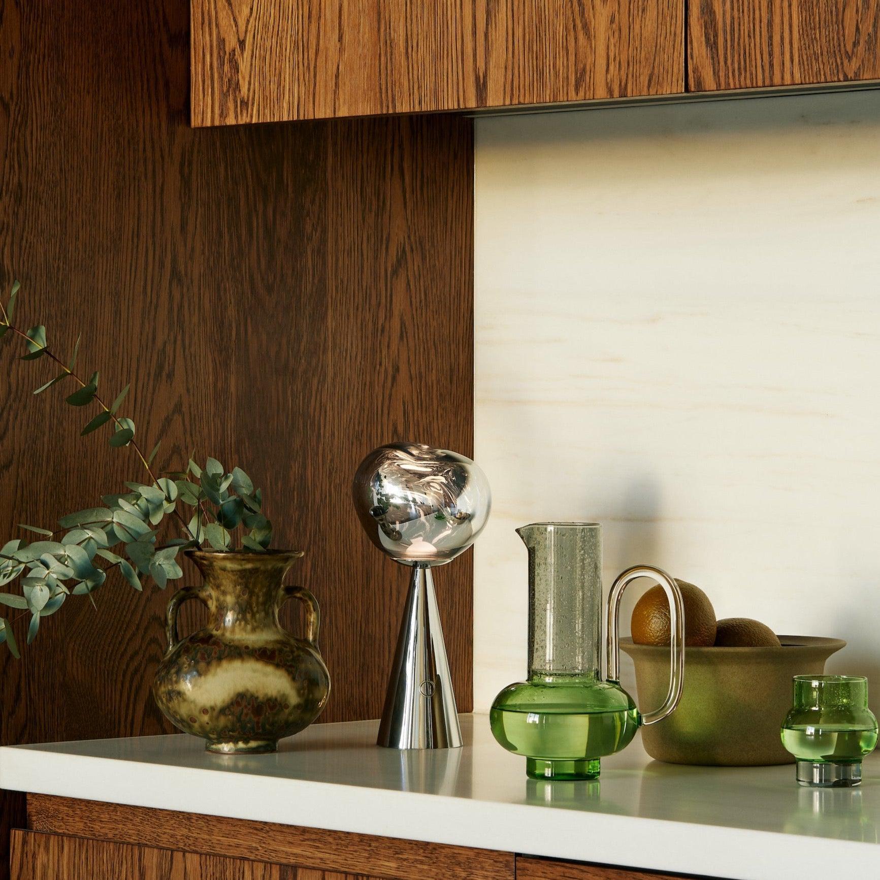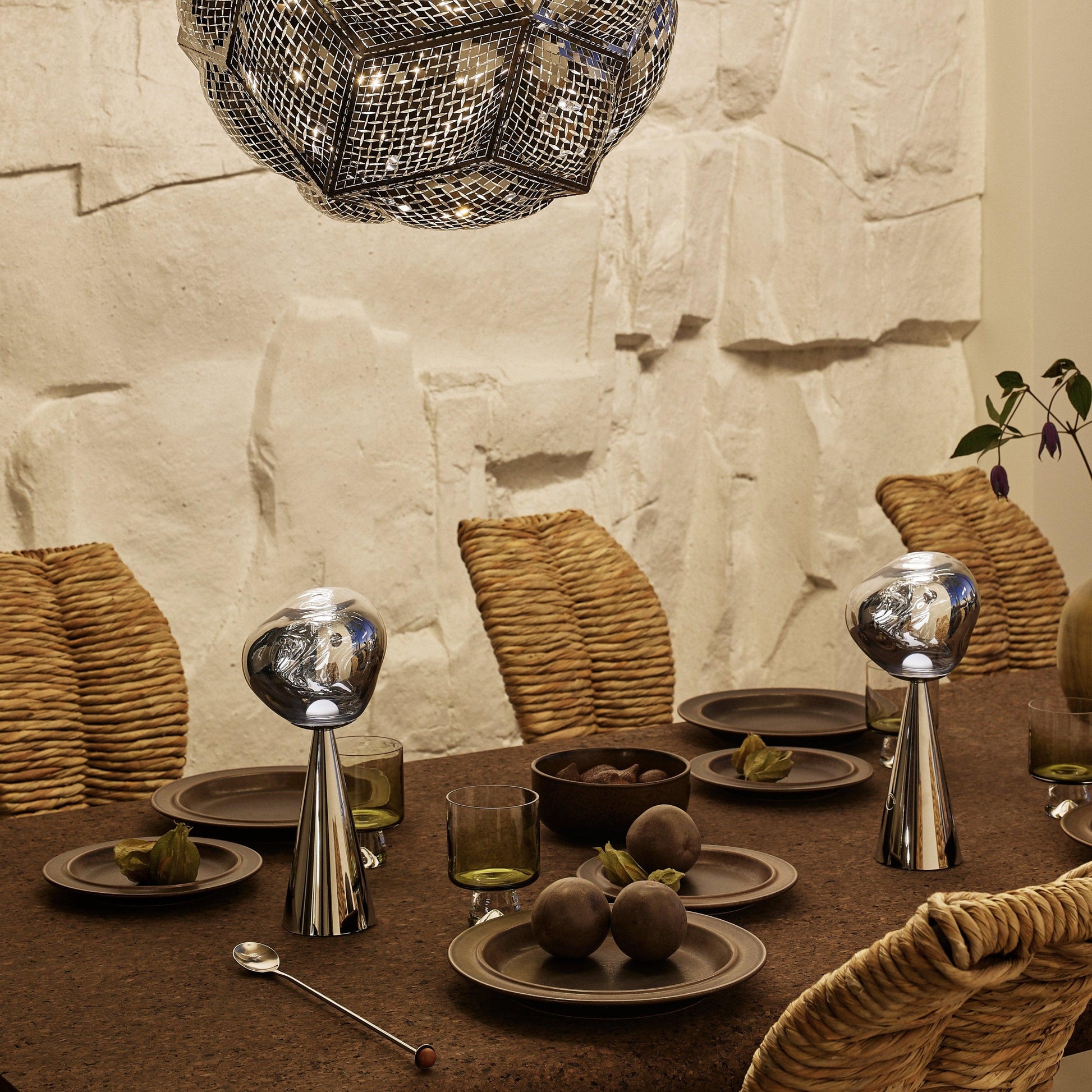 La lampe de table portable Melt, signée Tom Dixon, enrichit la collection en proposant le même effet hypnotique du verre soufflé à chaud dans un format nomade. Melt évoque le verre en fusion, l'intérieur d'un glacier en train de fondre ou encore les profondeurs de l'espace. La lampe LED portable Melt est disponible dans une large gamme de finitions et offre jusqu'à 10 heures d'autonomie.
