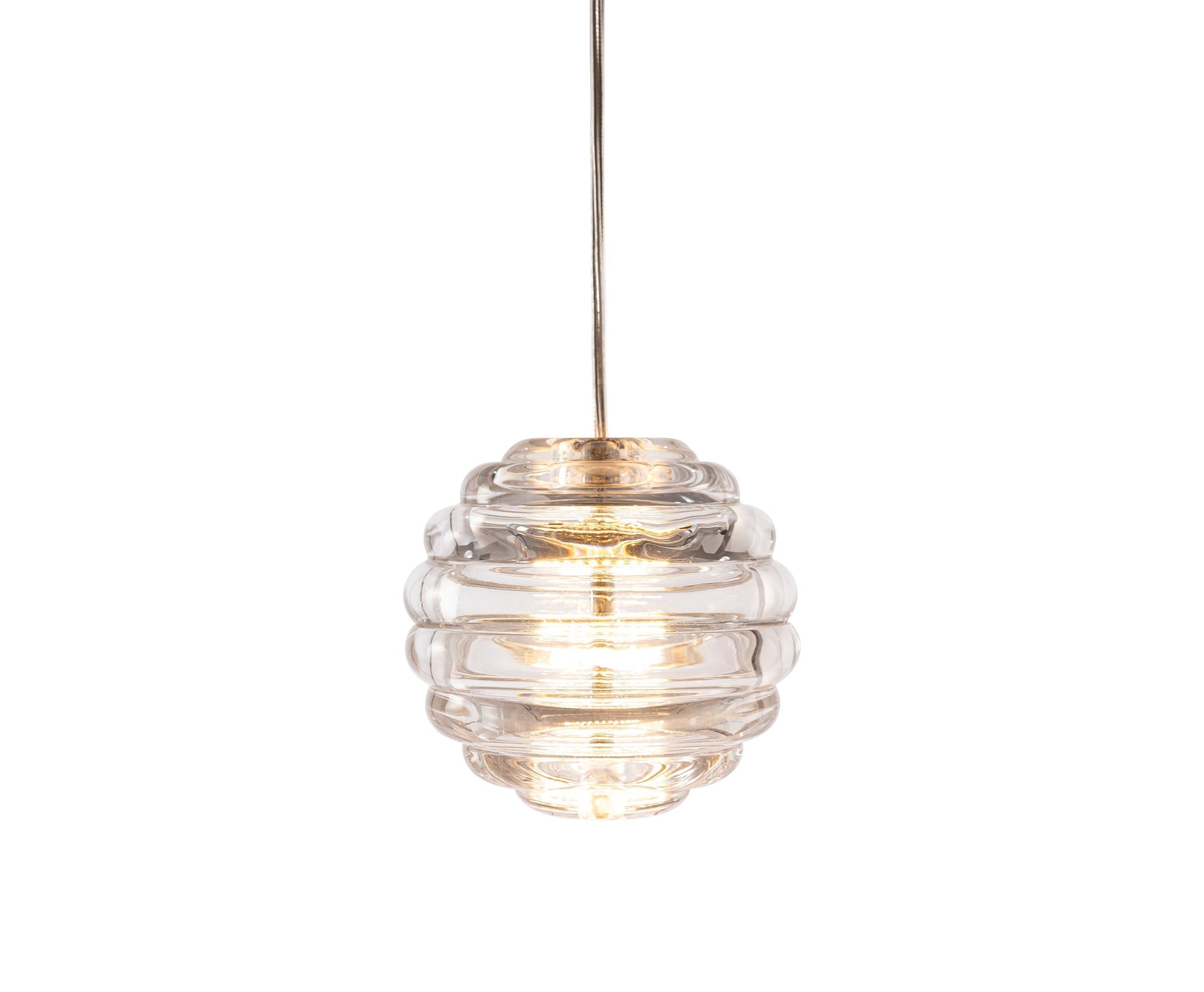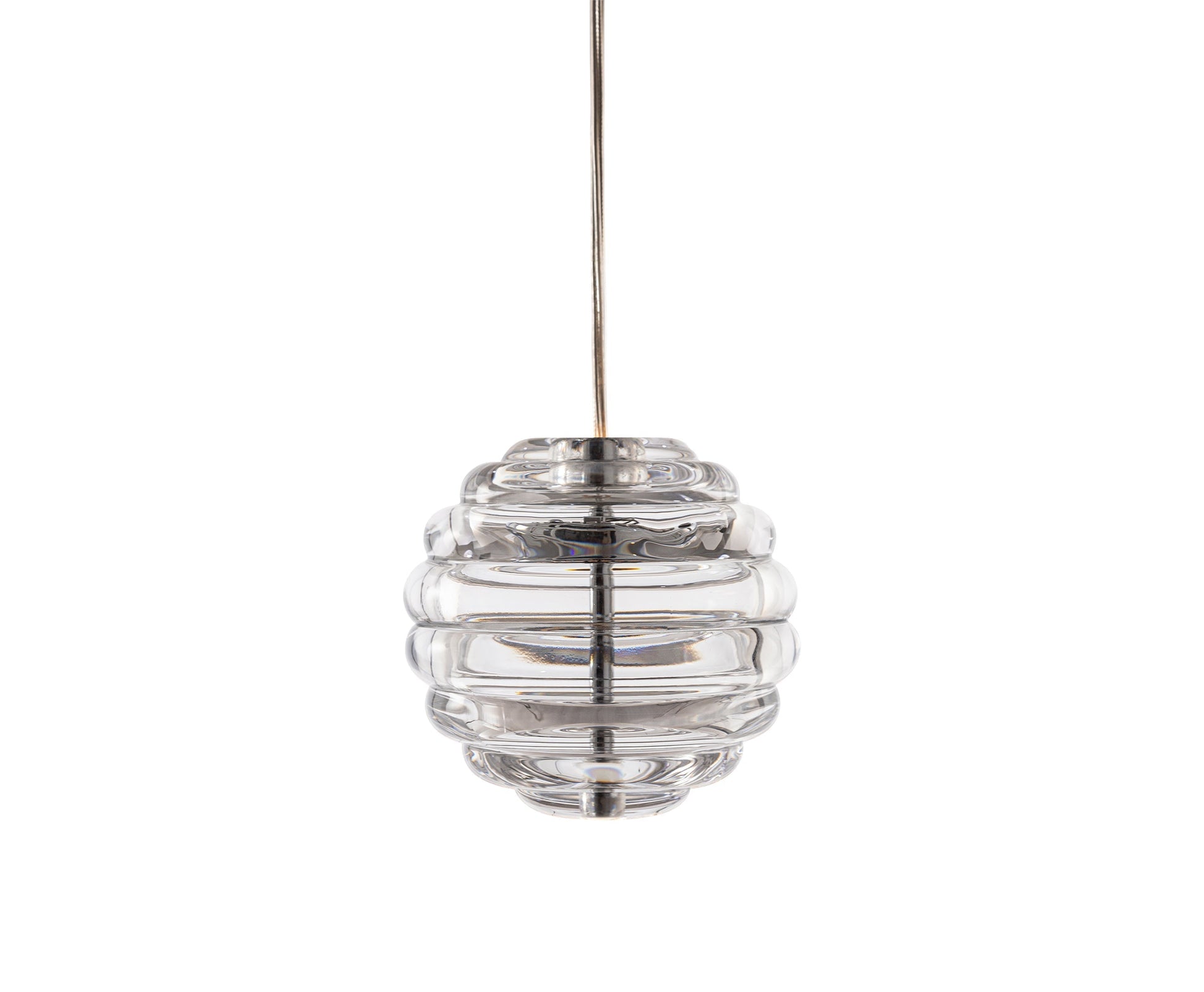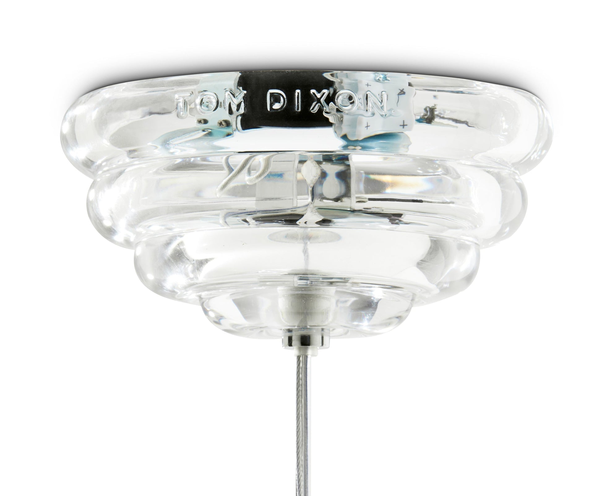 Une superbe suspension miniature contemporaine signée Tom Dixon, fabriquée en verre pressé industriel ultra-épais. Conçue pour capter et réfracter la lumière, elle est faite pour durer. Le verre nervuré diffuse la lumière et projette des motifs linéaires et rayés. Press Sphere Mini est une nouvelle suspension plus compacte, plus légère et conçue pour être installée en groupe.