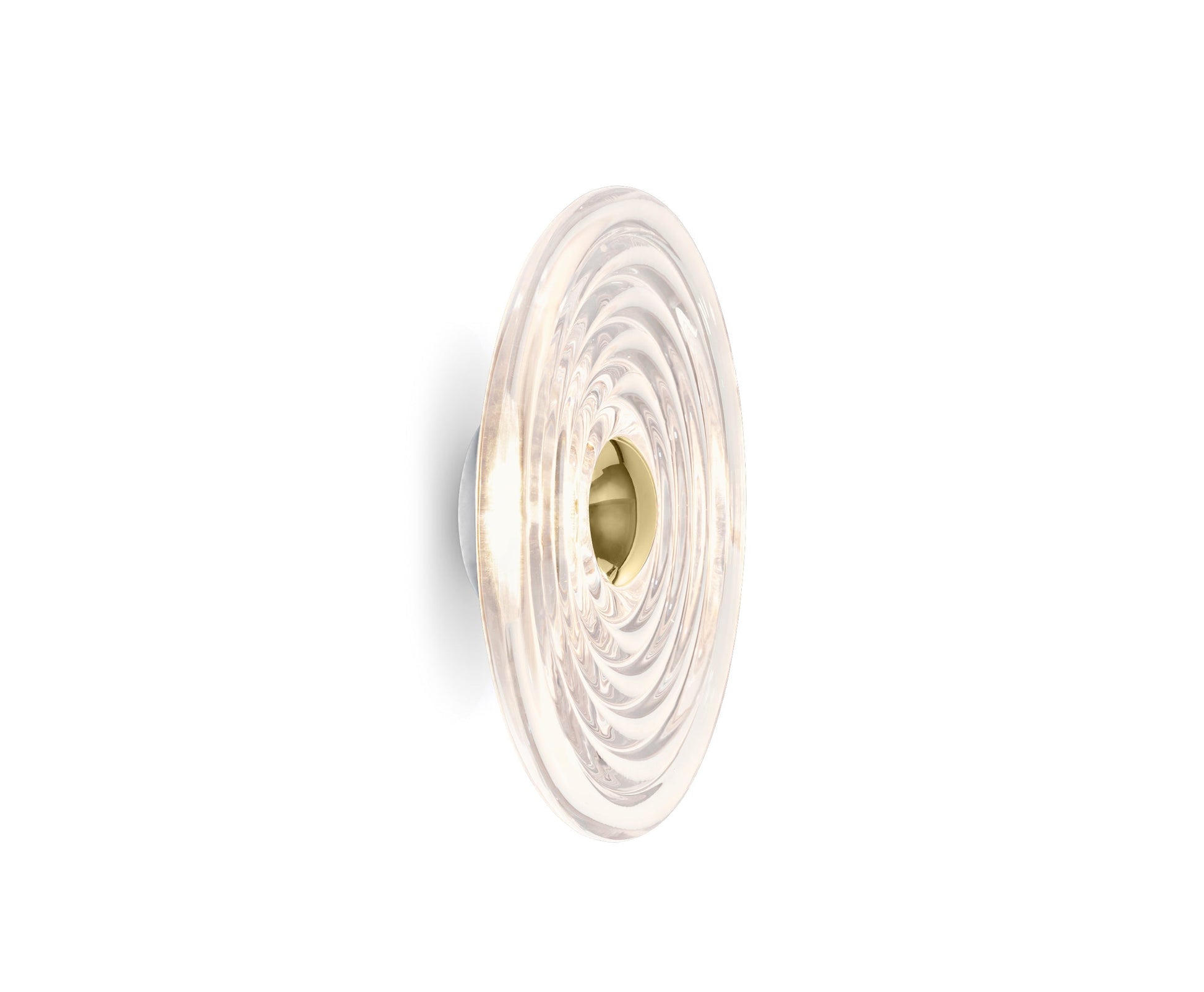 Press, de Tom Dixon, est une série de luminaires fabriqués à partir du verre le plus épais et le plus transparent, aux lignes arrondies et harmonieuses. Leurs formes évoquent les bouées de navigation et les jouets d'enfants. Le verre nervuré diffuse la lumière et projette des motifs linéaires et rayés. Audacieuse par sa silhouette et simple par son fonctionnement, Press est fabriquée en versant d'énormes blocs de verre en fusion à 1 200 degrés Celsius, puis en les pressant dans des moules en fer sous une pression considérable, ce qui confère aux luminaires une durabilité exceptionnelle.