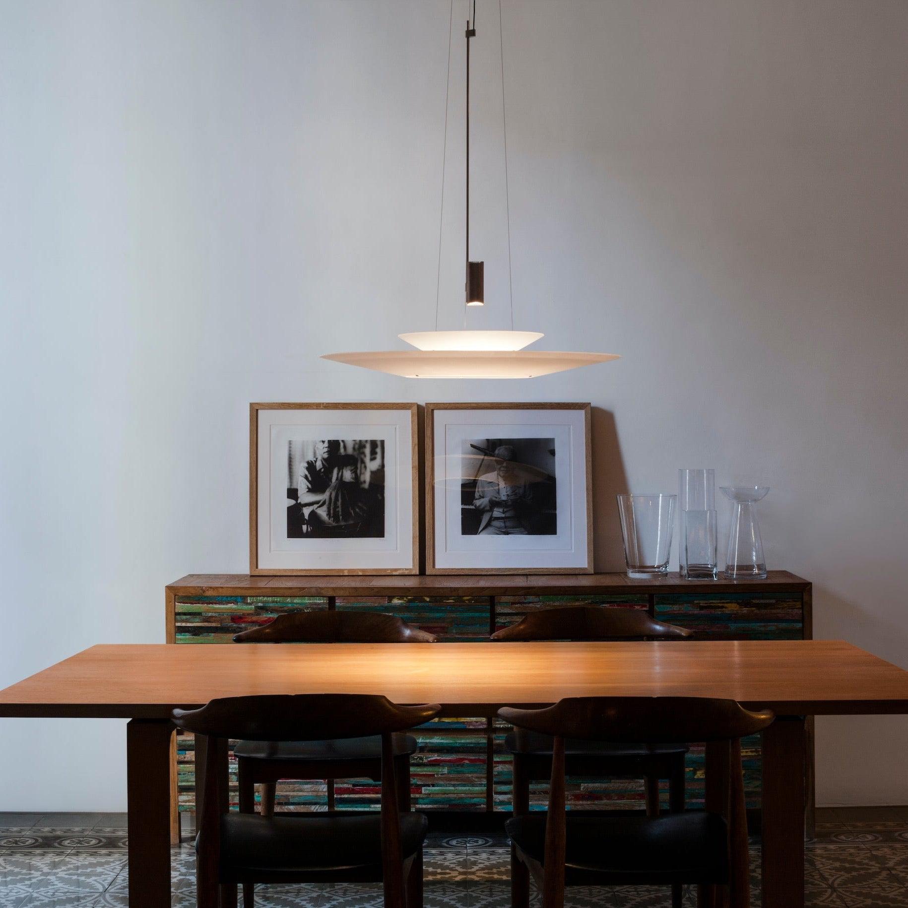 La collection Flamingo de Vibia est une gamme de suspensions qui diffuse une lumière d'ambiance grâce à un diffuseur translucide en thermoplastique, faisant office de spot grâce à sa source lumineuse LED. La collection Flamingo allie une esthétique saisissante et poétique à un design fonctionnel et performant.